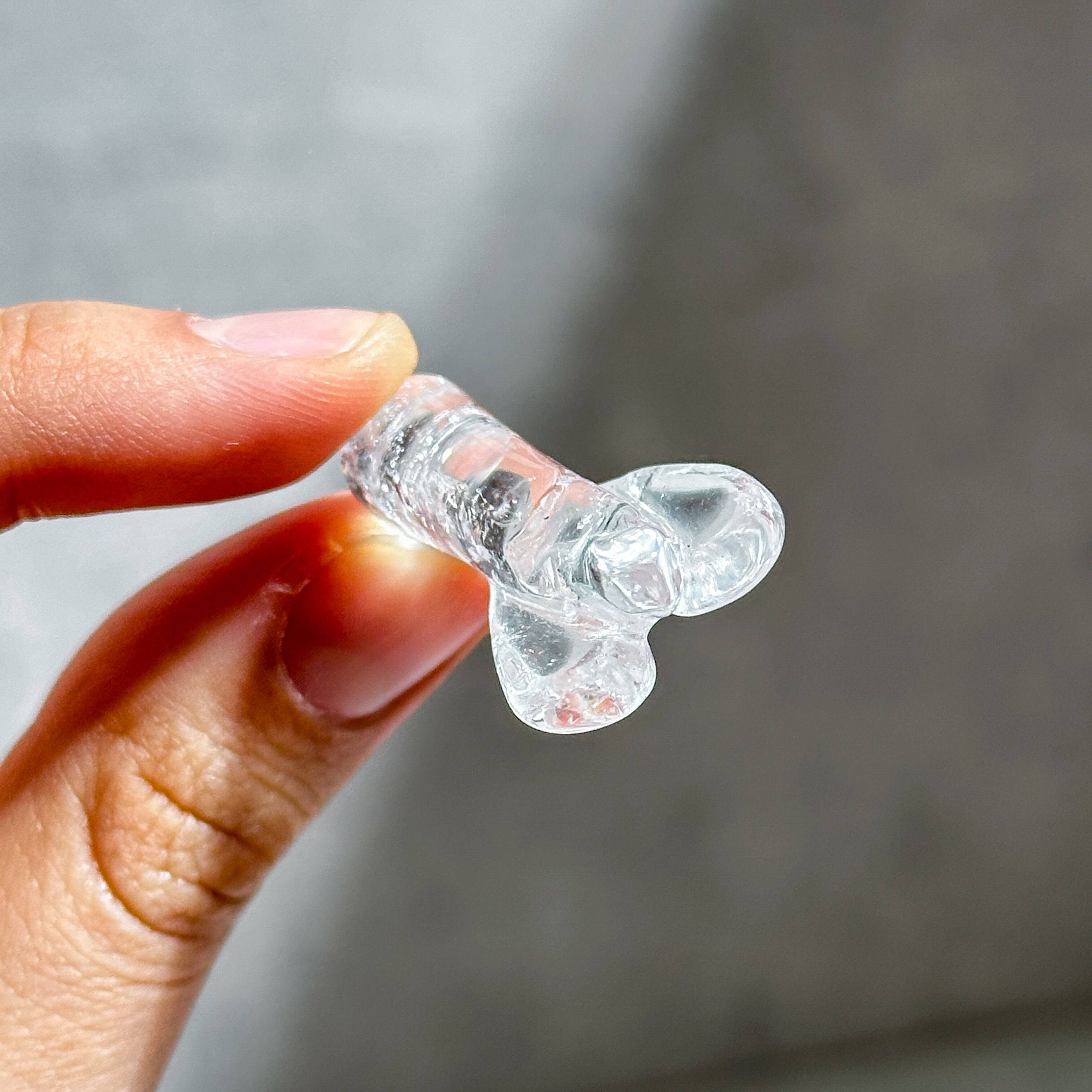クリアクォーツを、小さなエンジェルの形に彫刻いたしました。