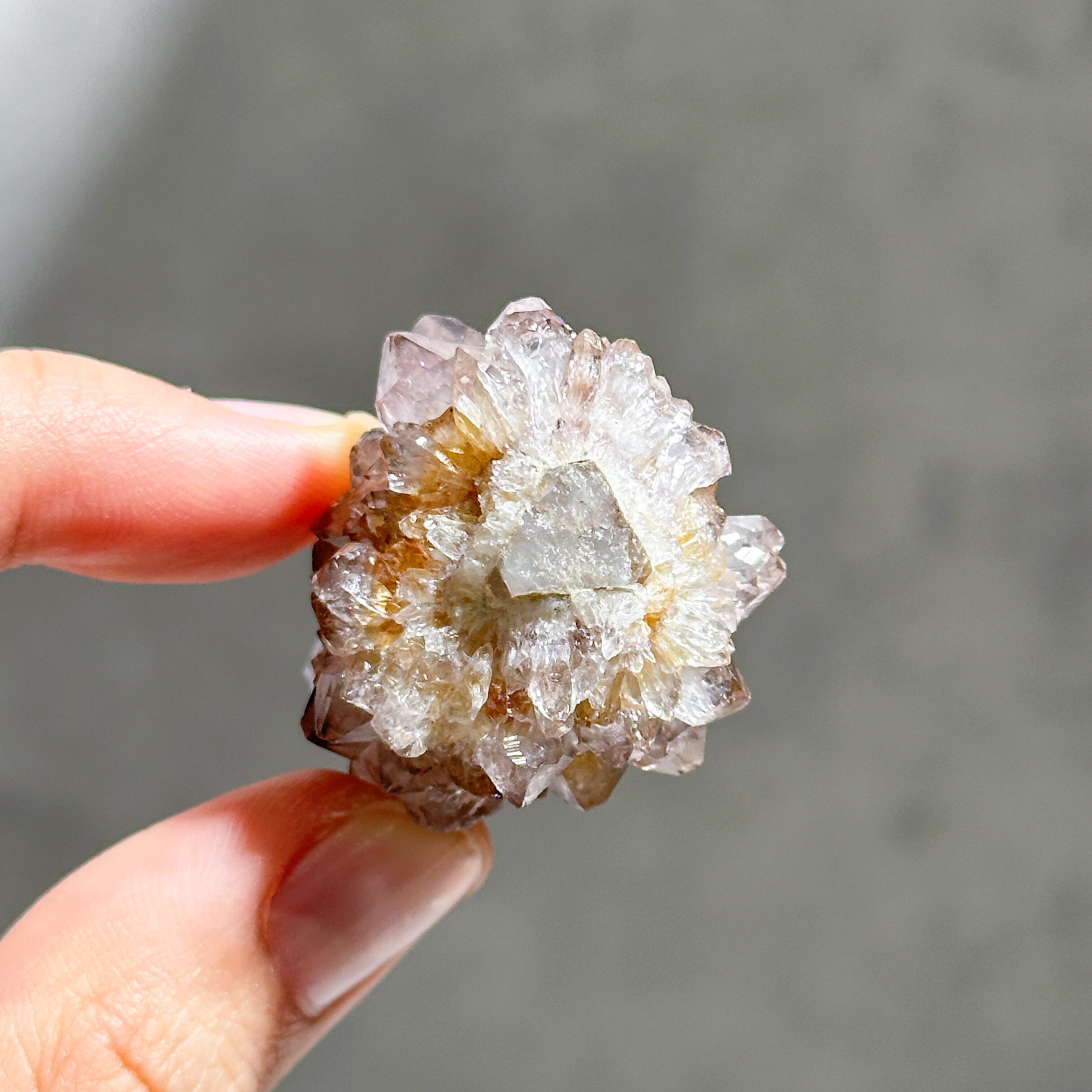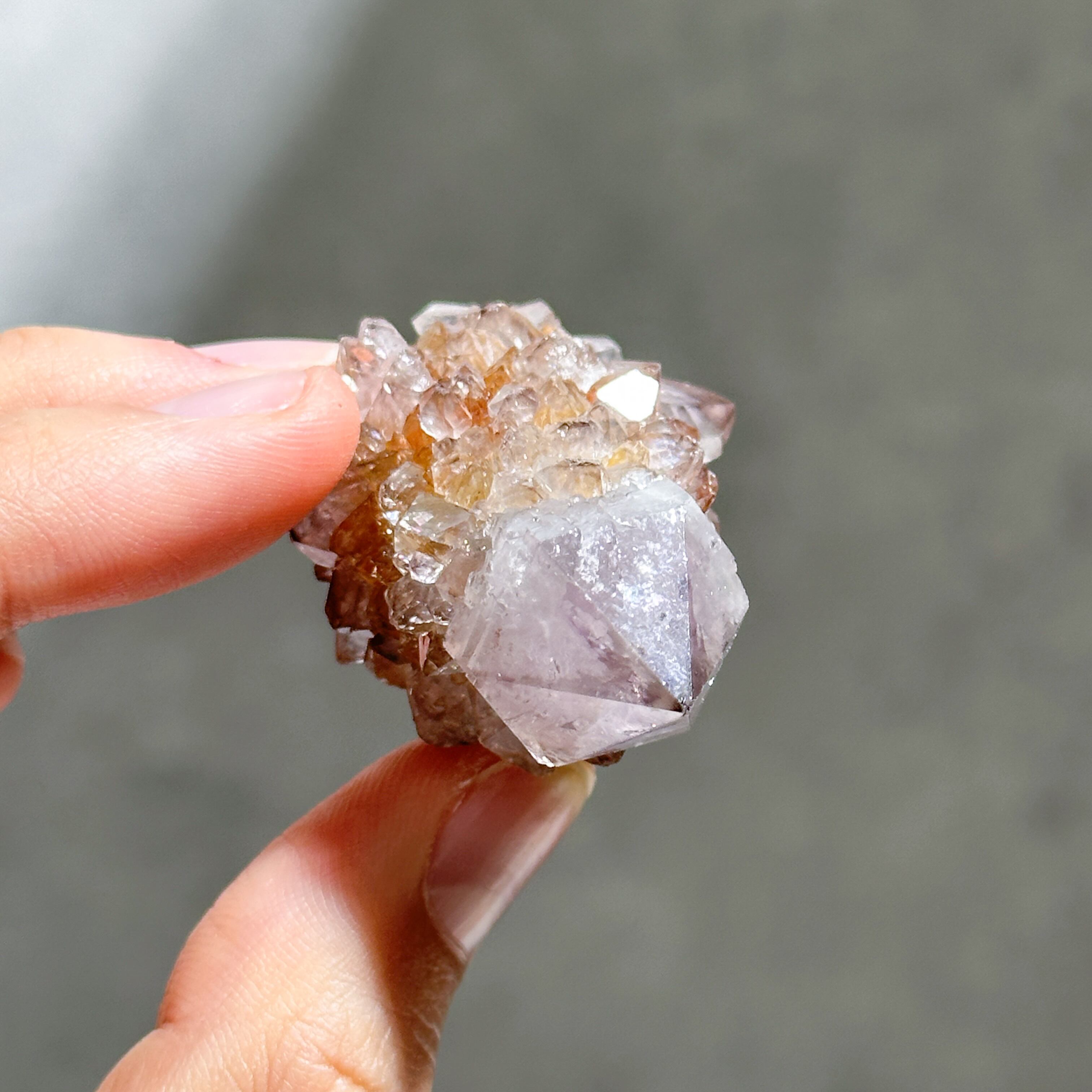砂糖菓子のように美しい、ライラック色(淡い紫色)のスピリットクォーツのクラスターを、