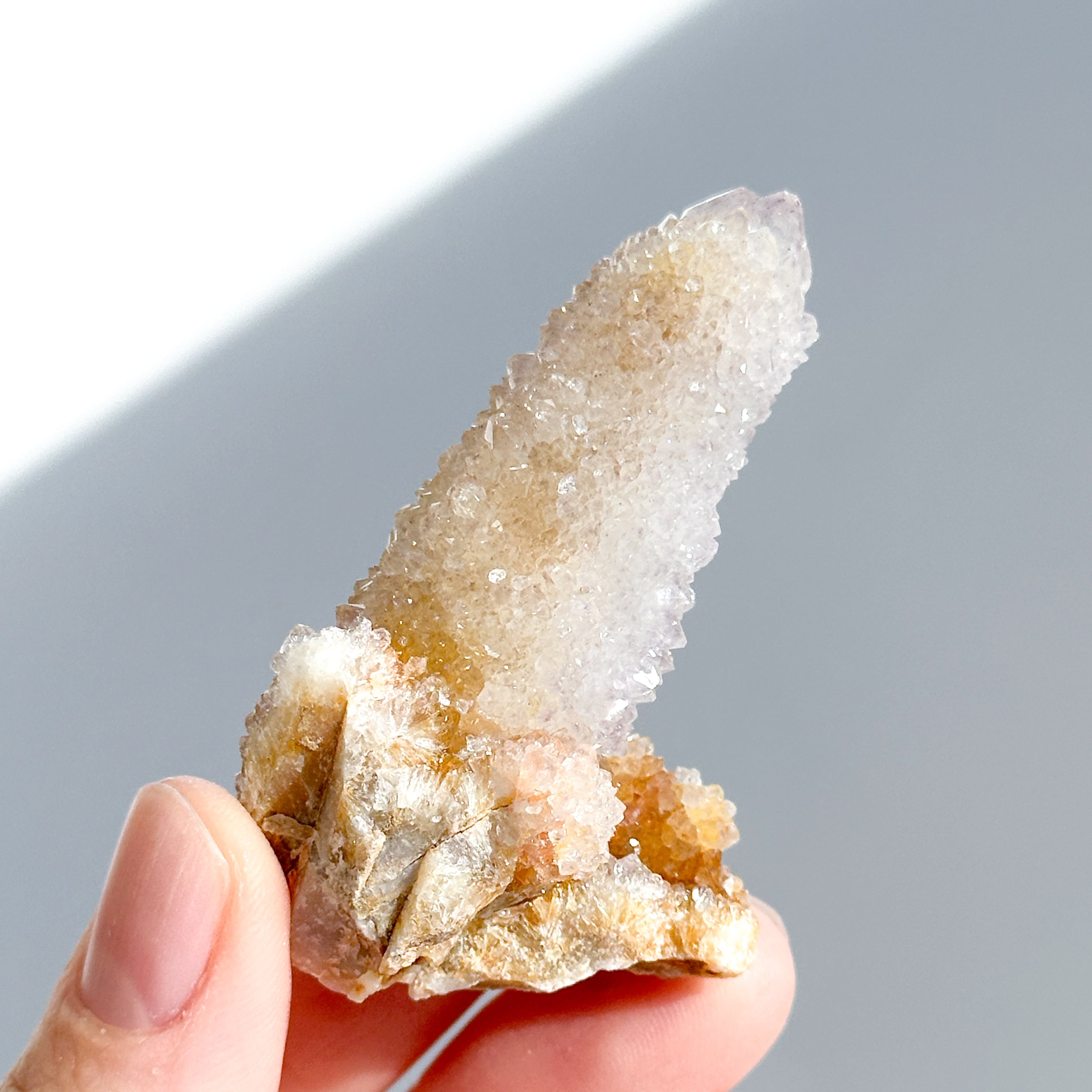 今回ご紹介するものはフェアリークォーツのクラスター(複数のポイントが群生したもの)。