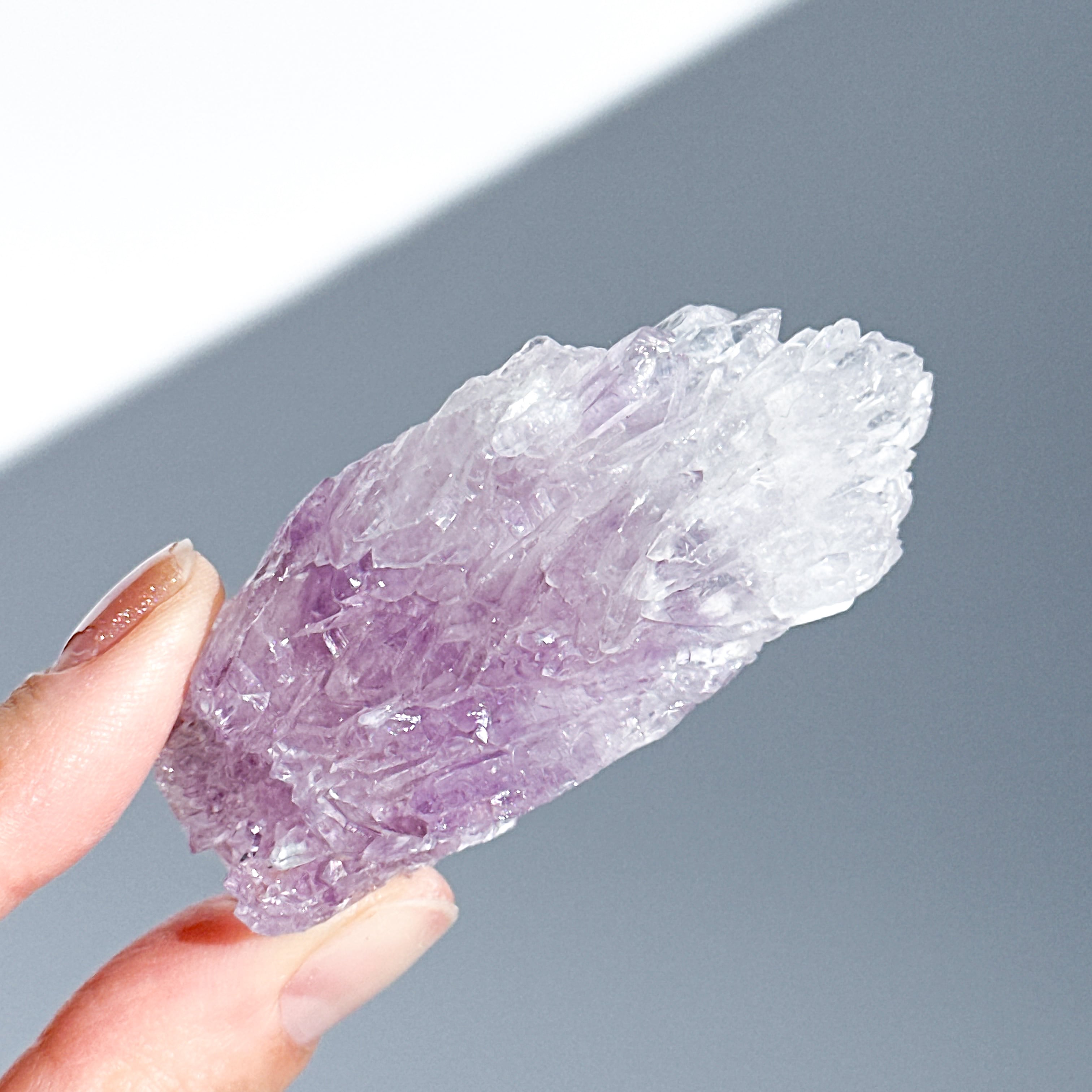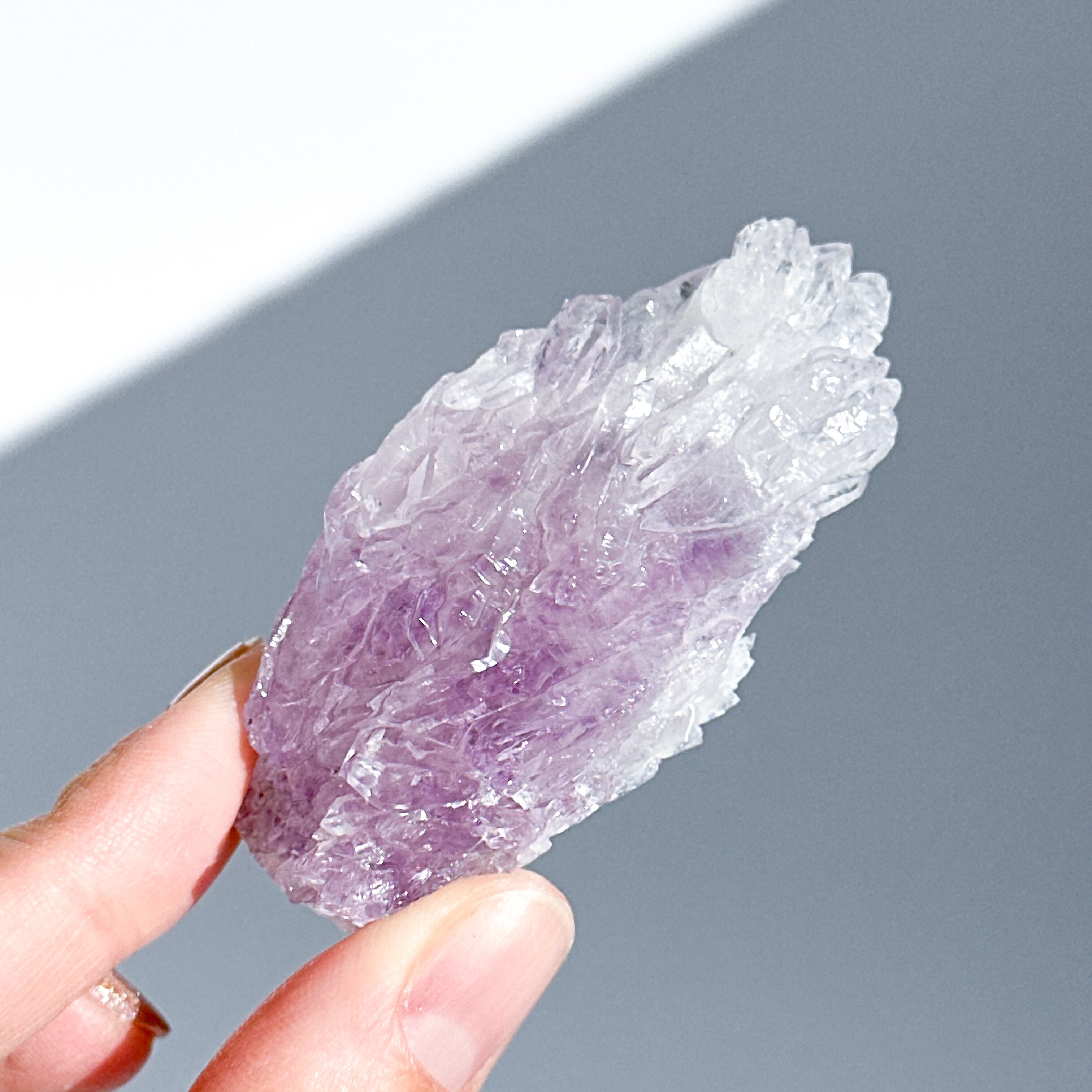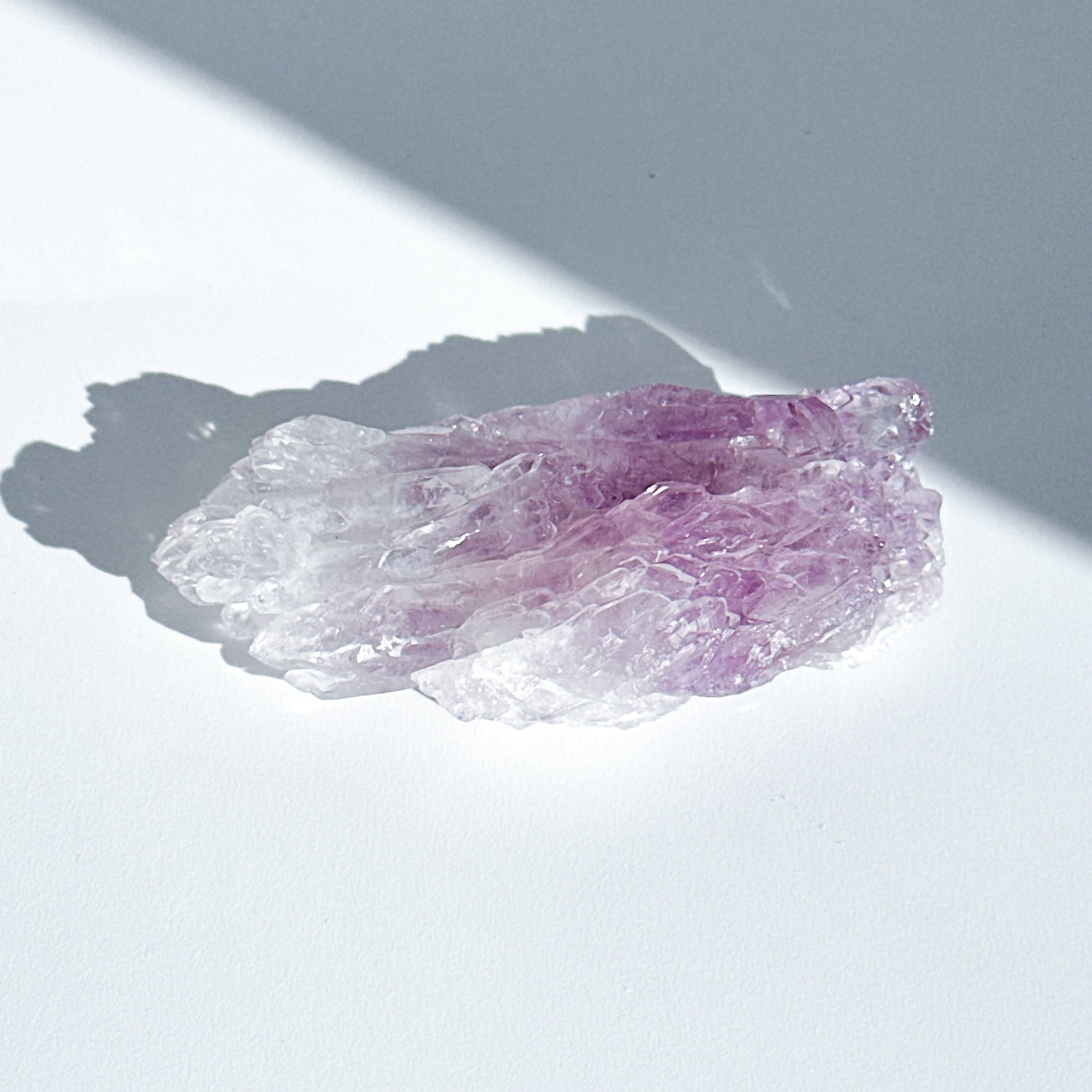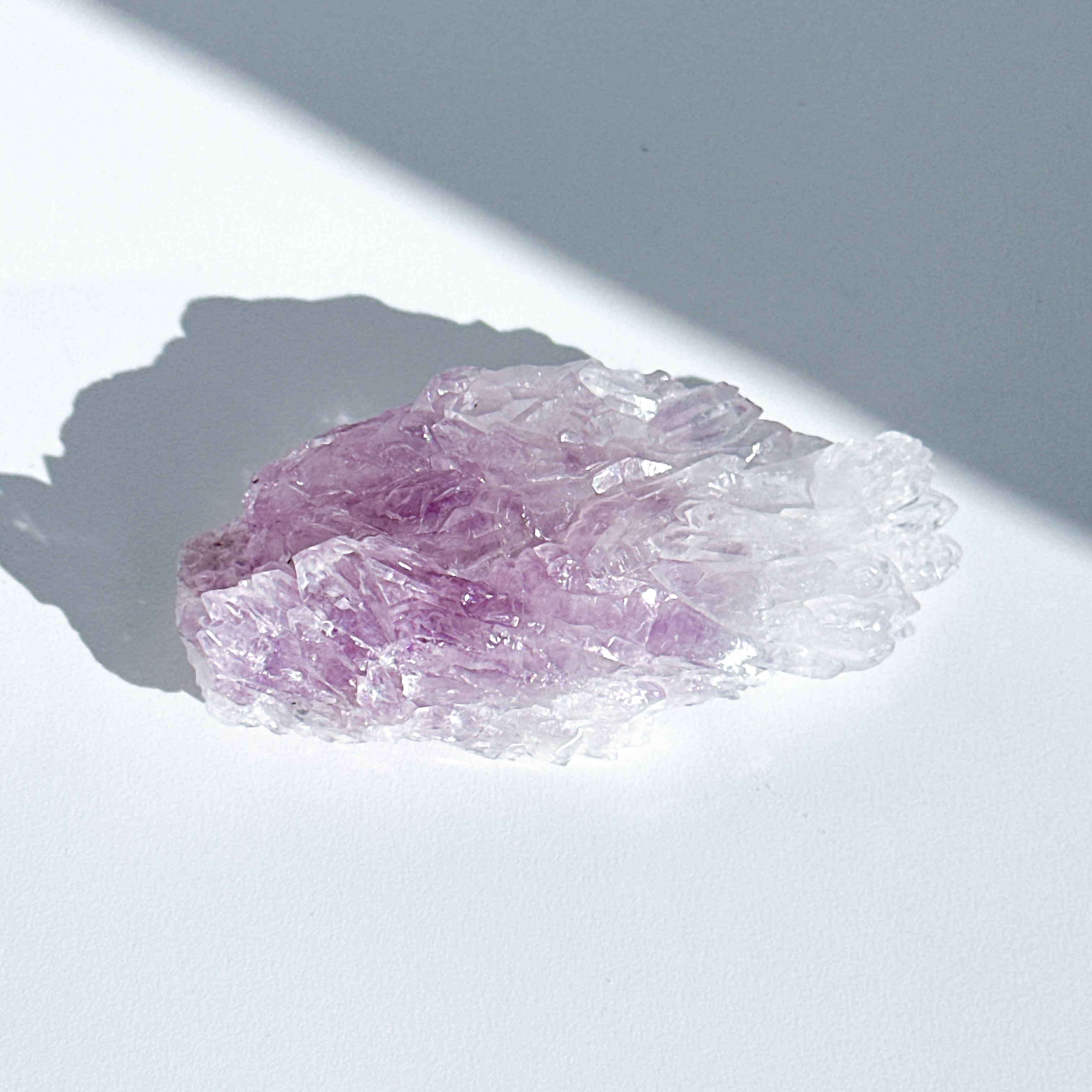 今回ご紹介するフラワーアメジストは、平らな原石を自然にカットしたもので、