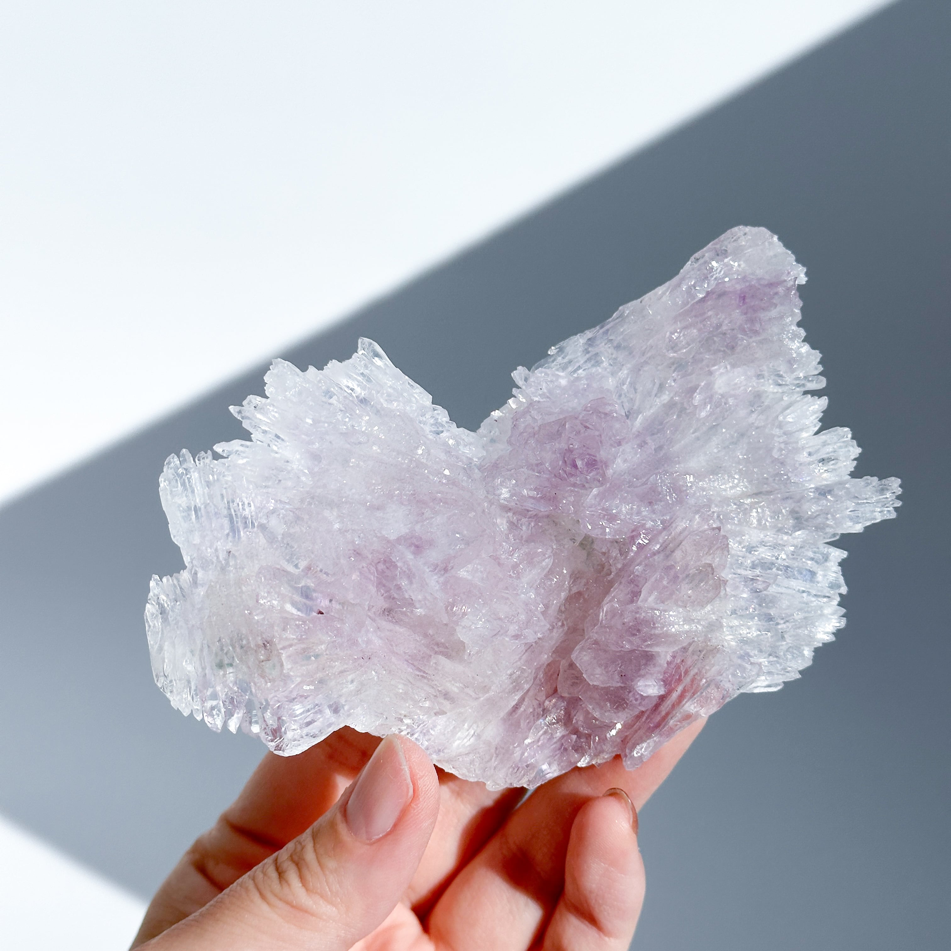 今回ご紹介するフラワーアメジストは、平らな原石を自然にカットしたもので、