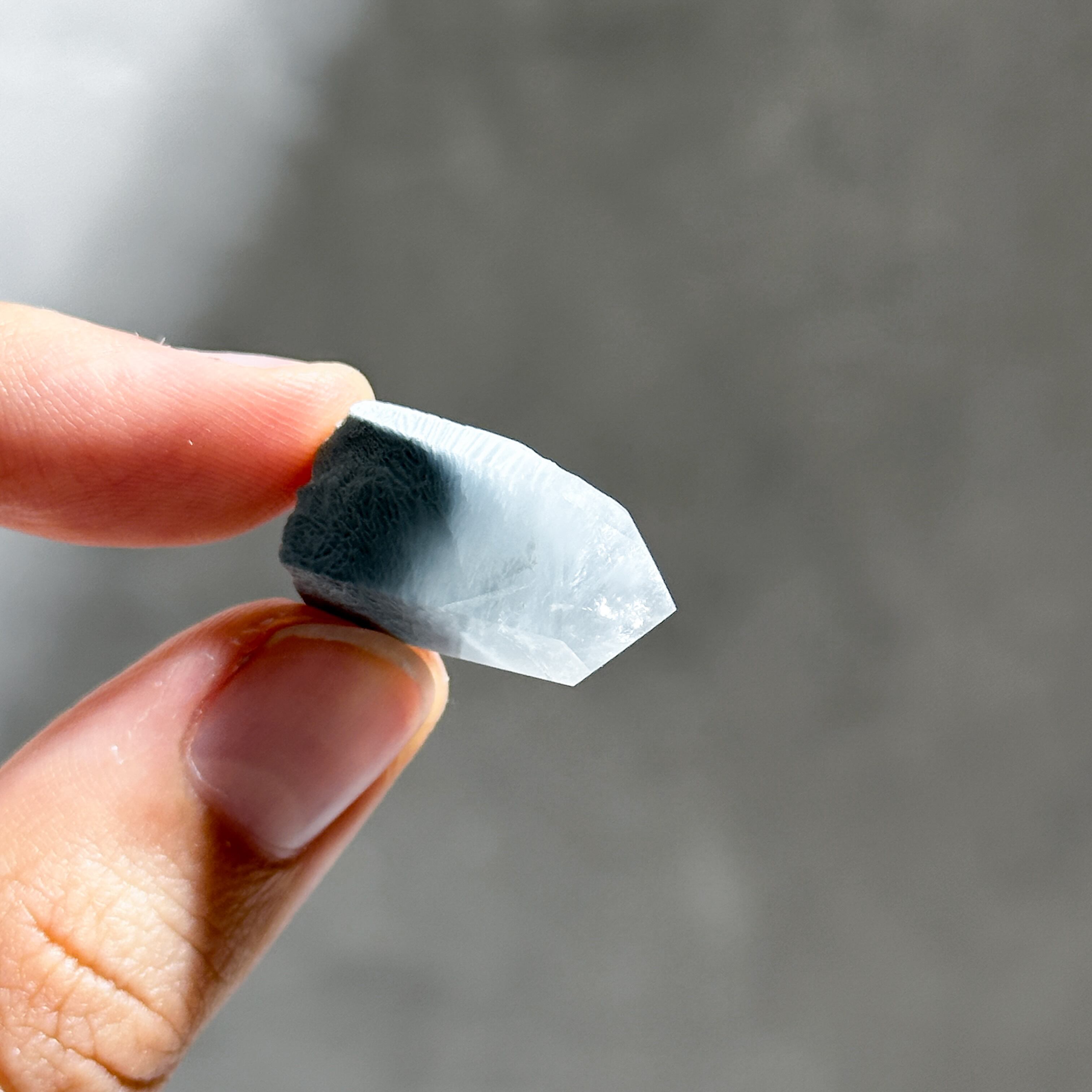 光に透かすとふわっとクォーツ内に空が広がるようです。