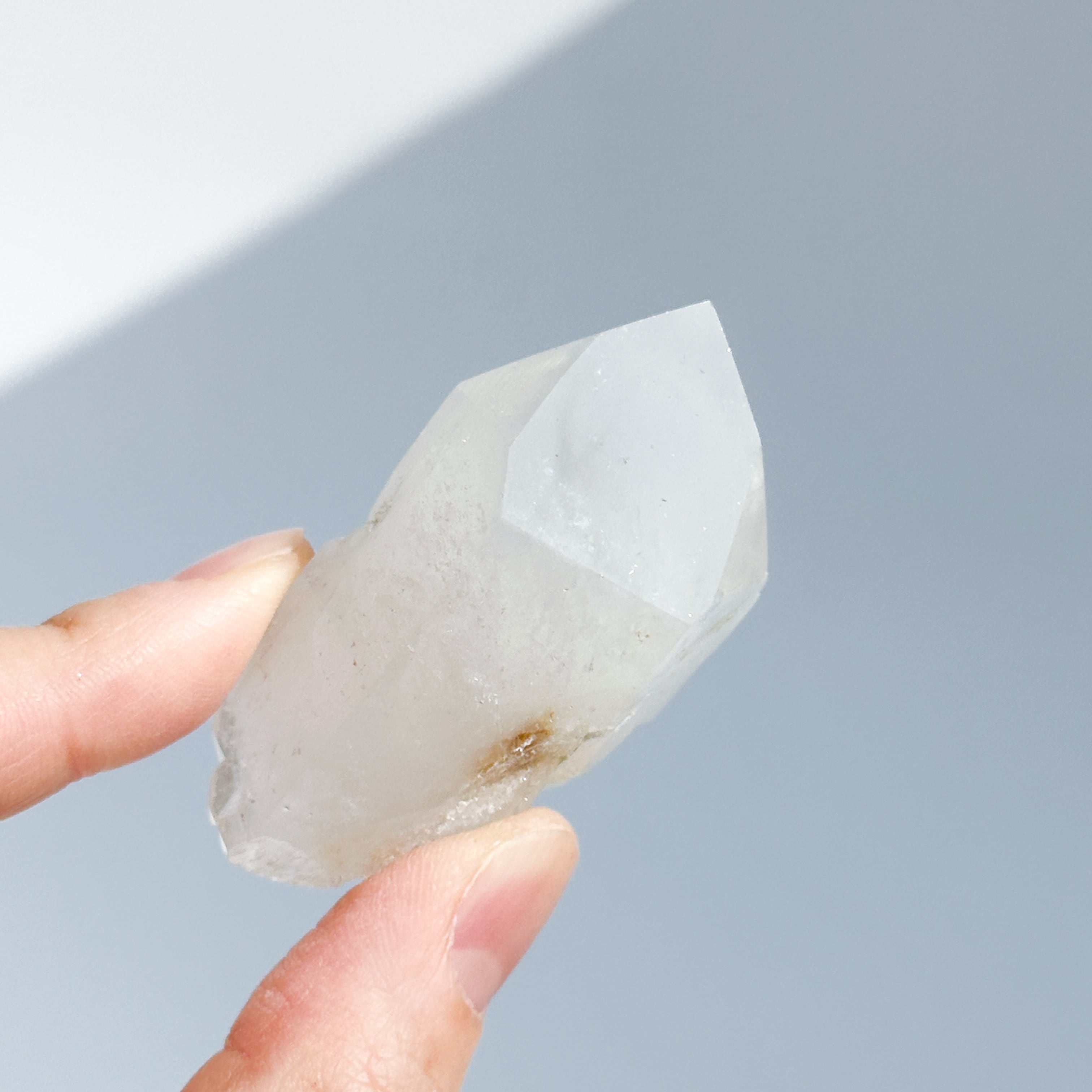 光に透かすとふわっとクォーツ内に空が広がるようです。