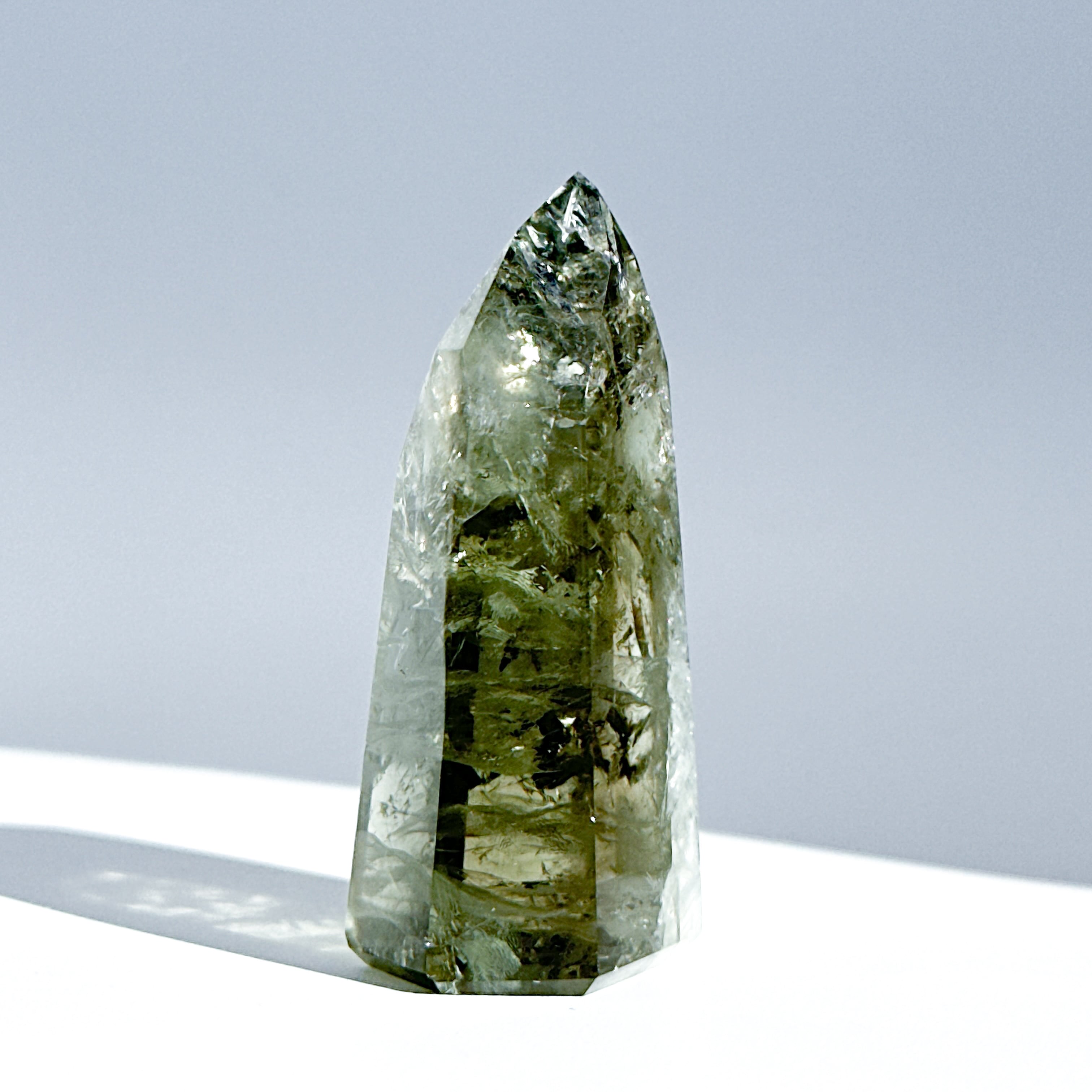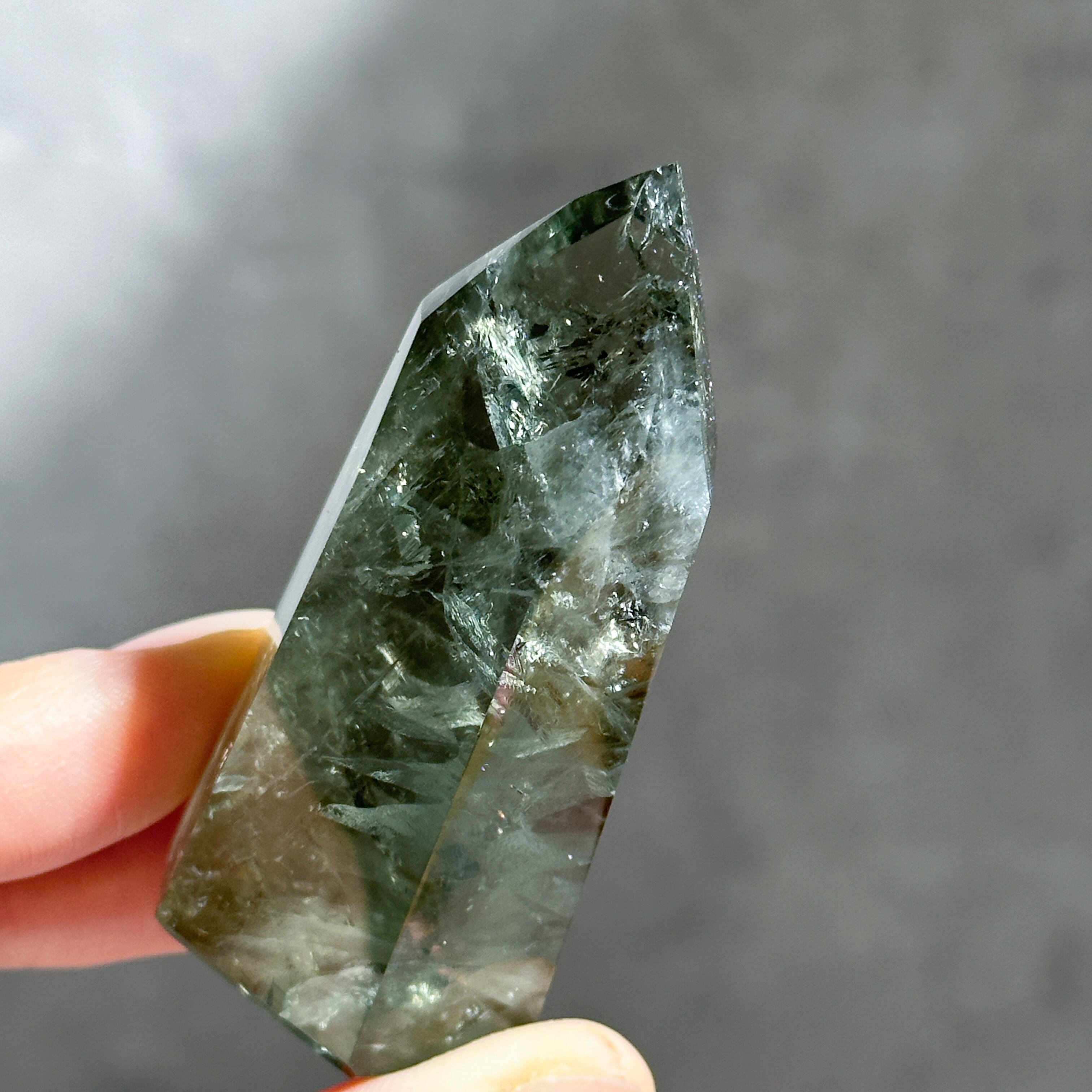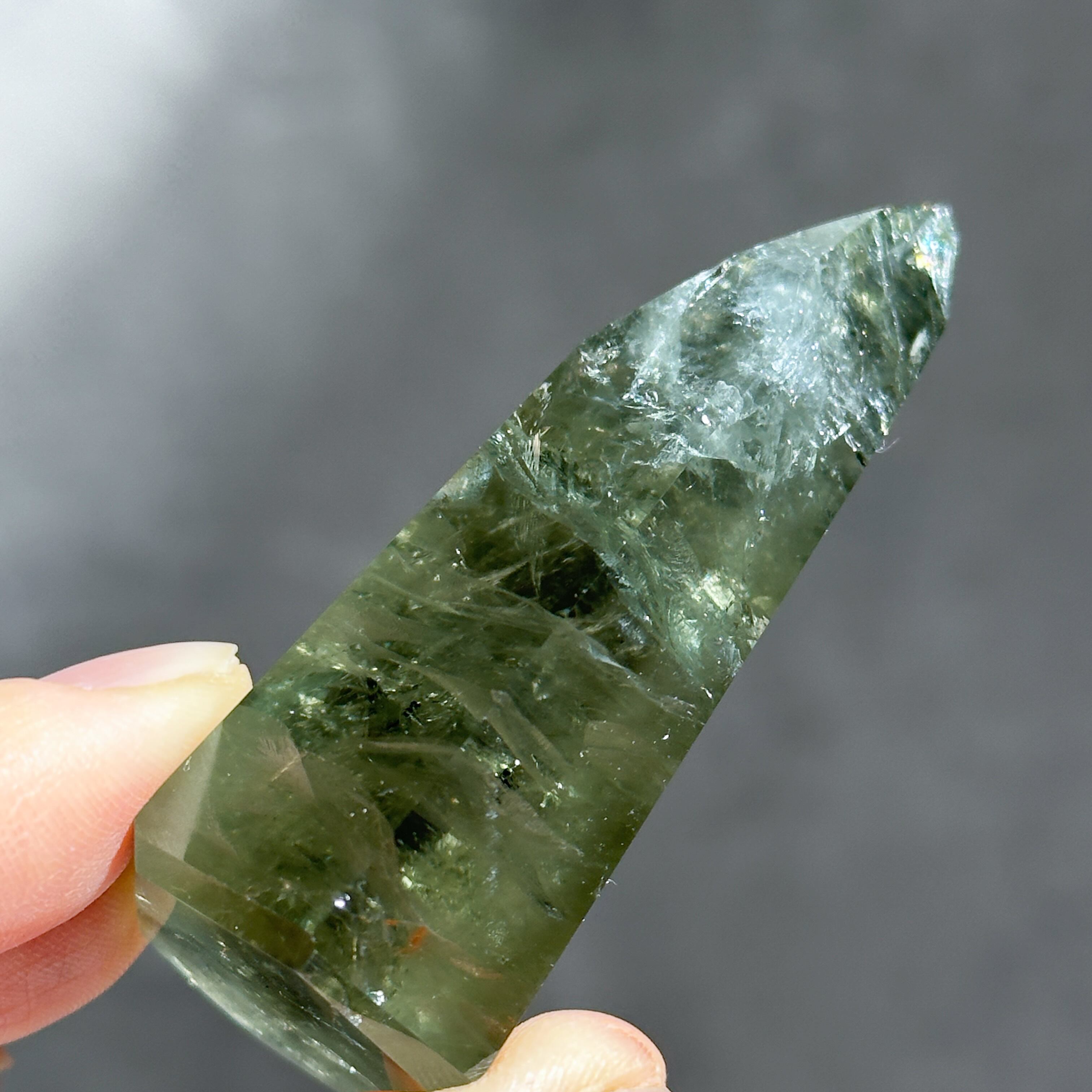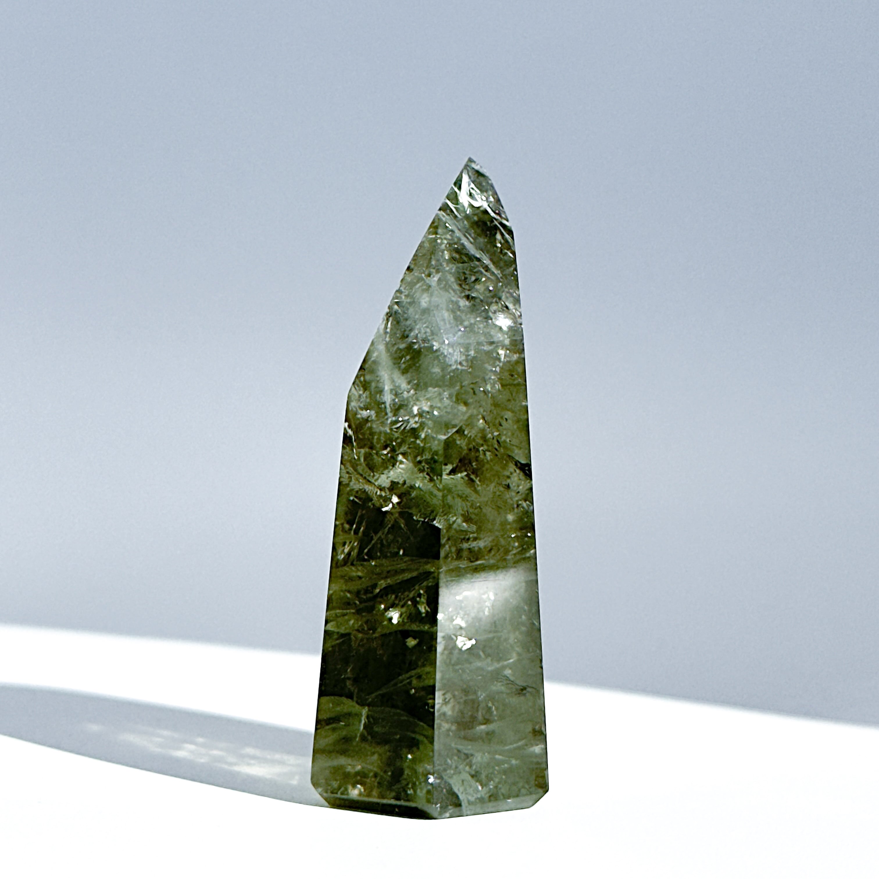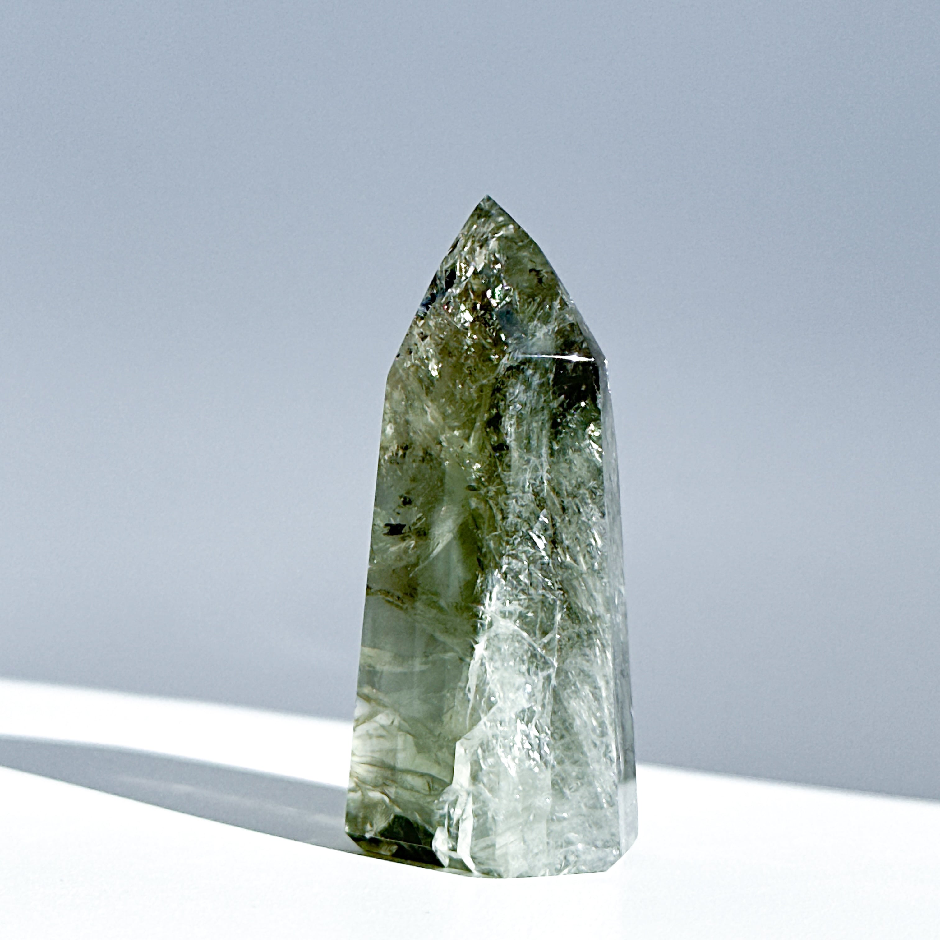 希少な非加熱グリーンアメジストのタワーになります。