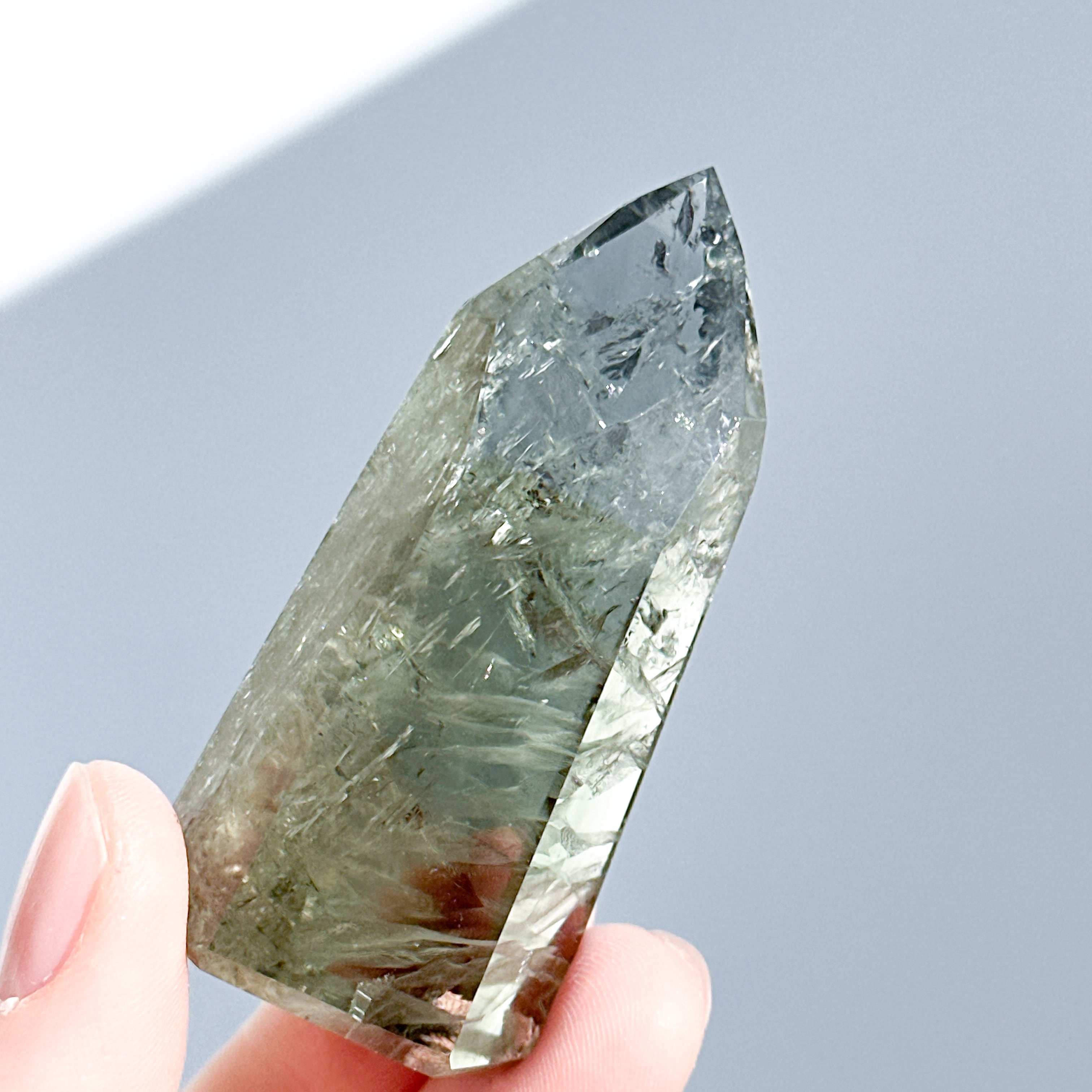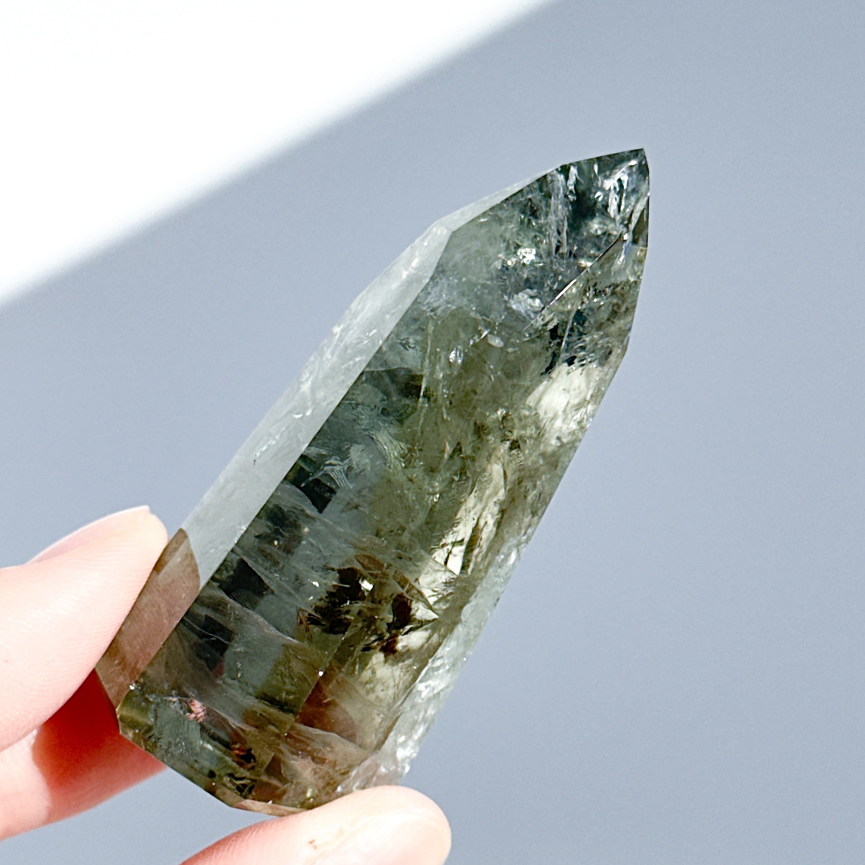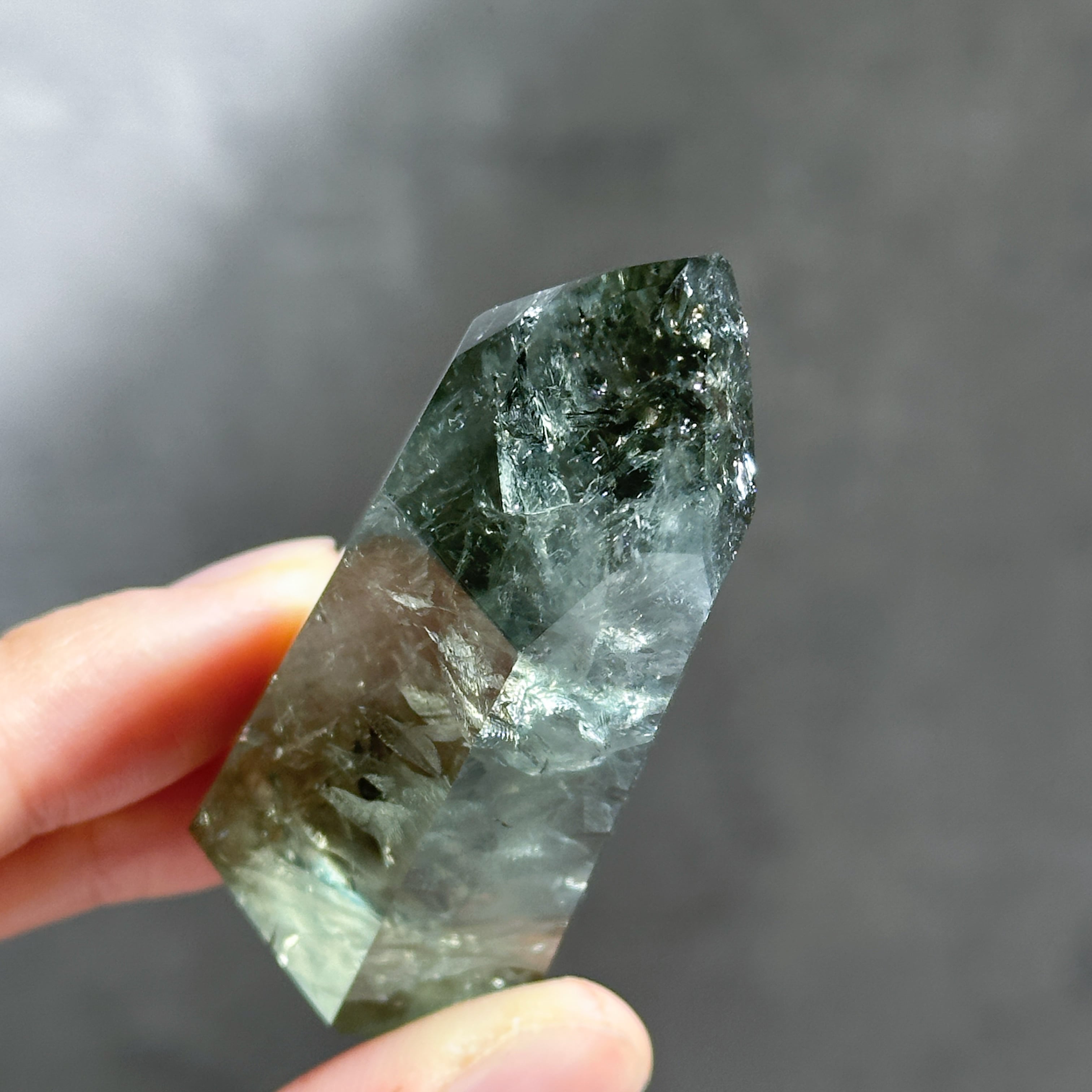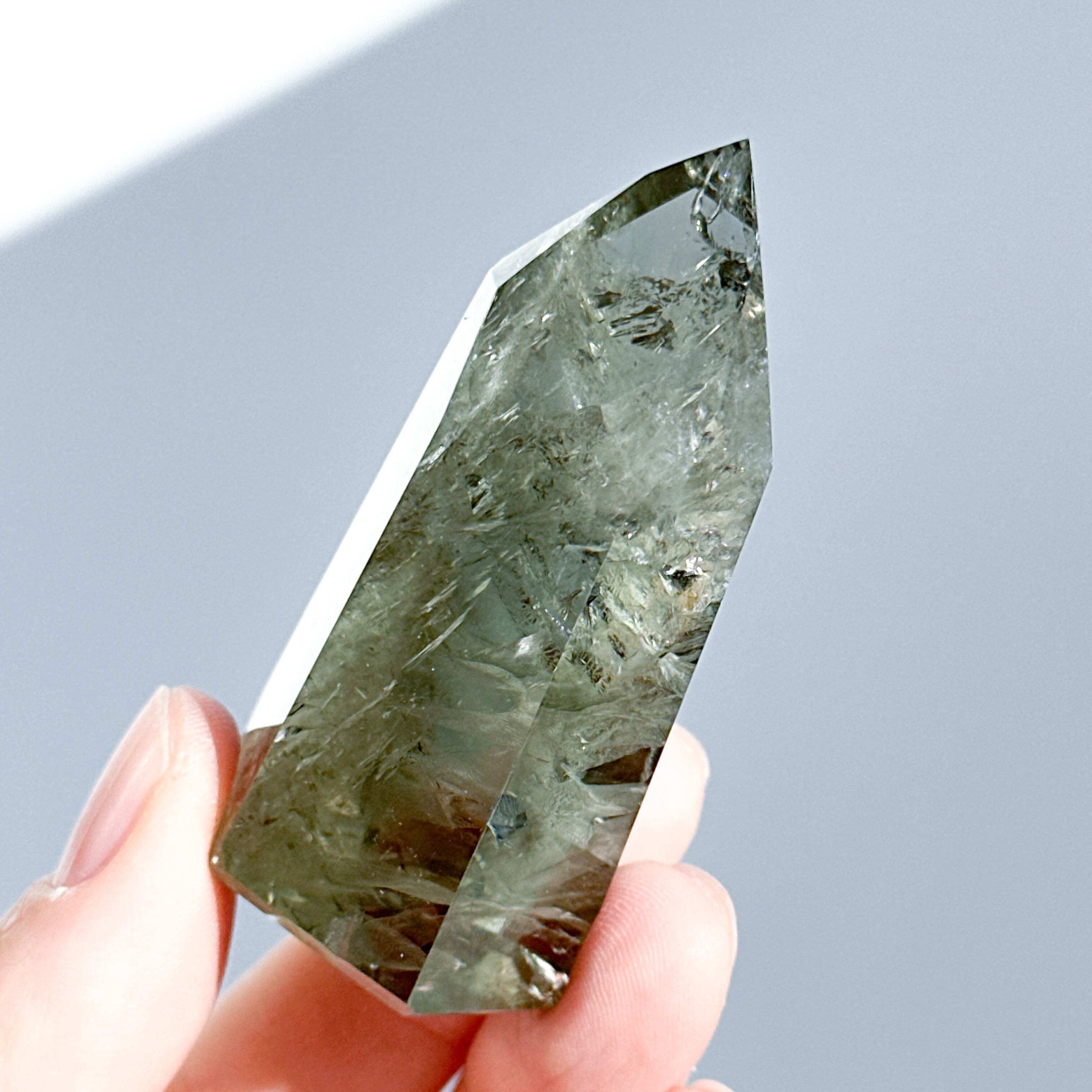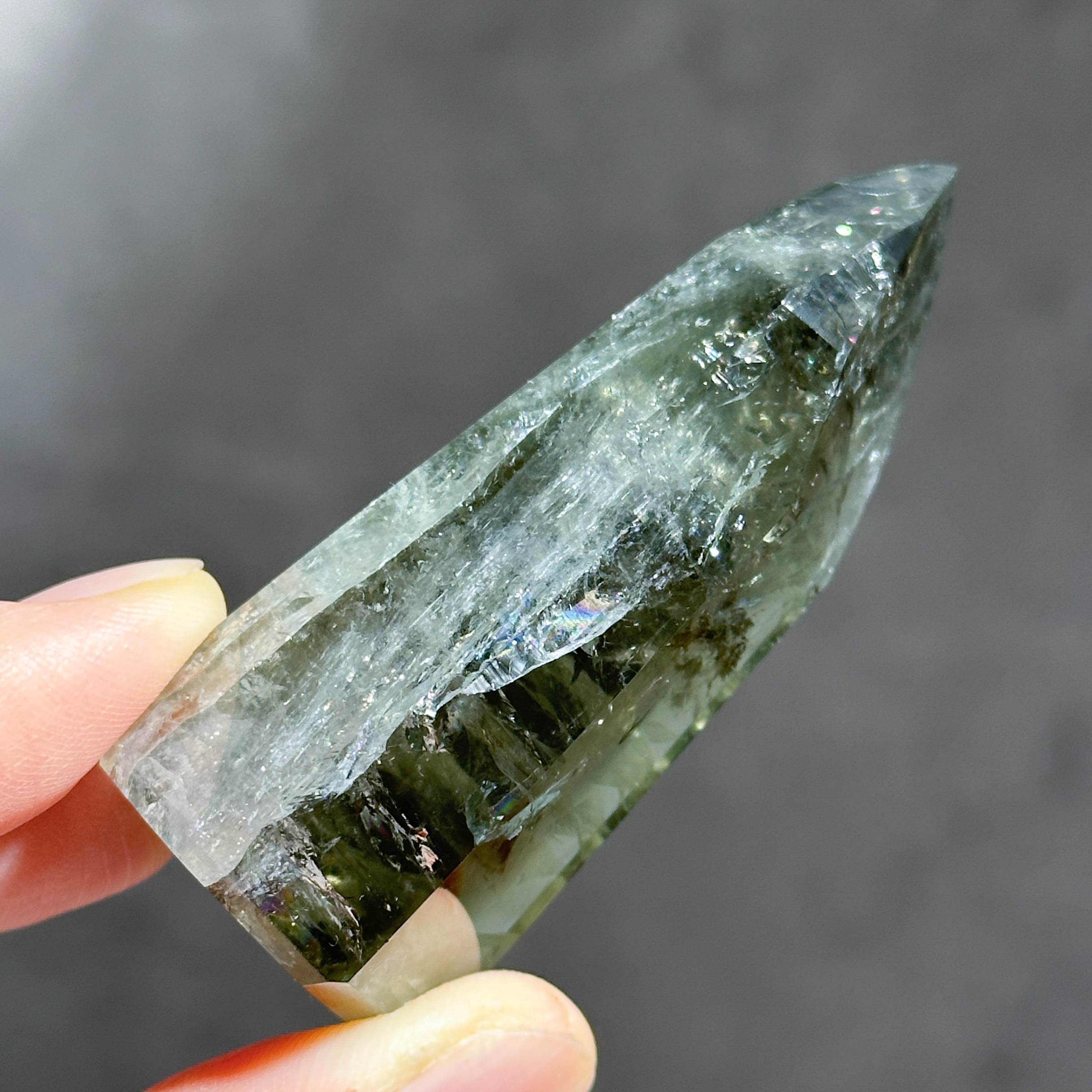 希少な非加熱グリーンアメジストのタワーになります。