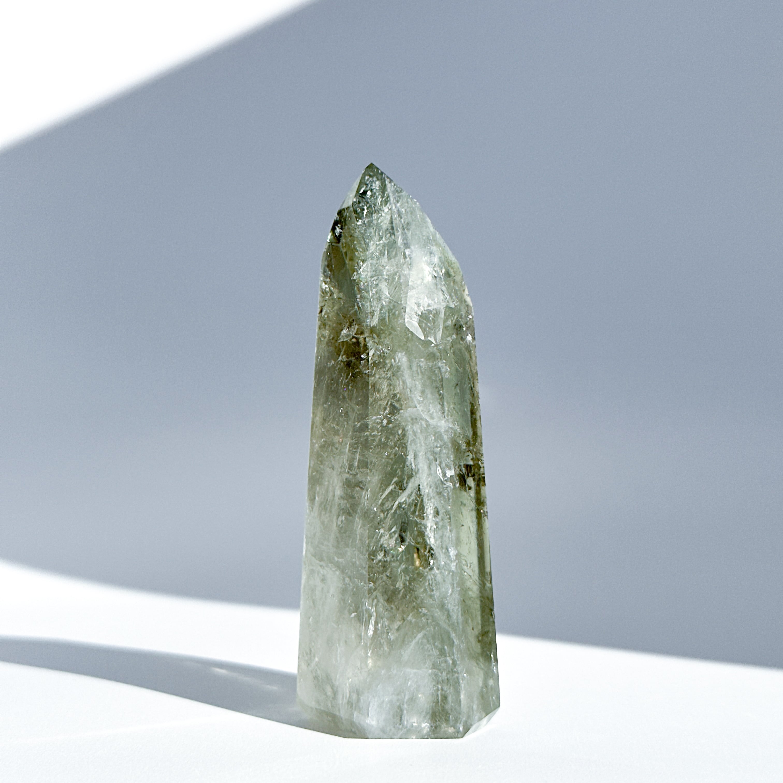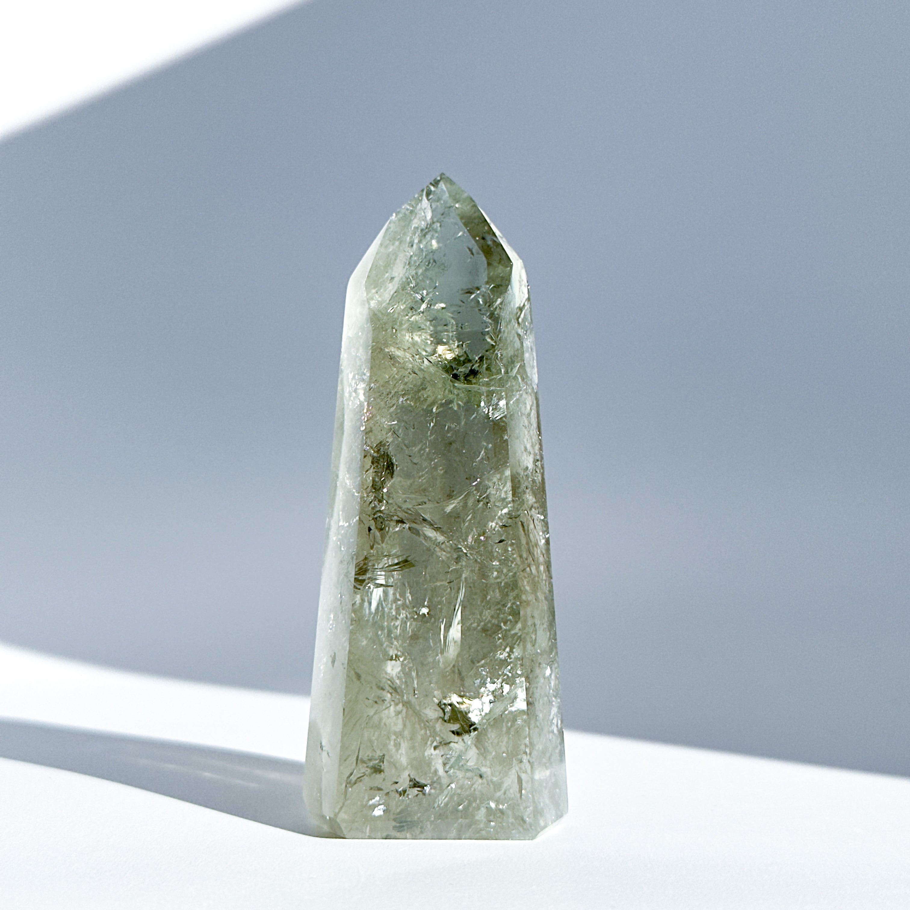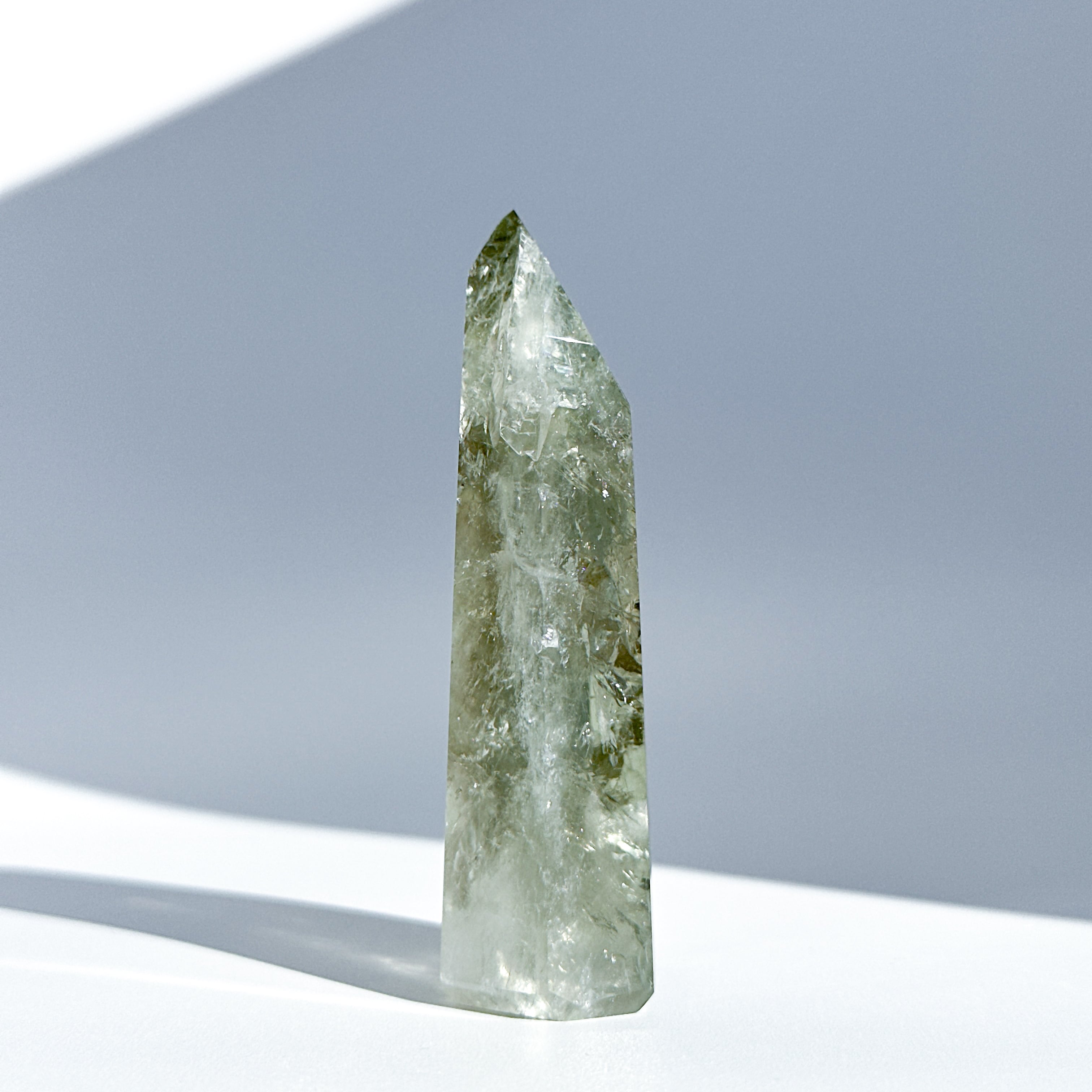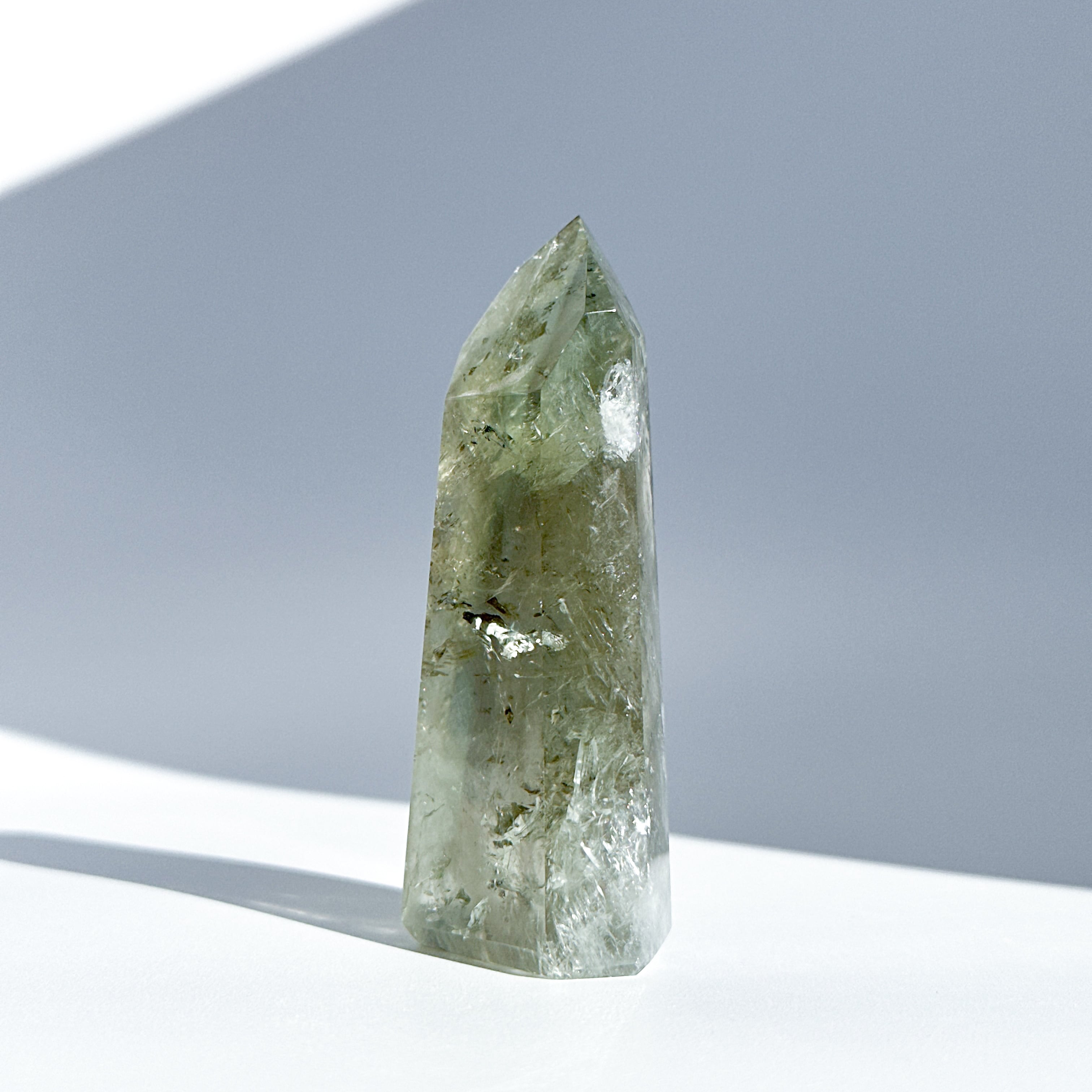 希少な非加熱グリーンアメジストのタワーになります。