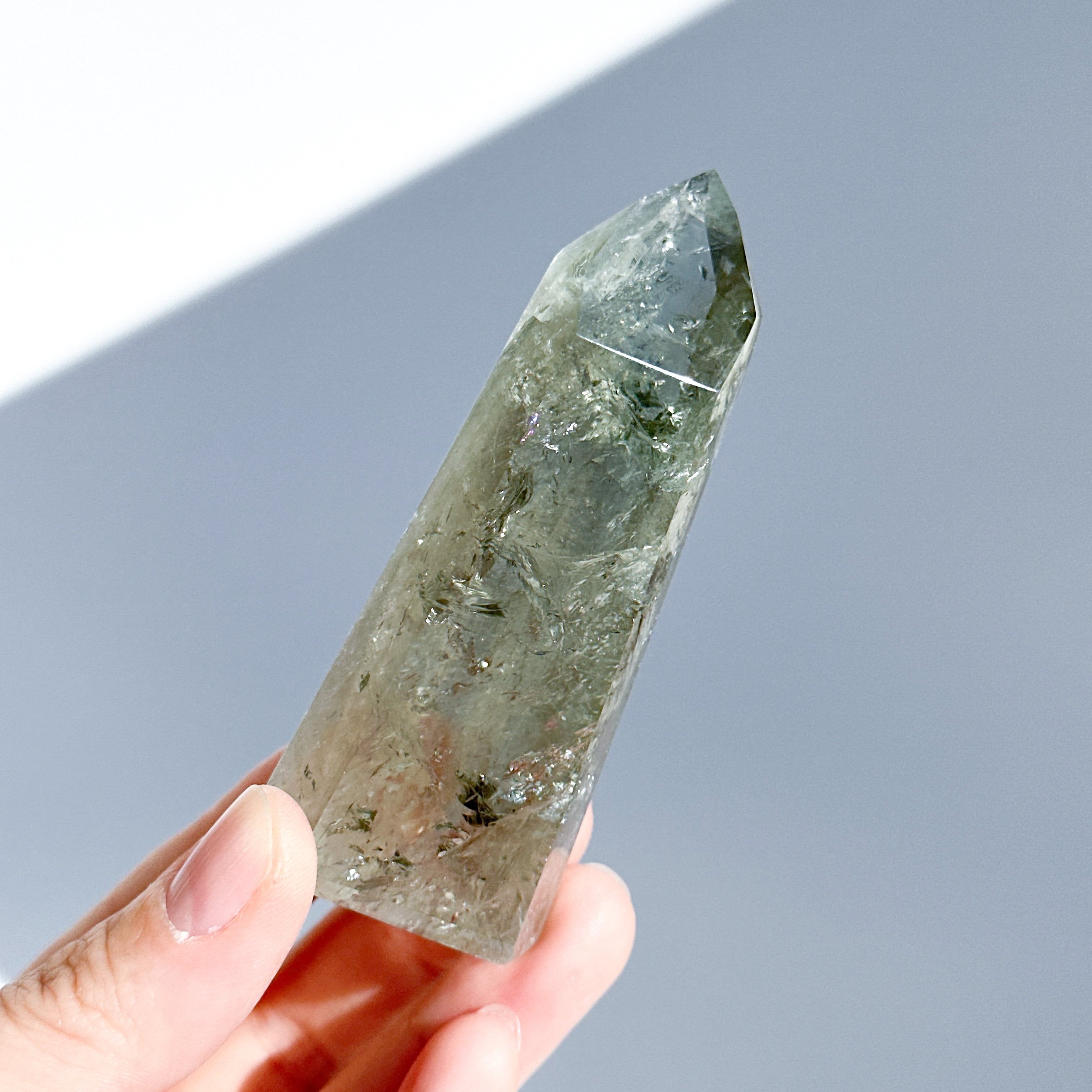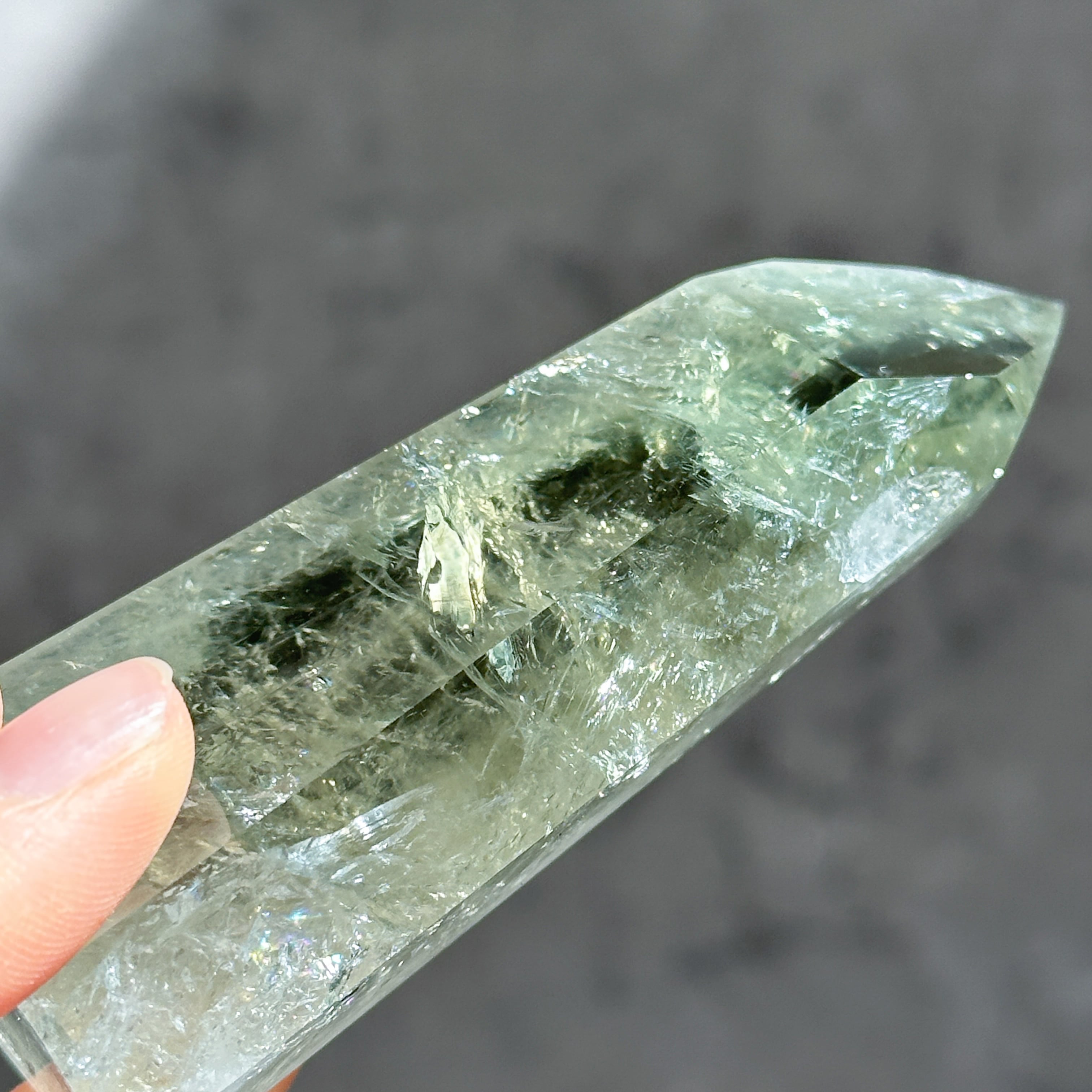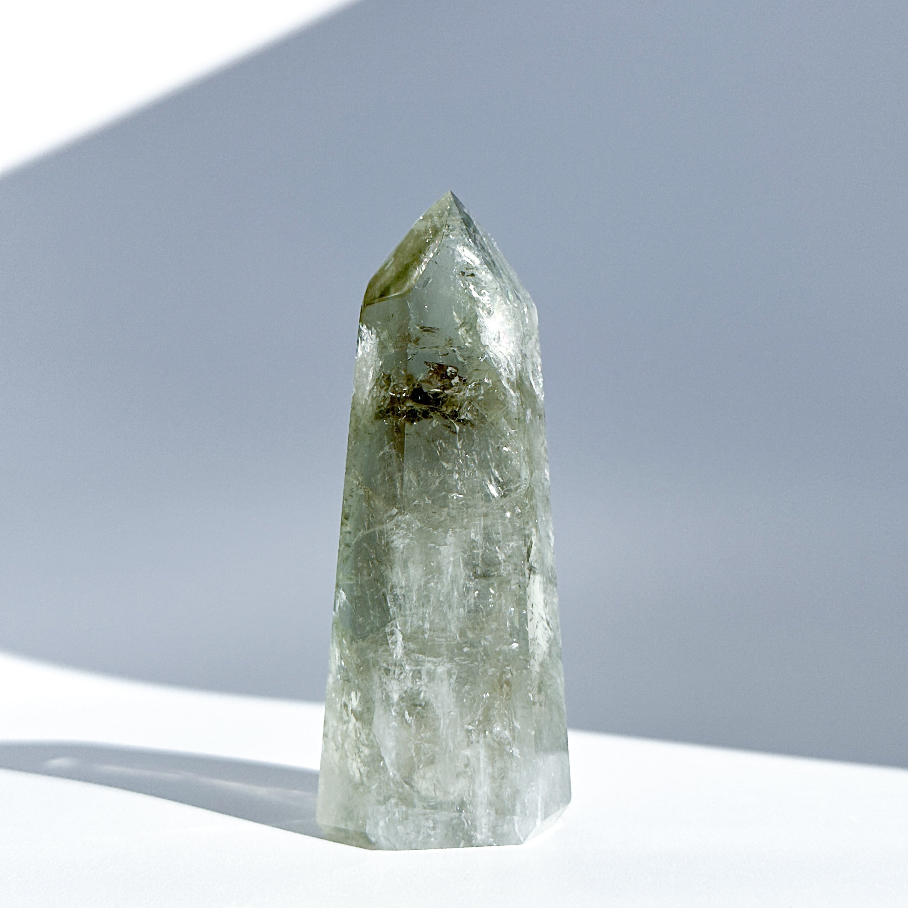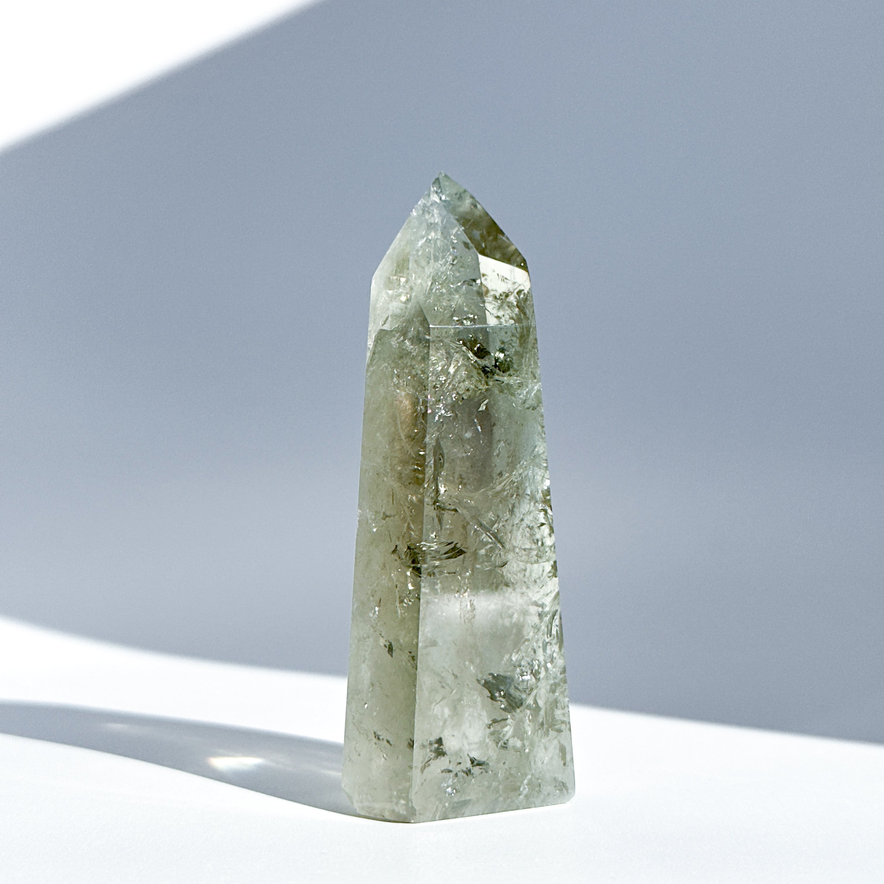 希少な非加熱グリーンアメジストのタワーになります。