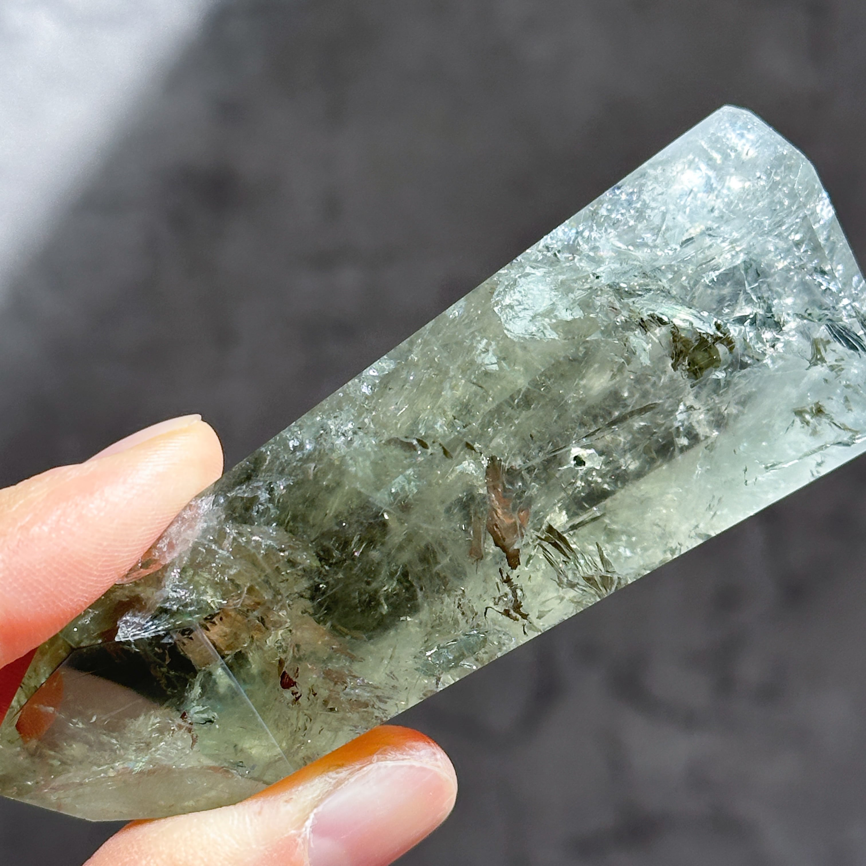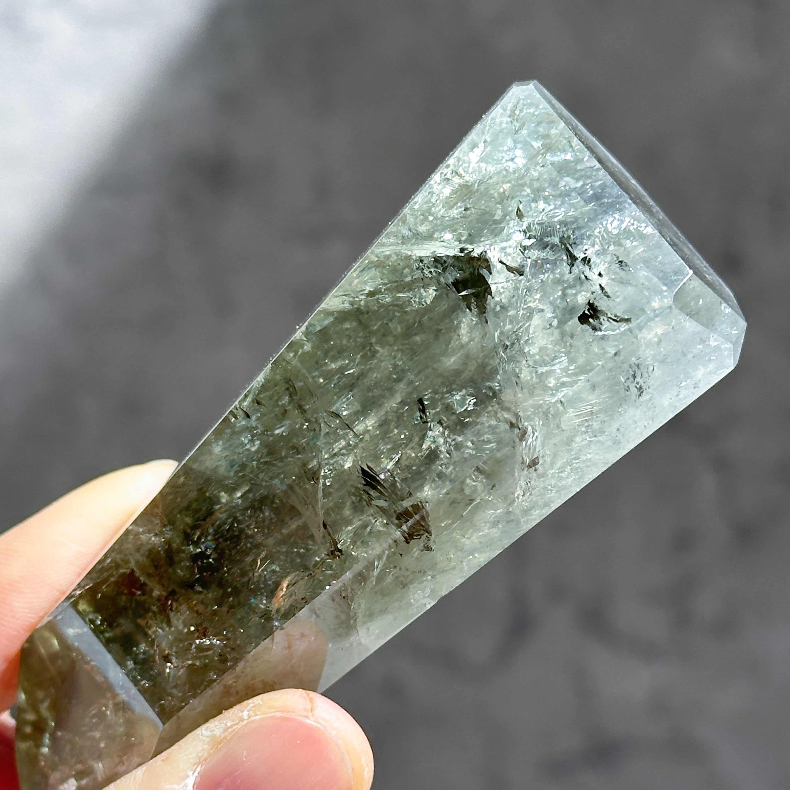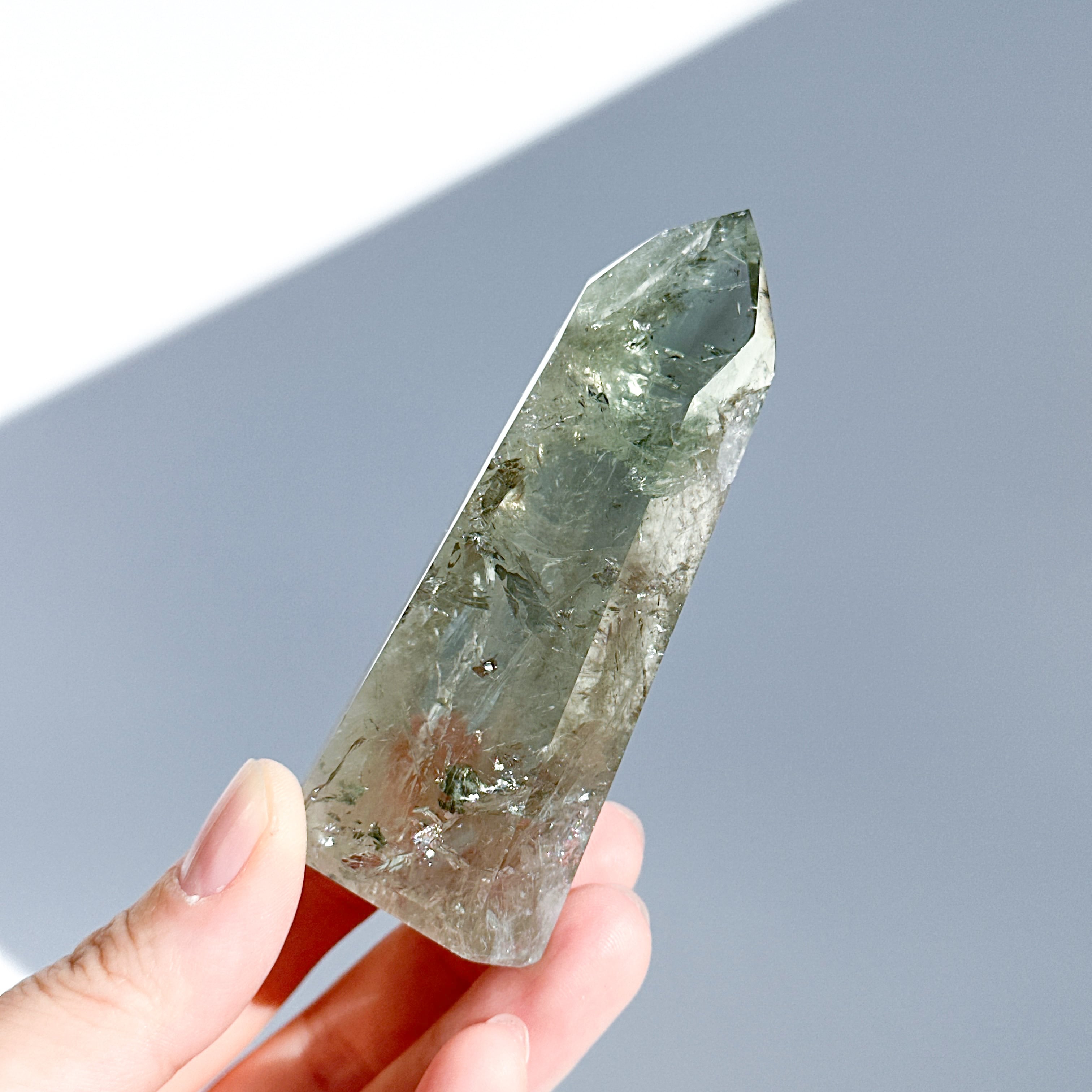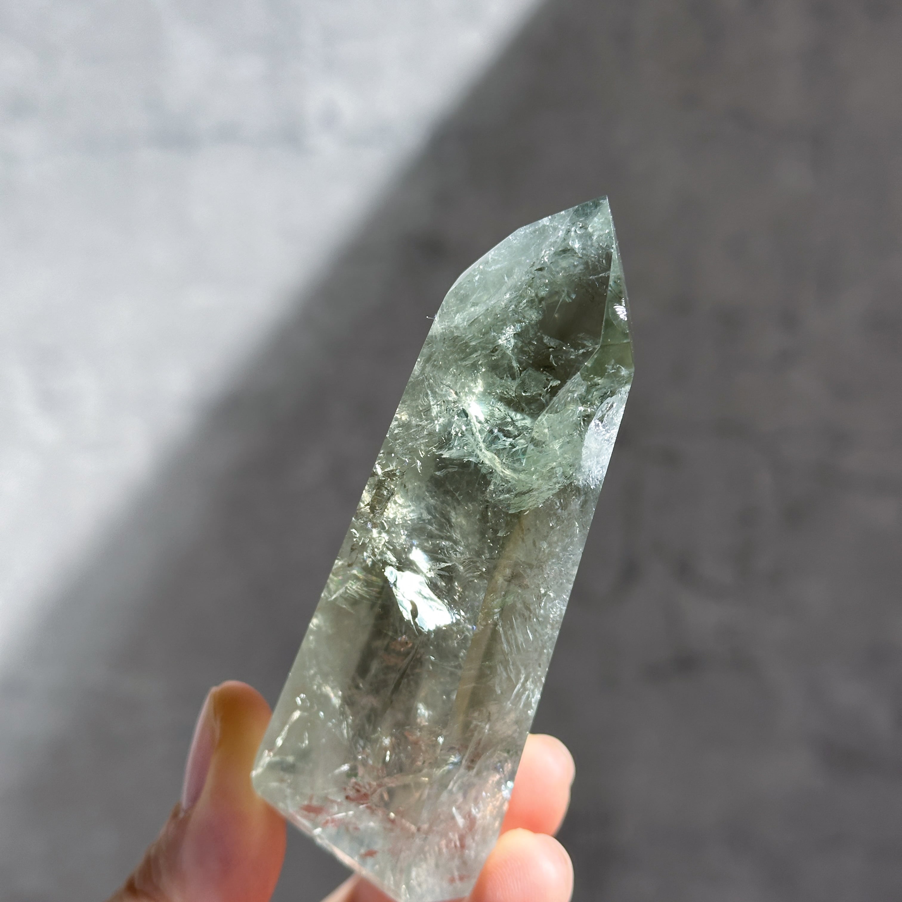 希少な非加熱グリーンアメジストのタワーになります。