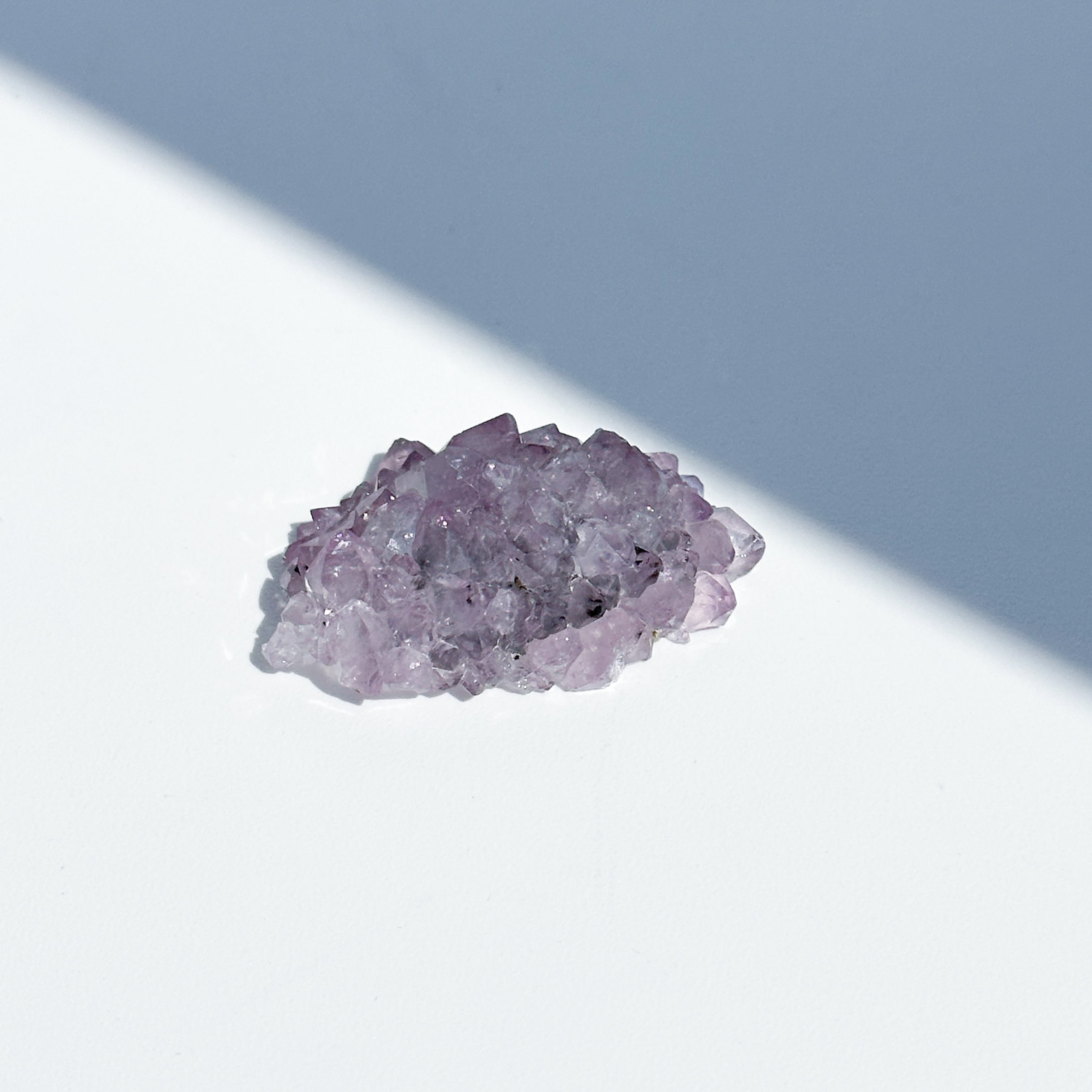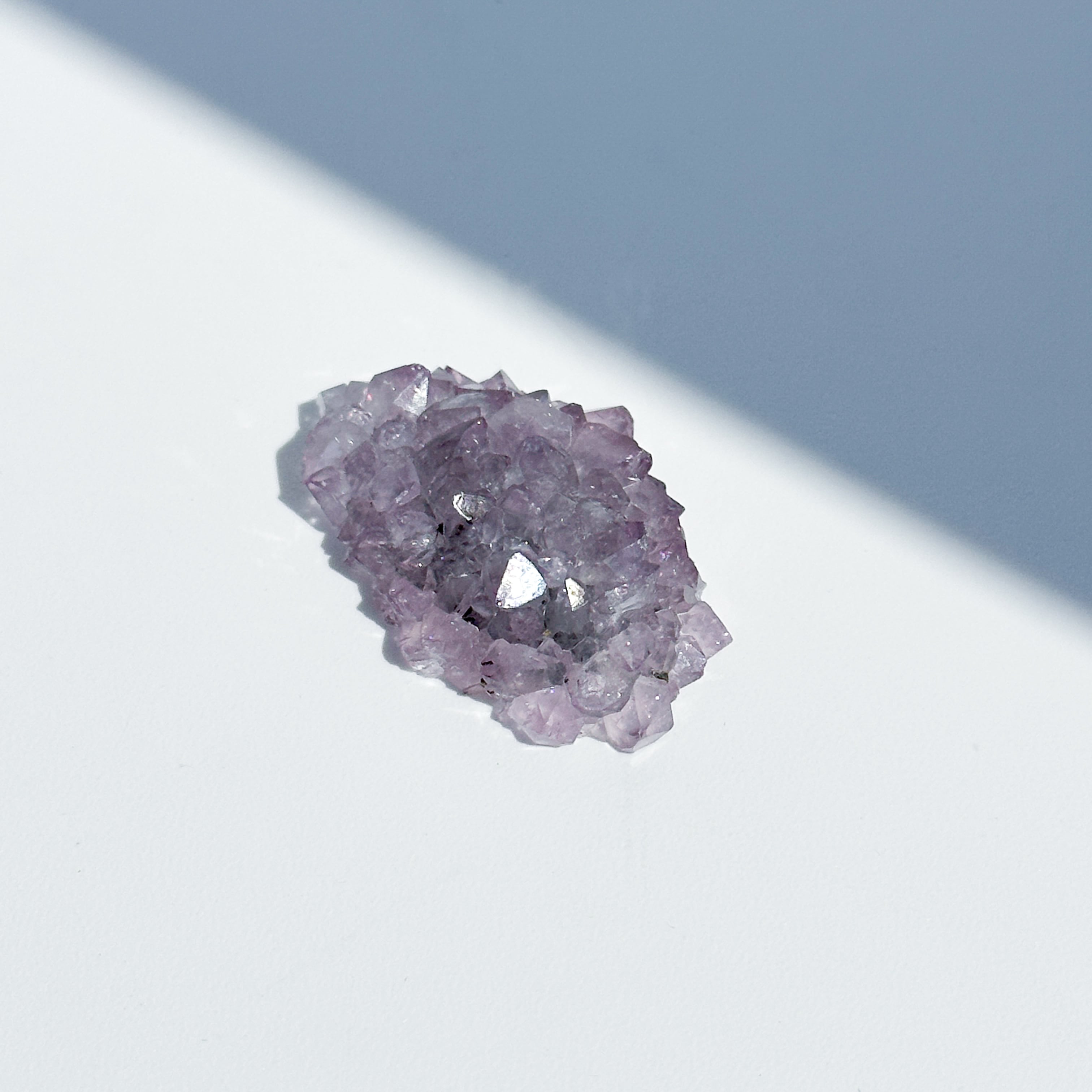 水晶の色変種であるアメジストは、結晶内に取り込まれた鉄分の量によって淡いピンク色〜濃い紫色となります。