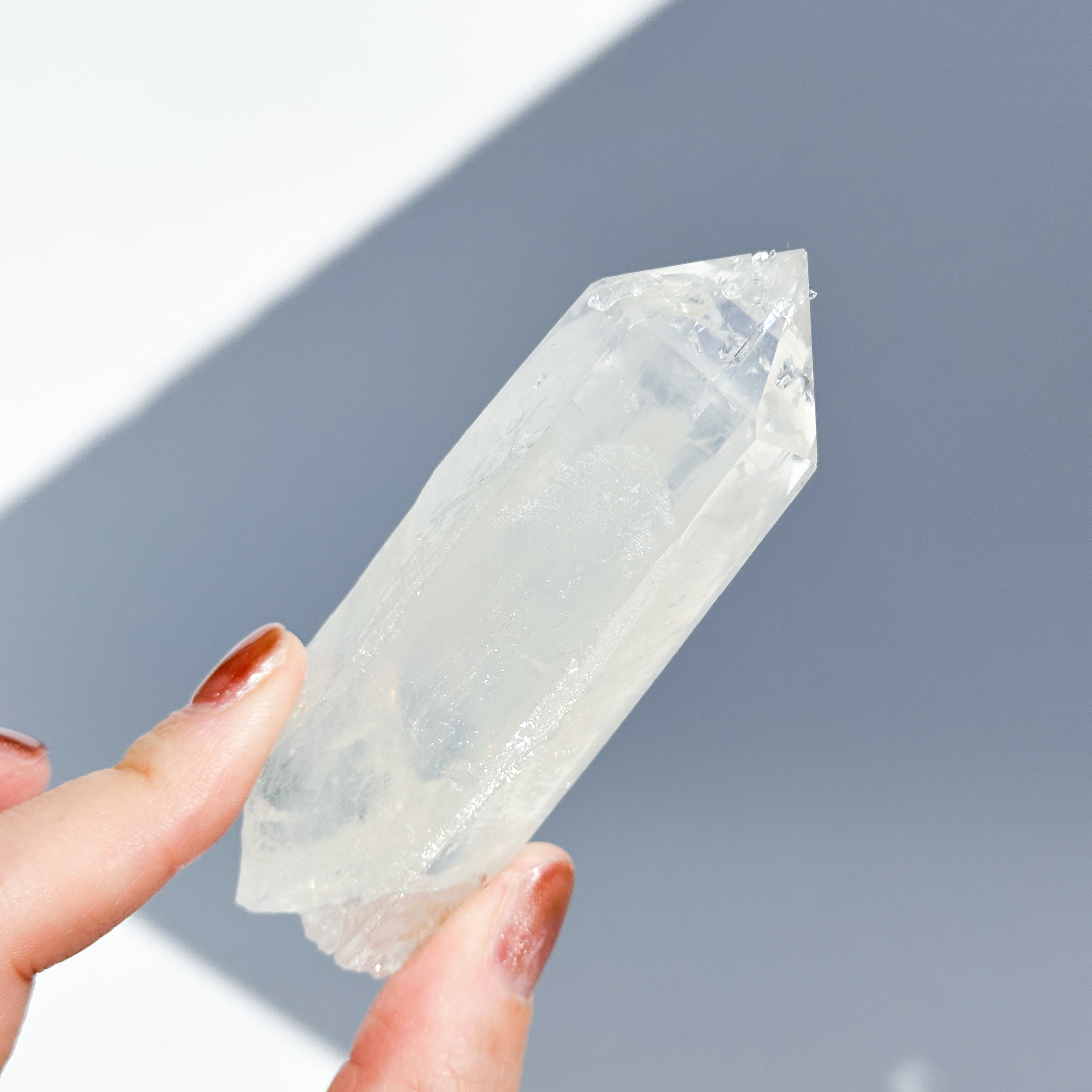 クリアクォーツの中に青白い靄のようなものが見られるシングルポイント。
