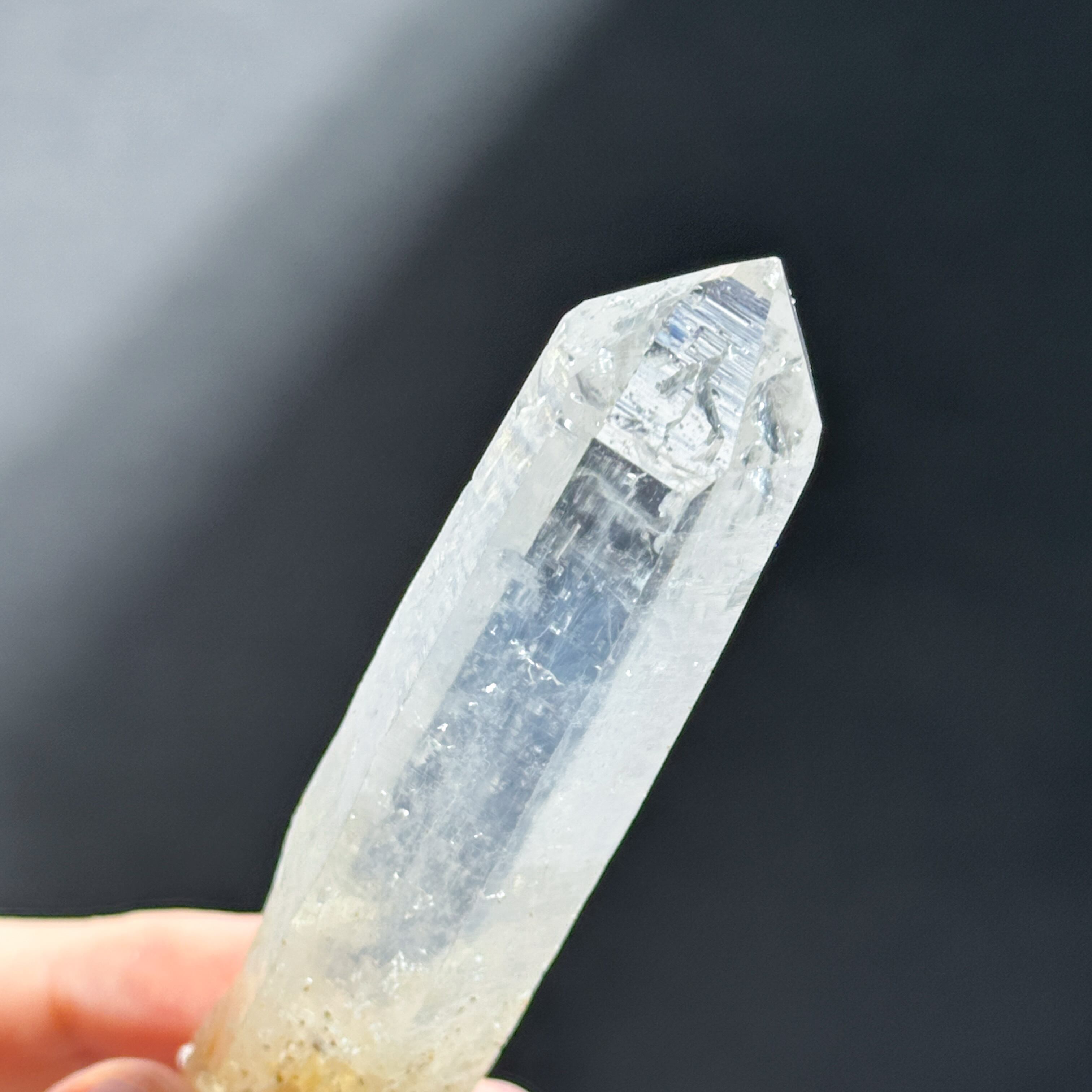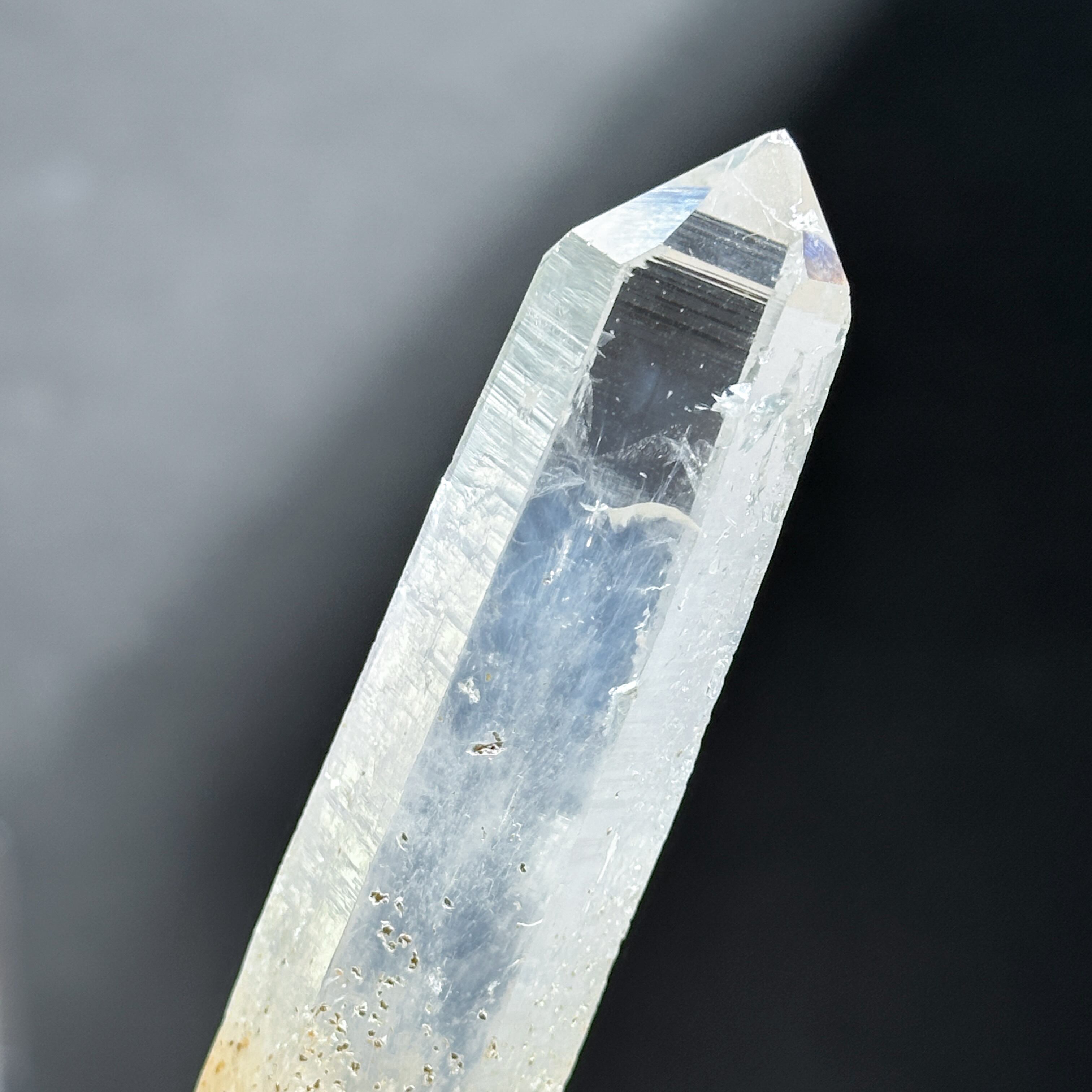 クリアクォーツの中に青白い靄のようなものが見られるシングルポイント。