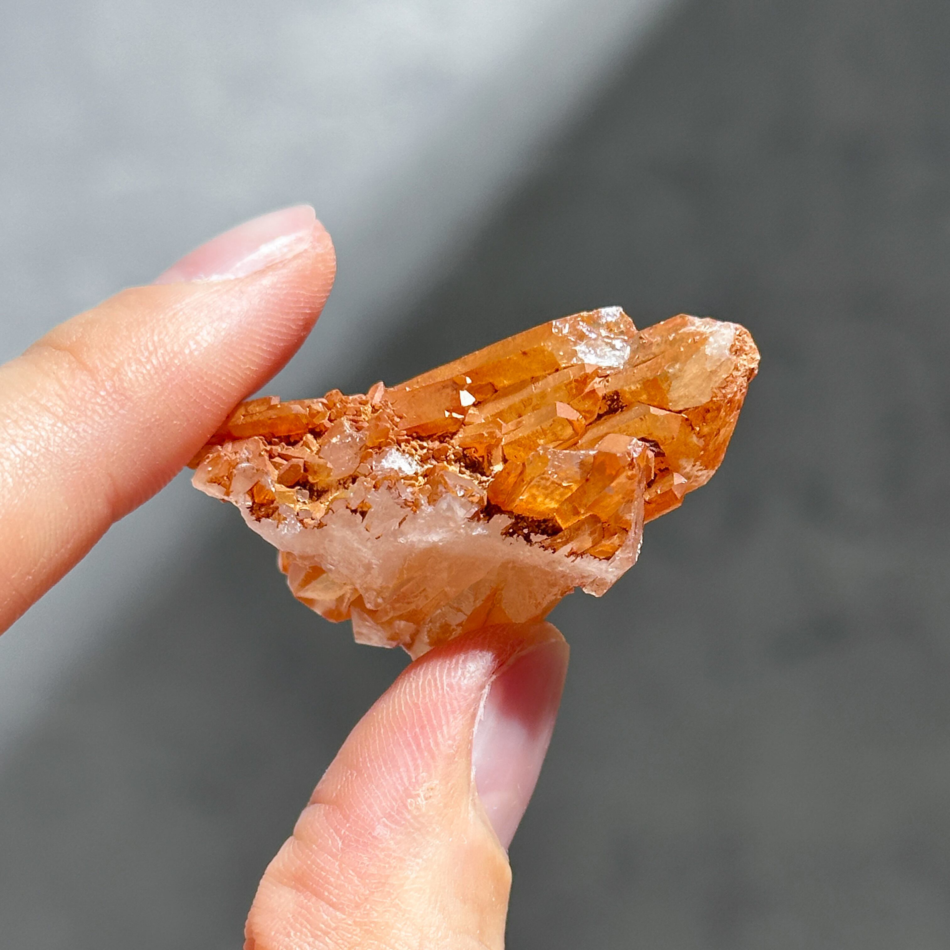 タンジェリンクォーツは、水晶(クリアクォーツ)の表面にヘマタイトが付着して、