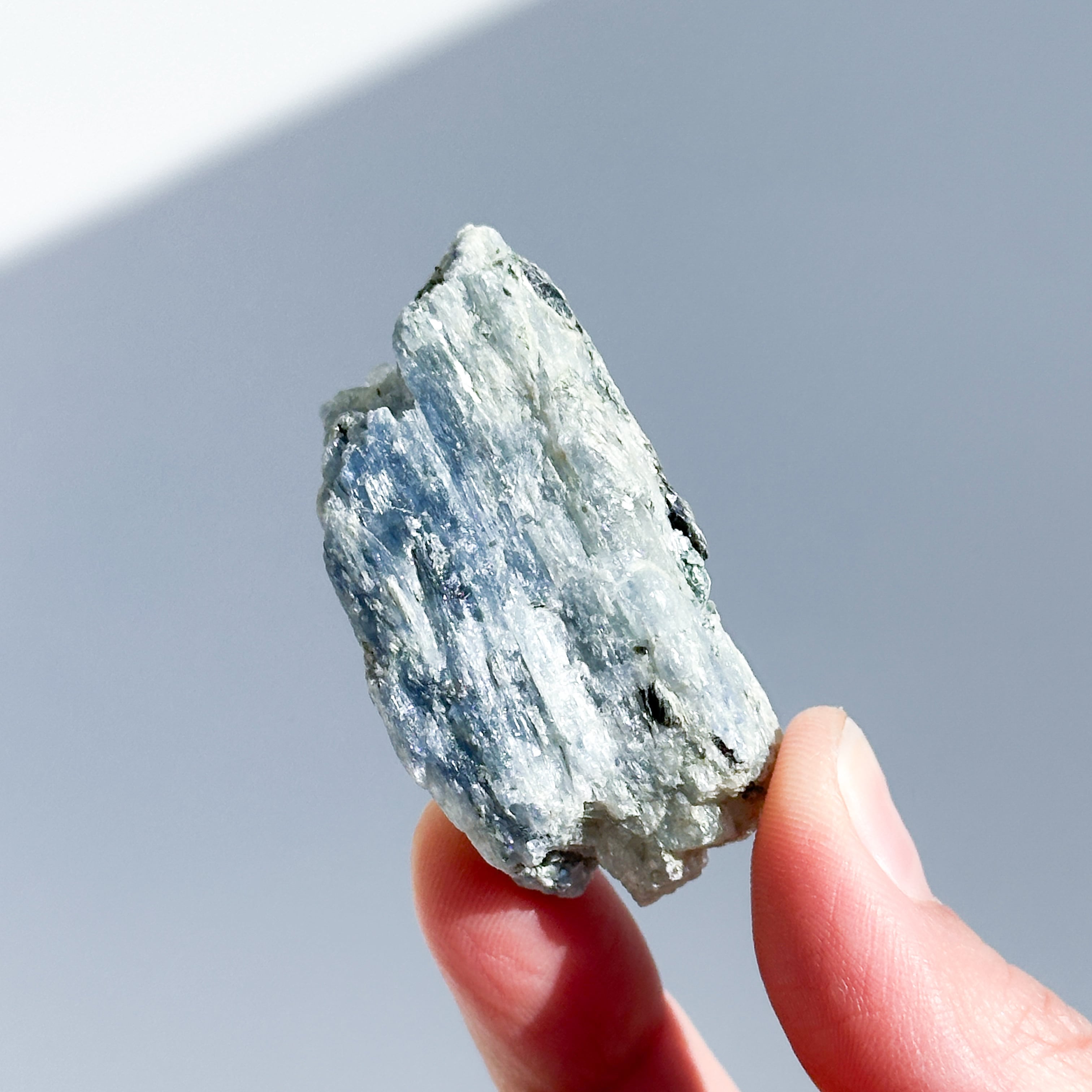 柱状の結晶が幾重にも重なった青の層が美しいカイヤナイト。