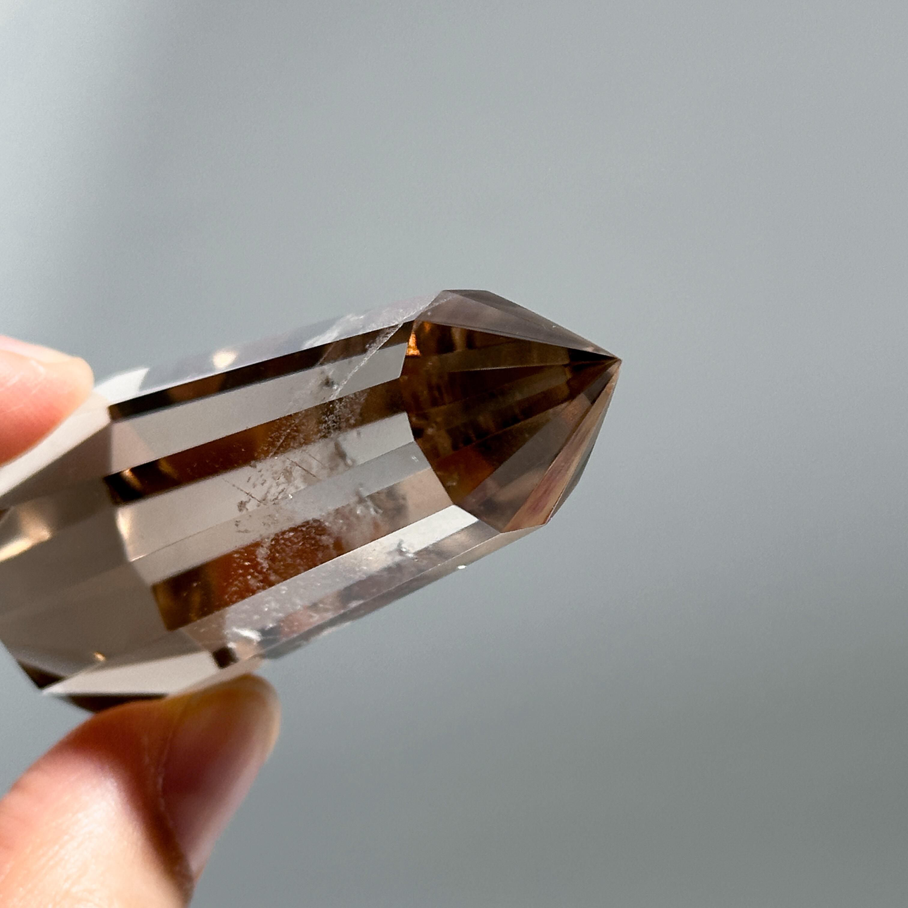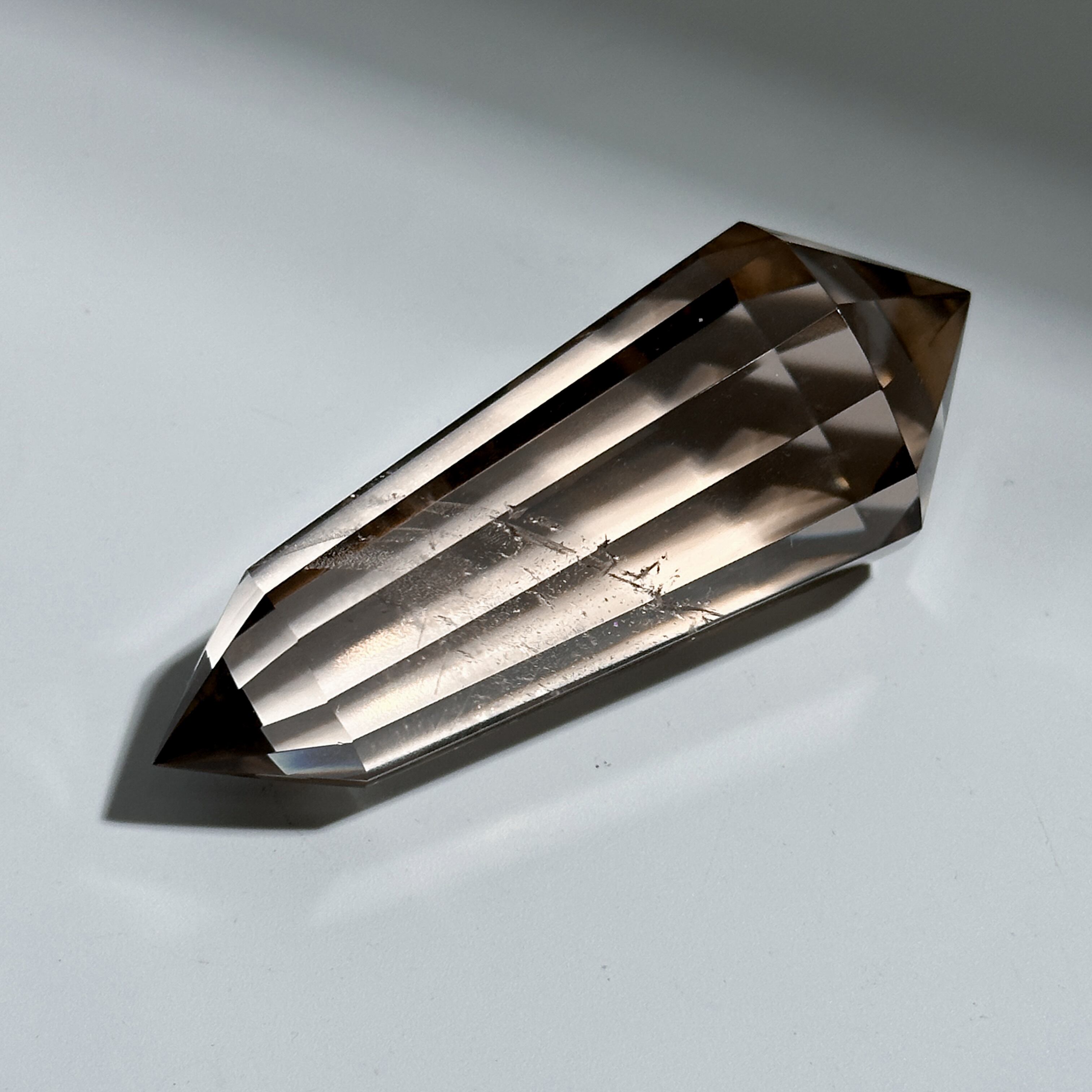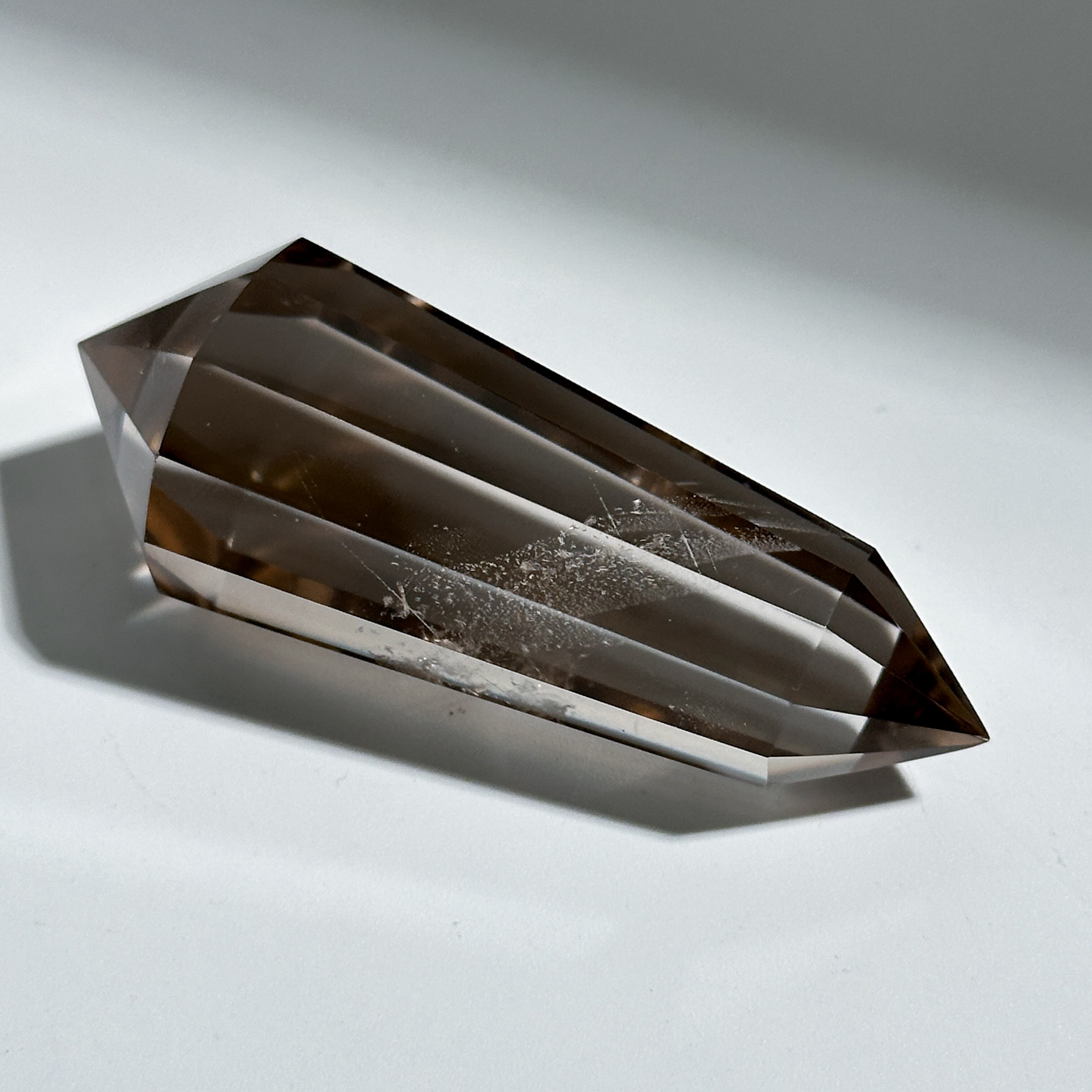 ブラジル・ミナスジェライス産のスモーキークォーツをダブルターミネイテッド(両剣型)に研磨したものです。