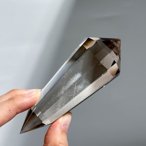 ブラジル・ミナスジェライス産のスモーキークォーツをダブルターミネイテッド(両剣型)に研磨したものです。