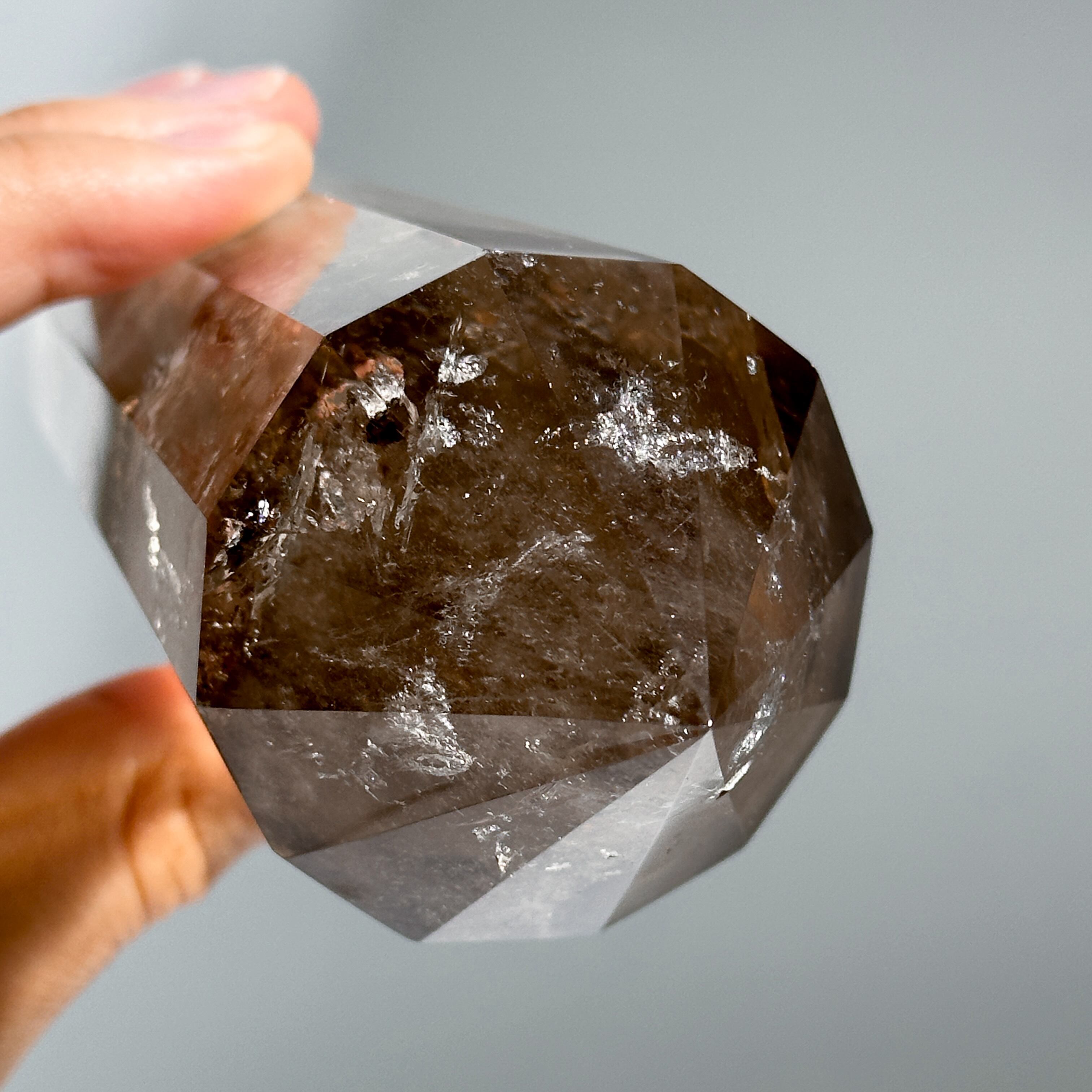 ブラジル・ミナスジェライス産のスモーキークォーツをダブルターミネイテッド(両剣型)に研磨したものです。