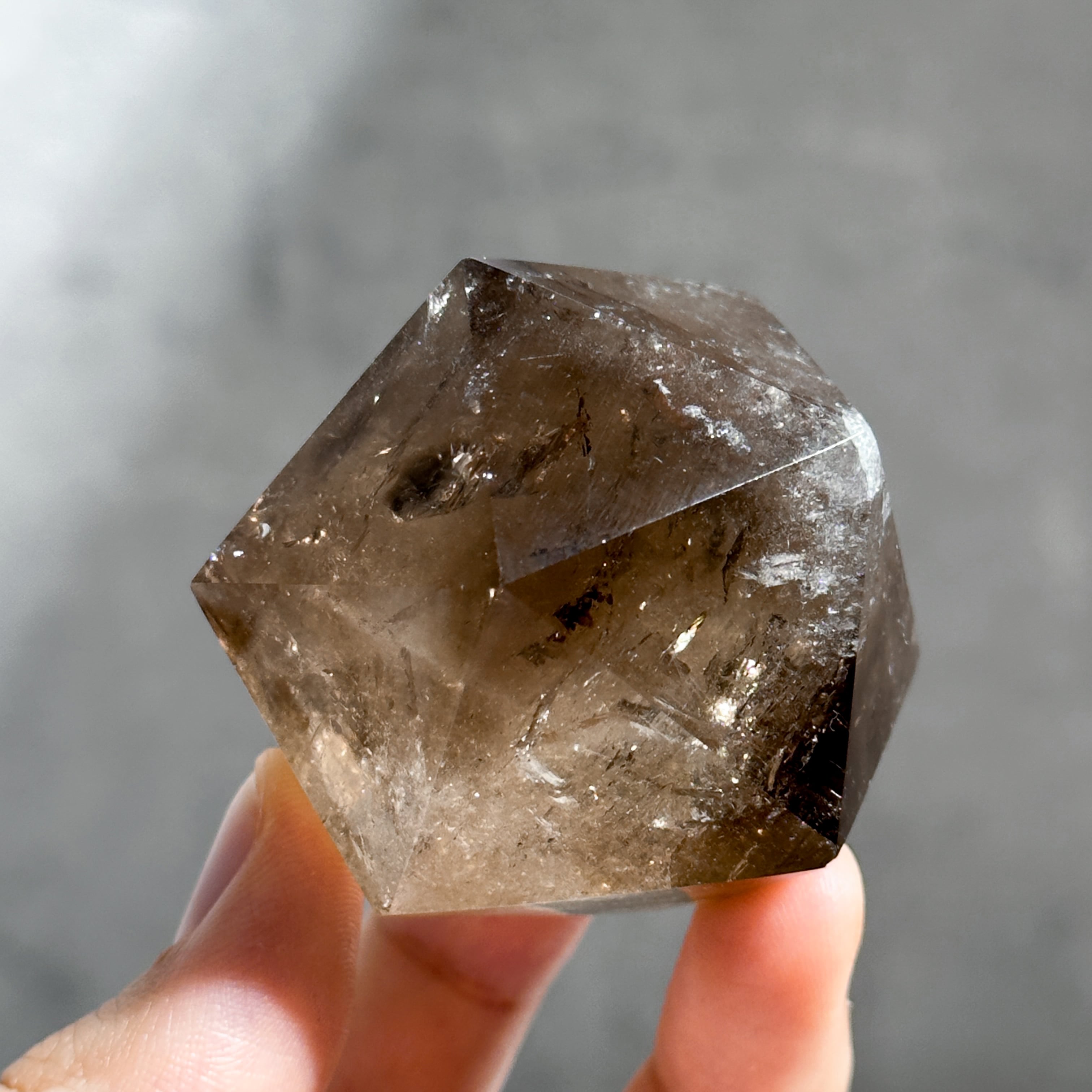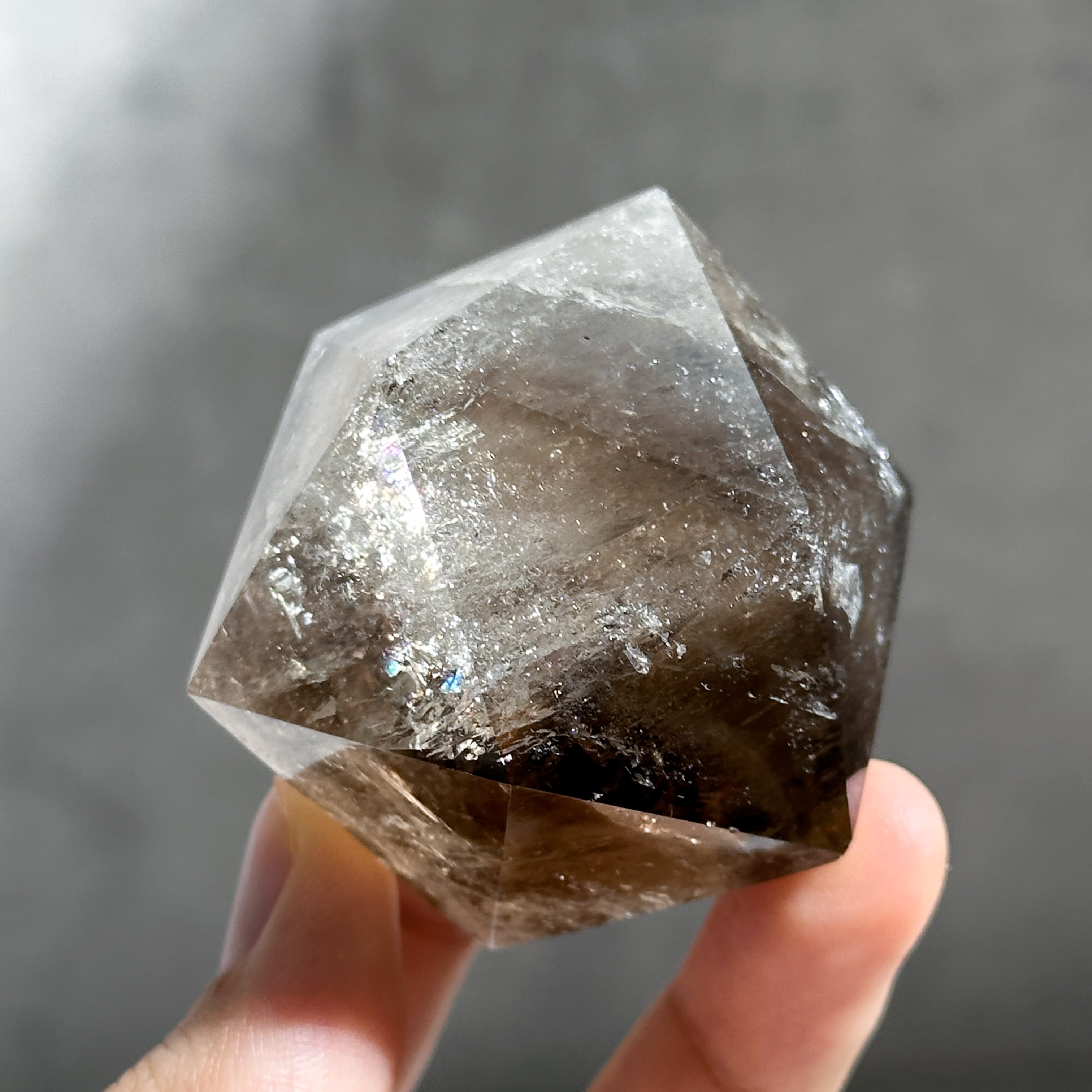 ブラジル・ミナスジェライス産のスモーキークォーツを、正二十面体に研磨したものです。