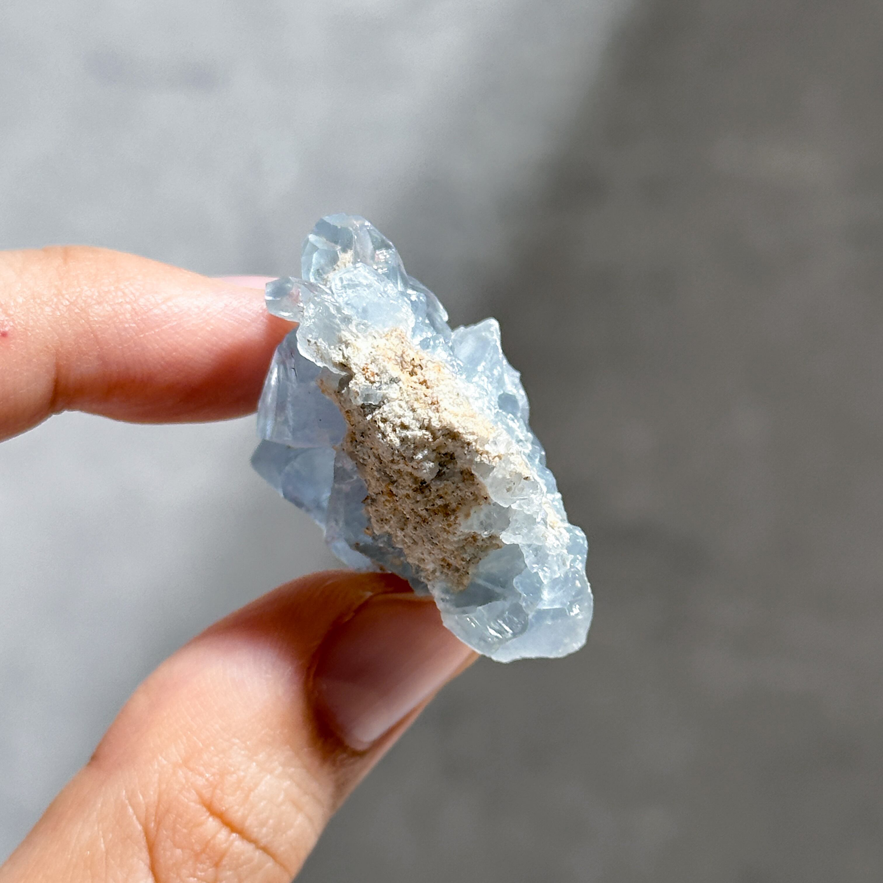 幾多あるブルーの天然石の中でも、晴れた空の穏やかさに最も近い印象があるのがセレスタイト。柔らかい色味、優しい輝きから、エンジェルを連想する人も多いようです。