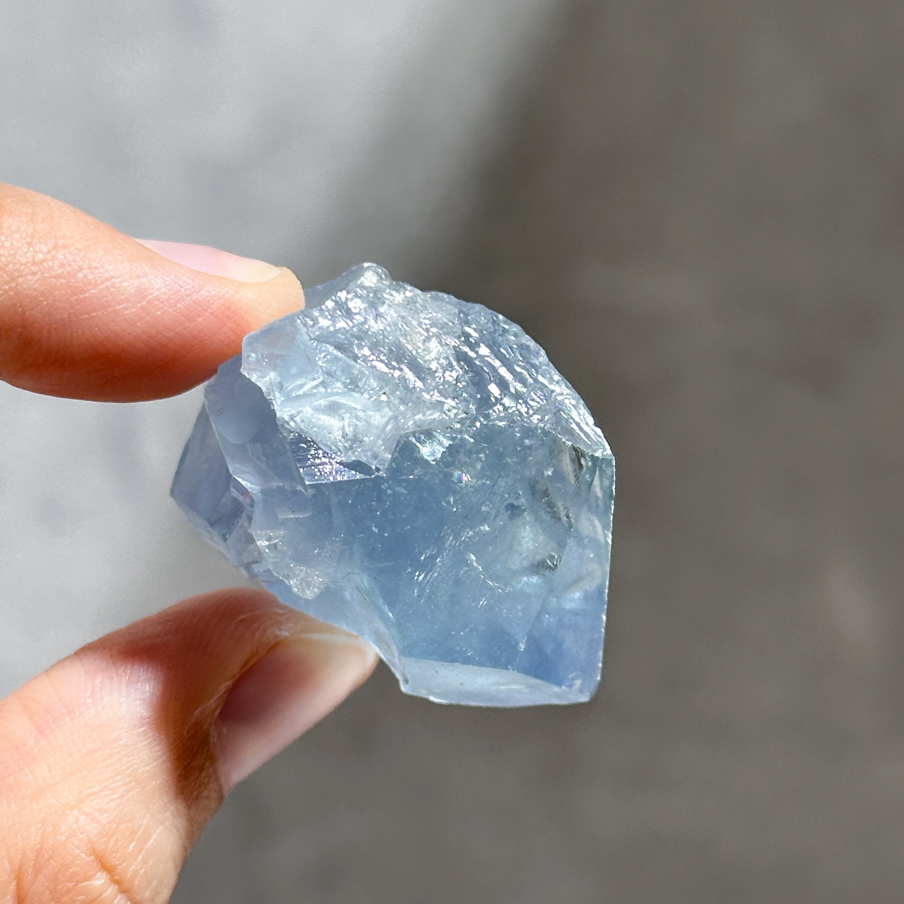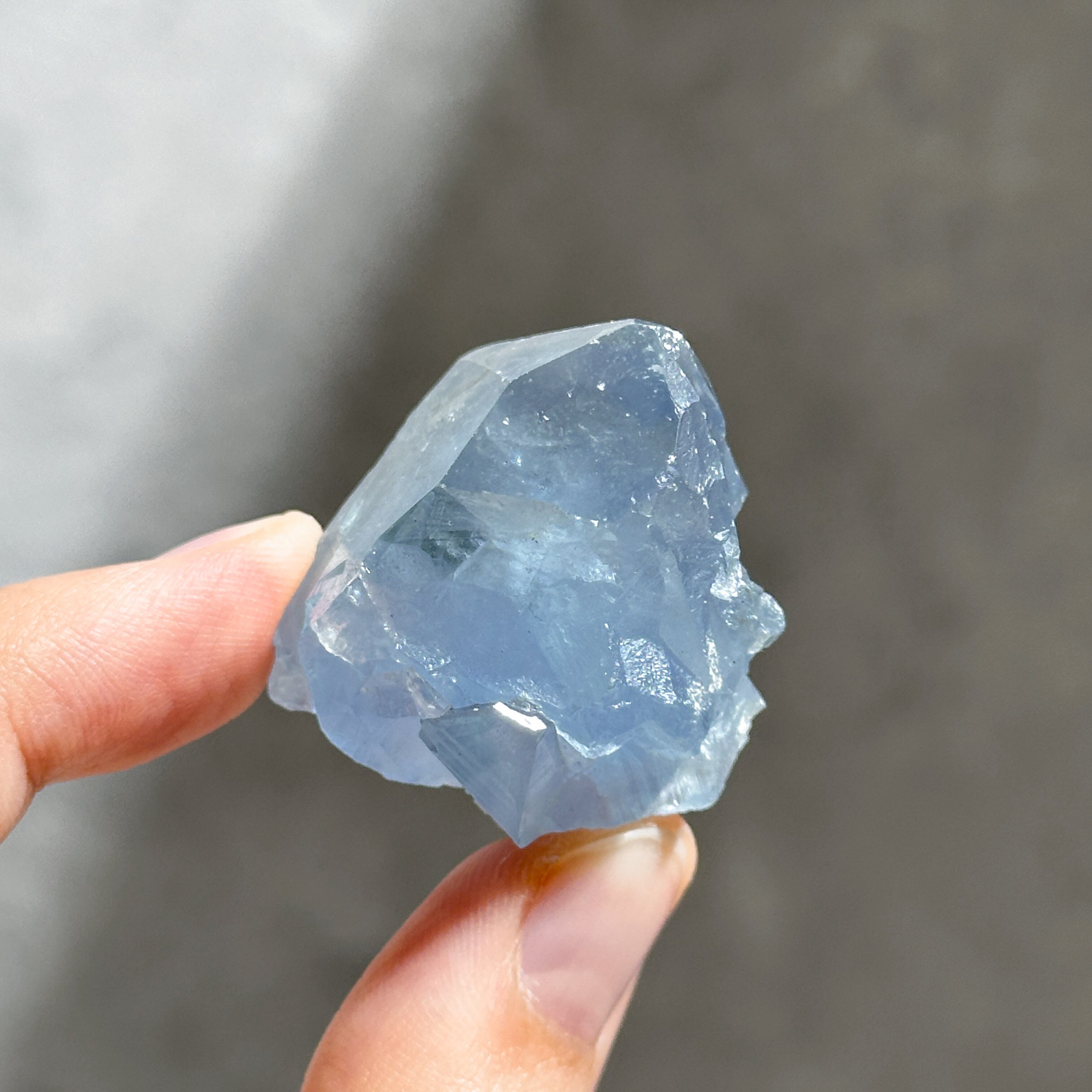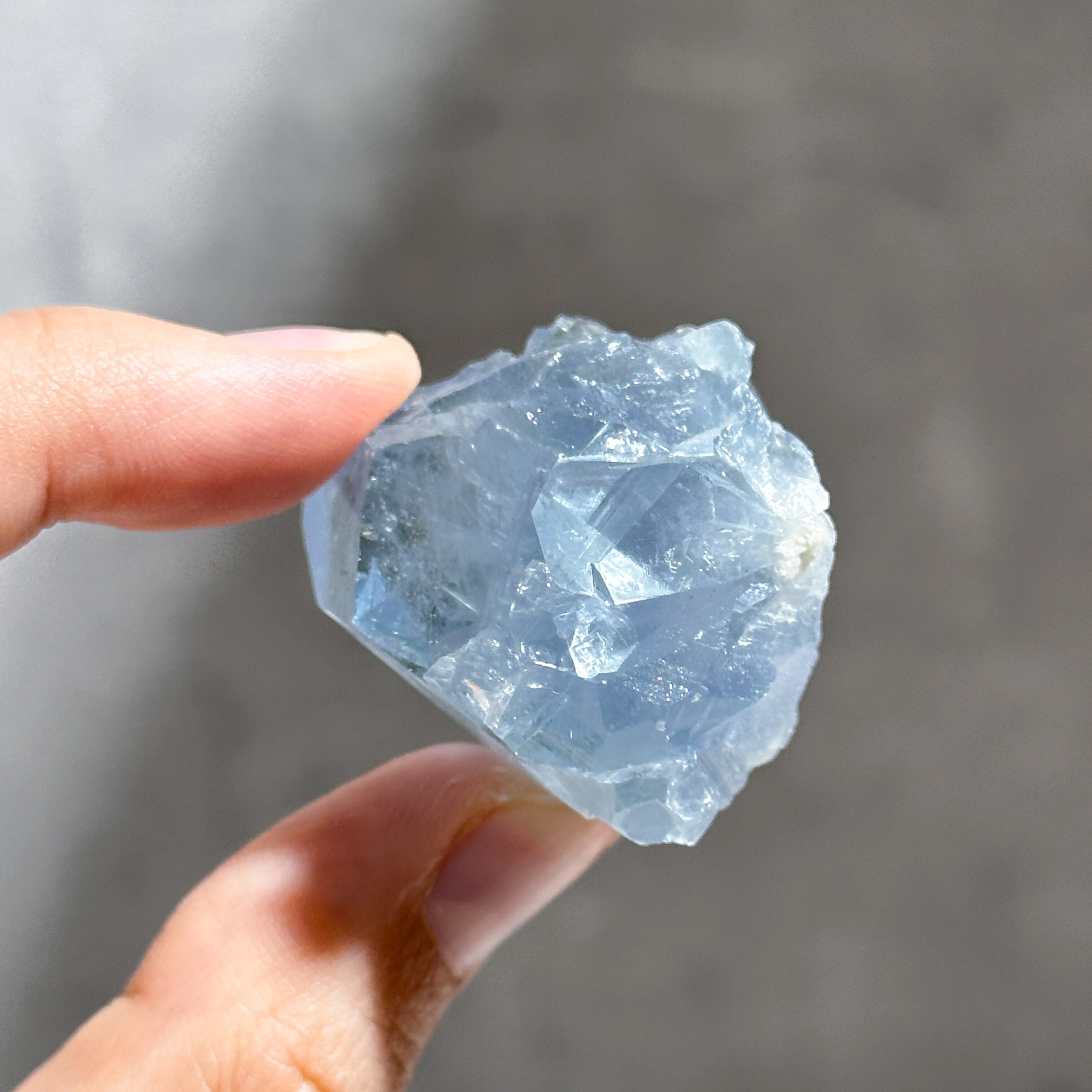 幾多あるブルーの天然石の中でも、晴れた空の穏やかさに最も近い印象があるのがセレスタイト。柔らかい色味、優しい輝きから、エンジェルを連想する人も多いようです。