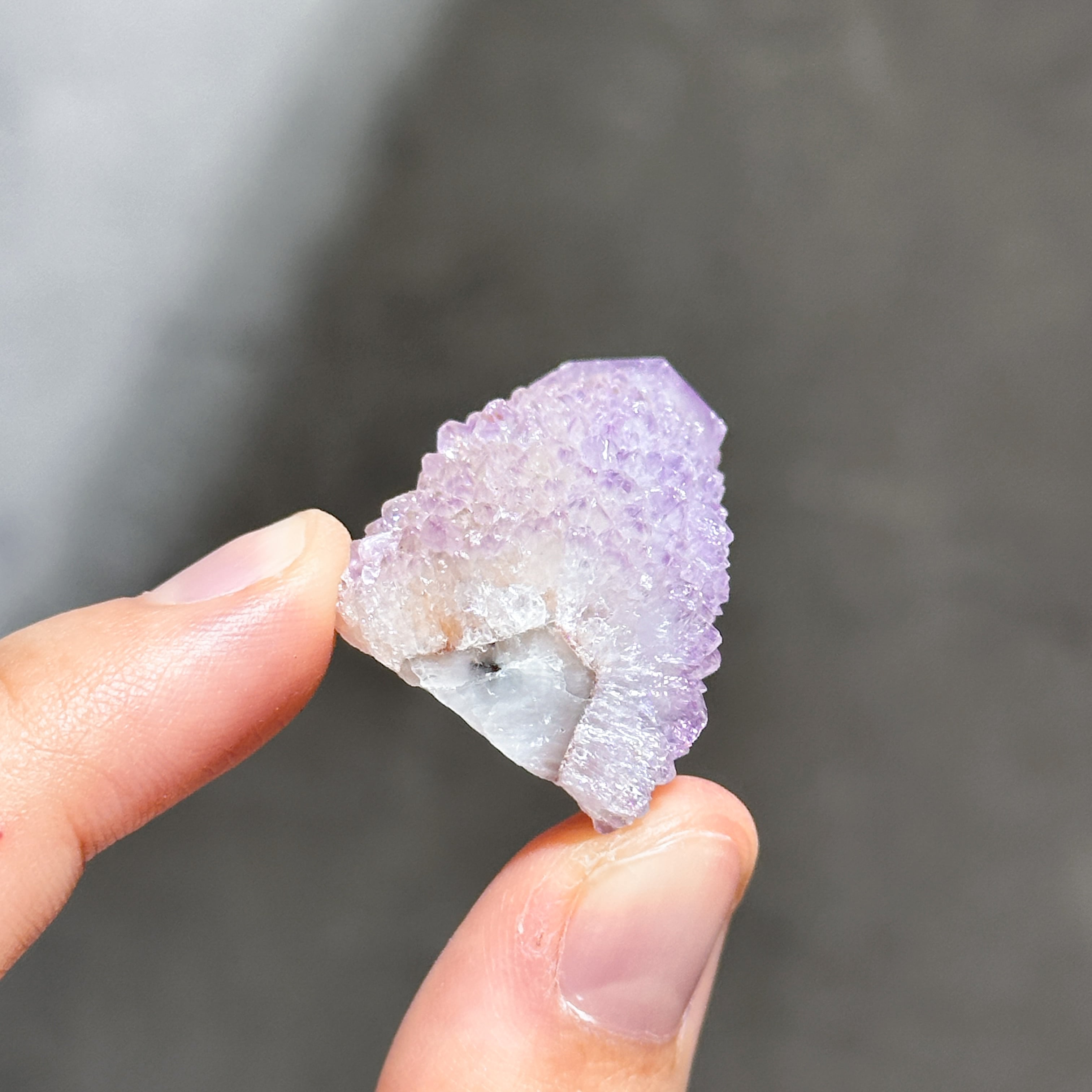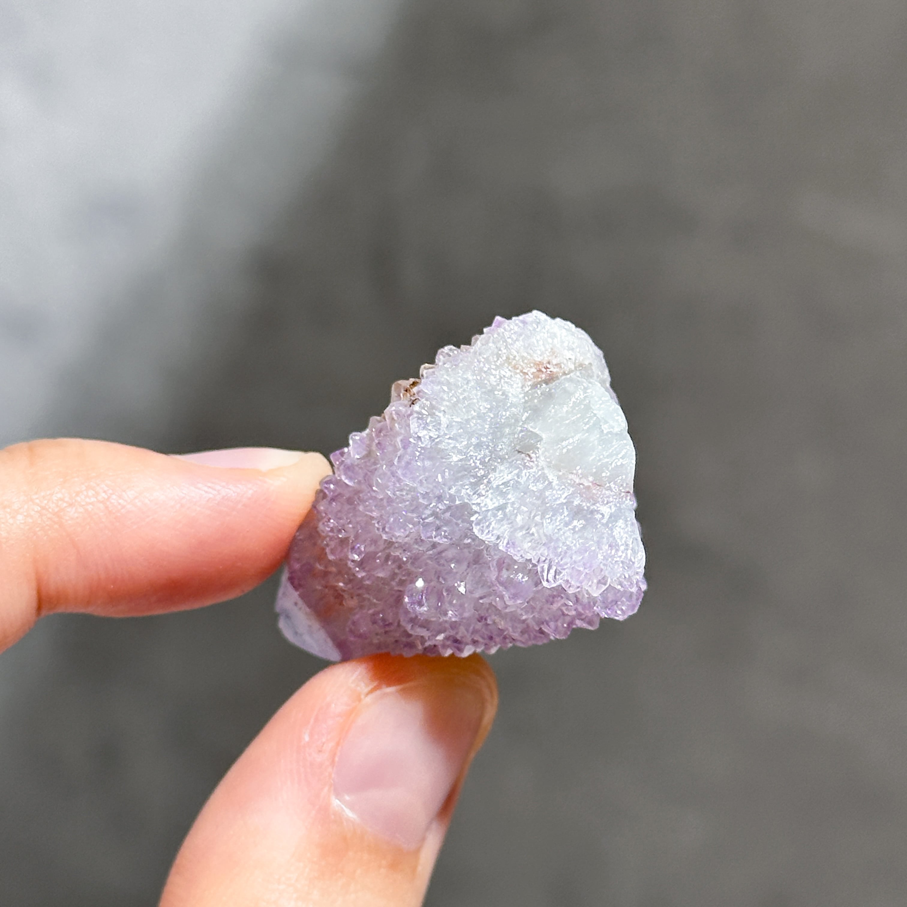 砂糖菓子のように美しい、ライラック色(淡い紫色)のスピリットクォーツのクラスターを、