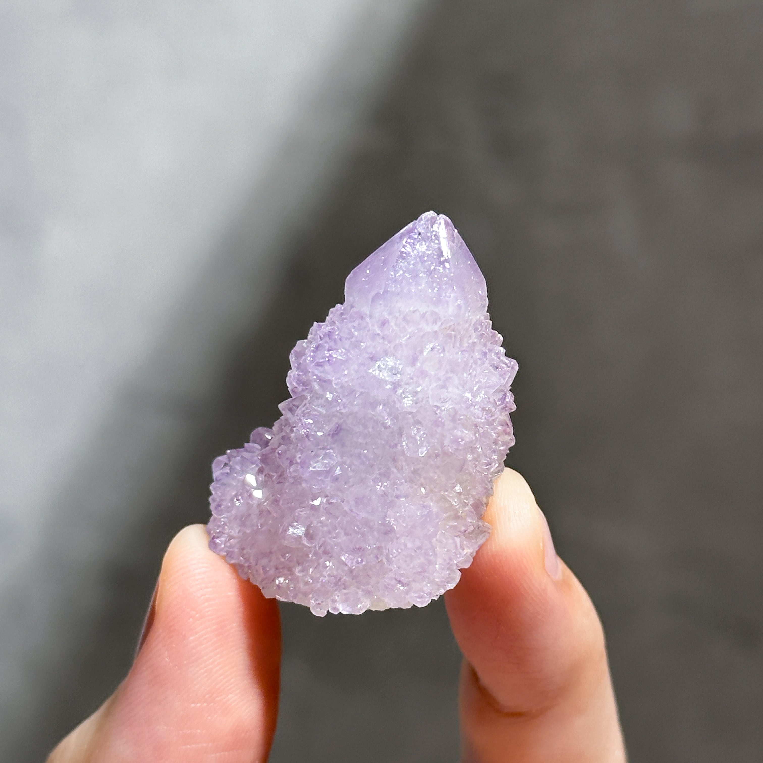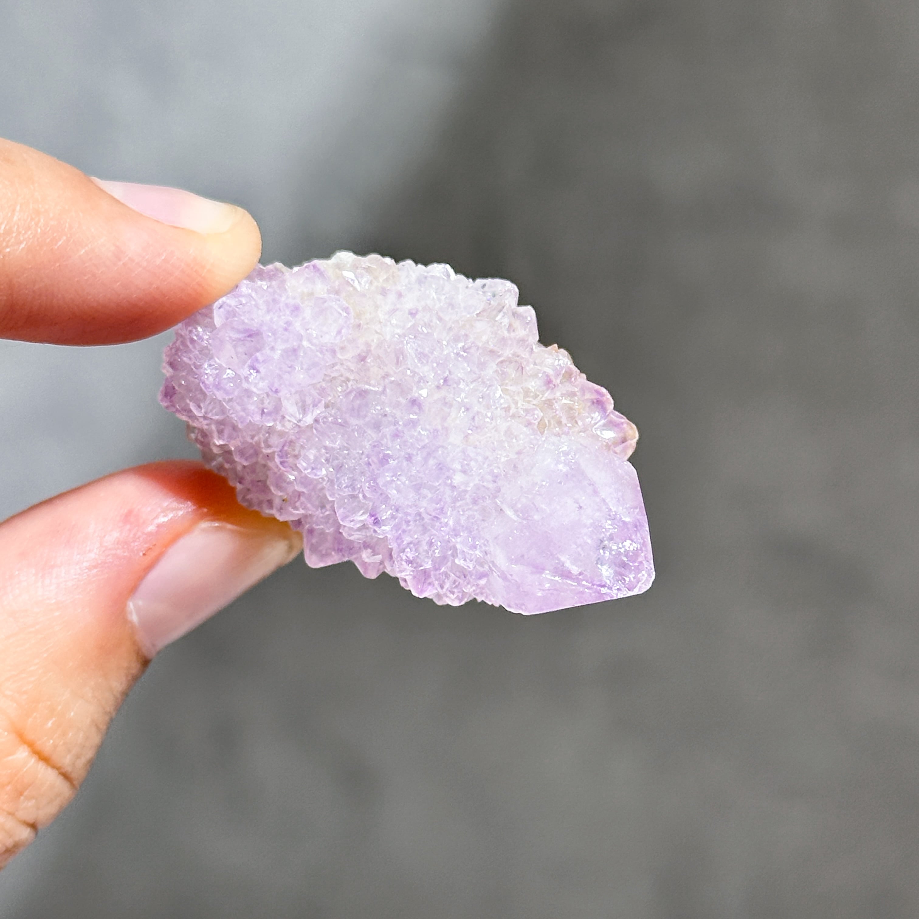 砂糖菓子のように美しい、ライラック色(淡い紫色)のスピリットクォーツのクラスターを、