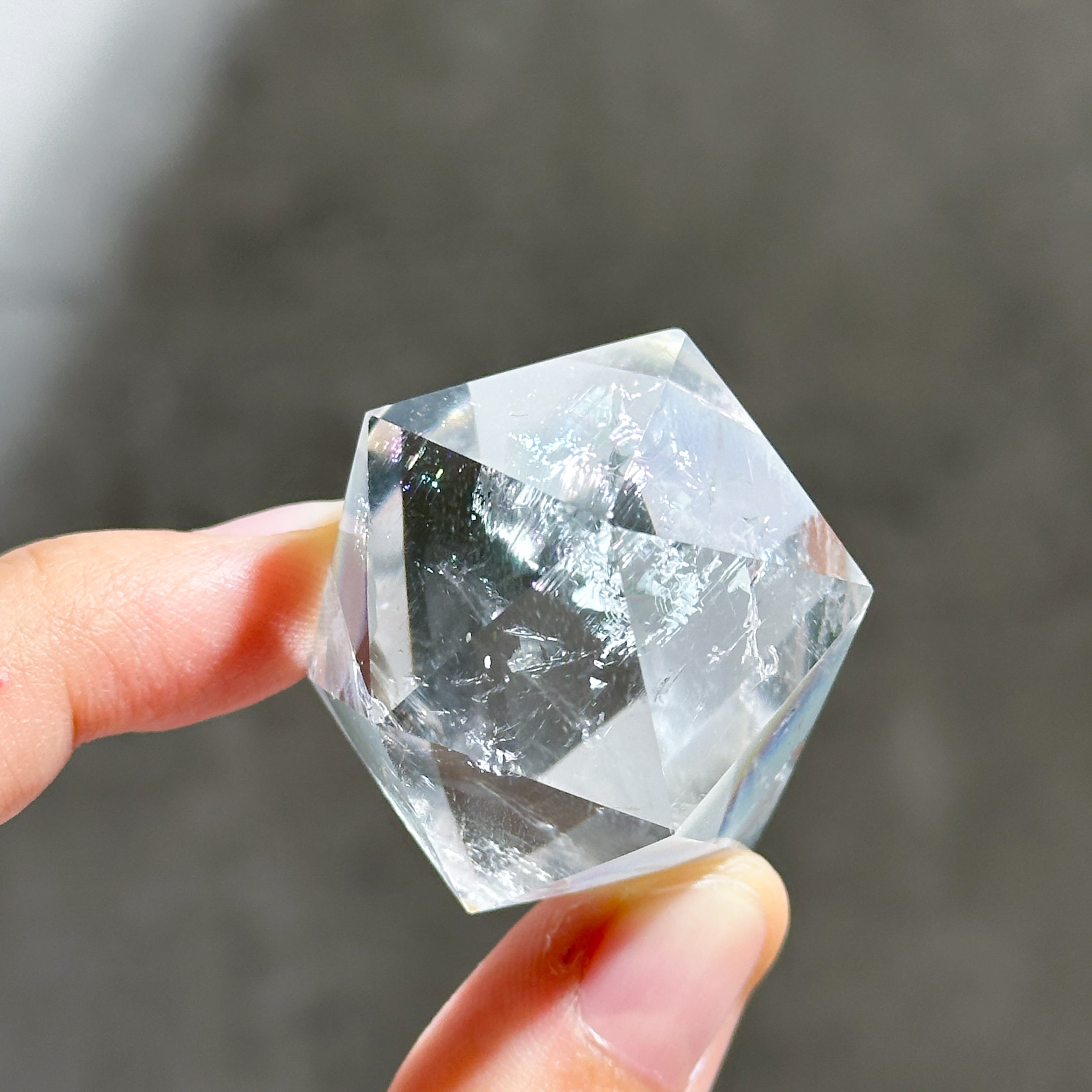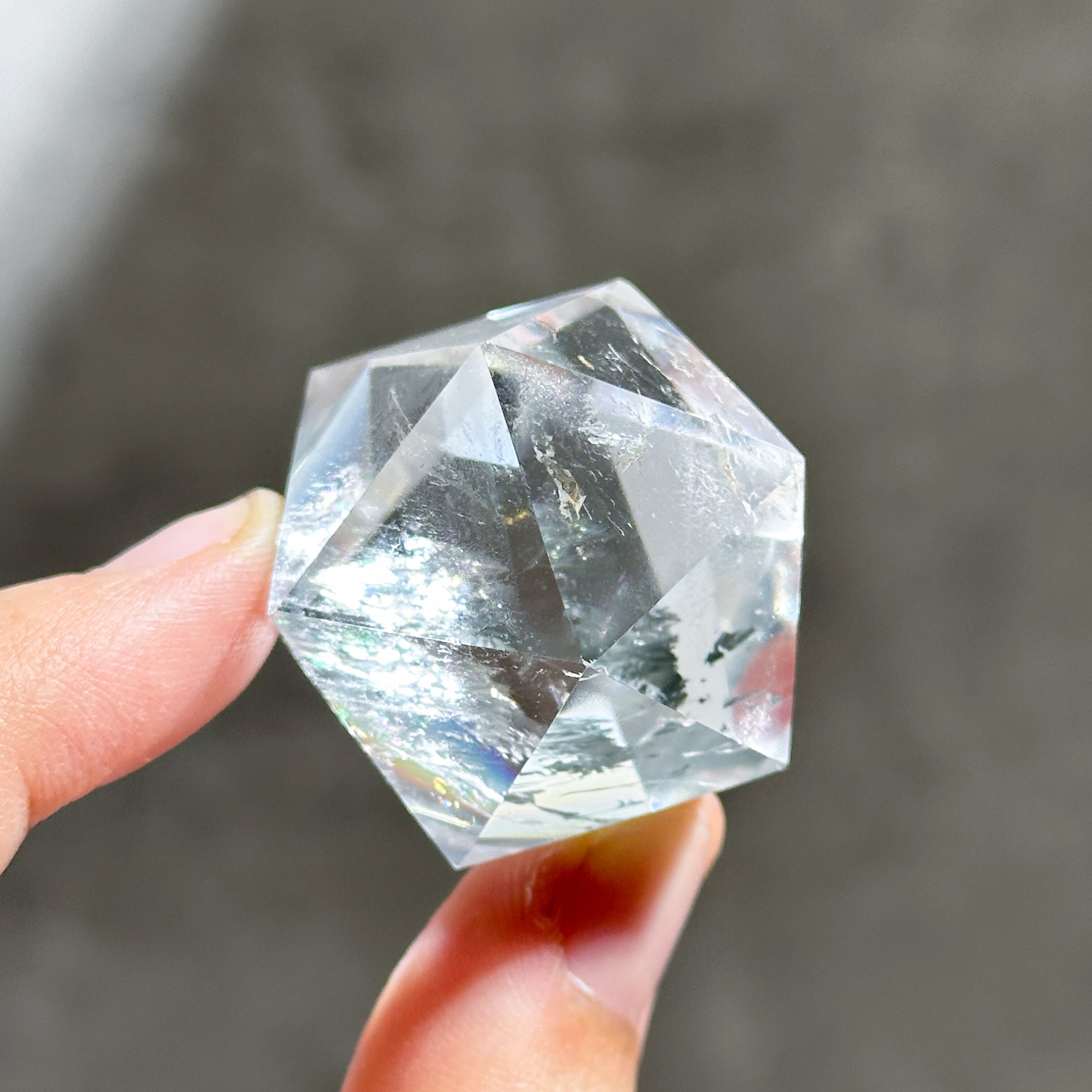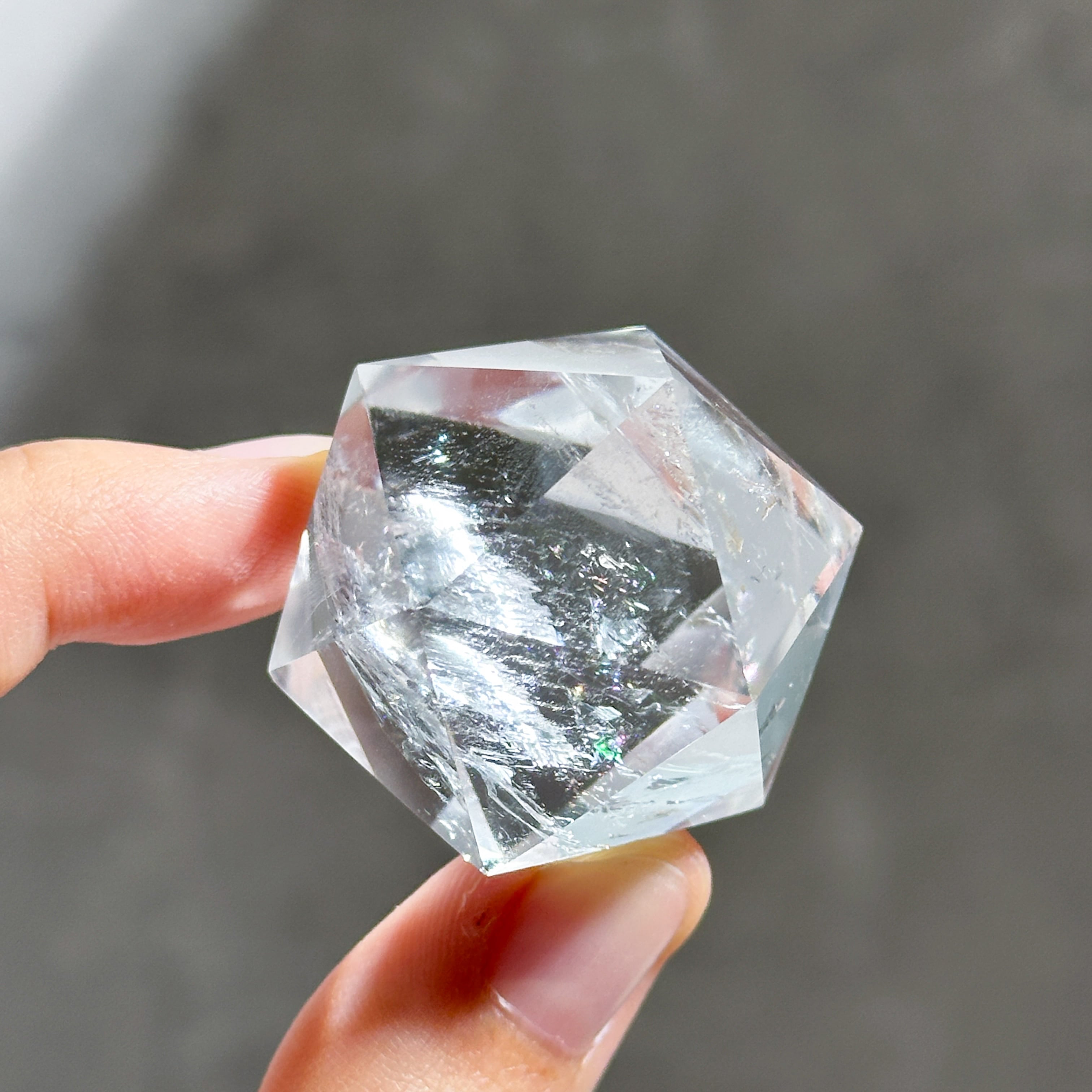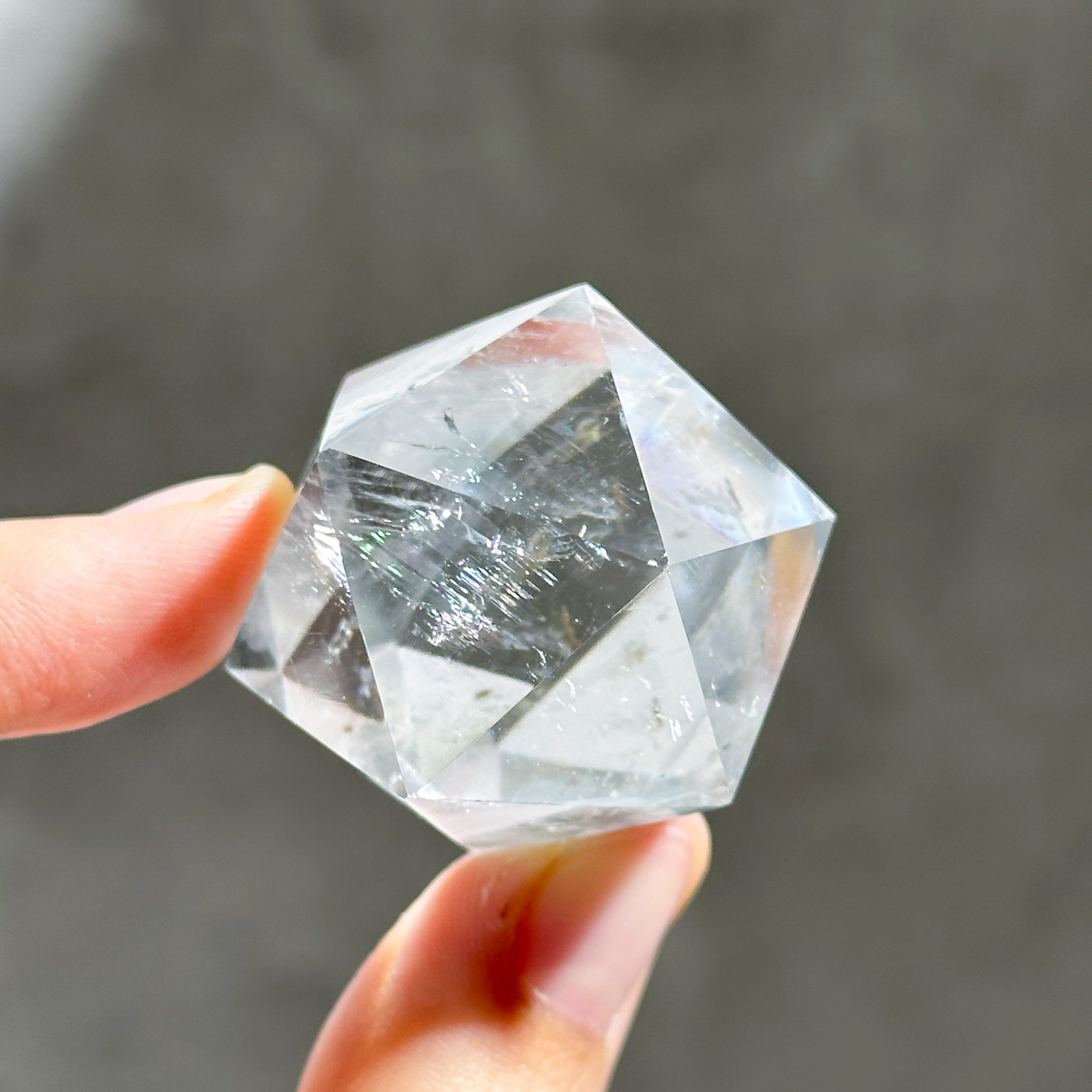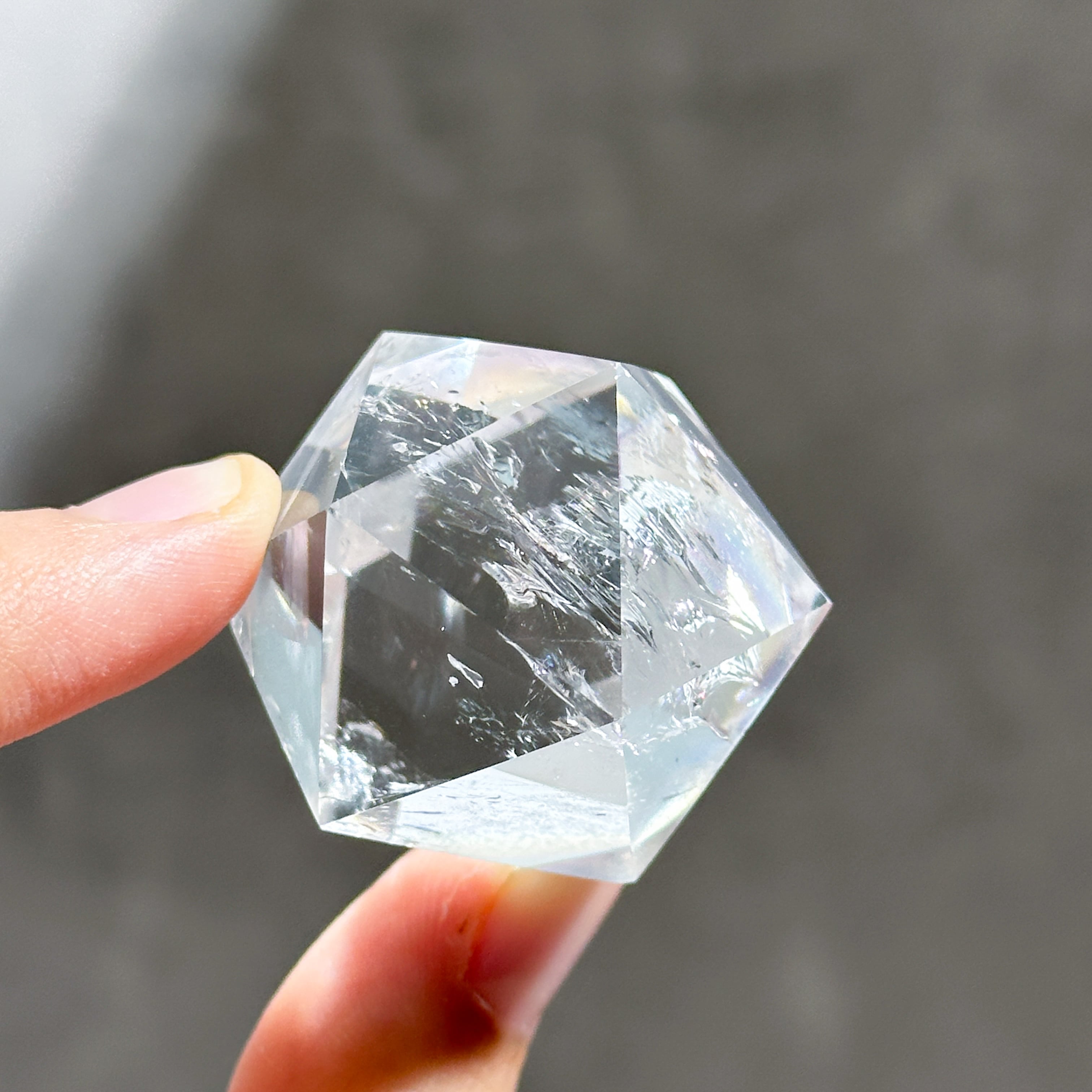 ブラジル・ミナスジェライス産のクリアクォーツを、正二十面体に研磨したものです。
