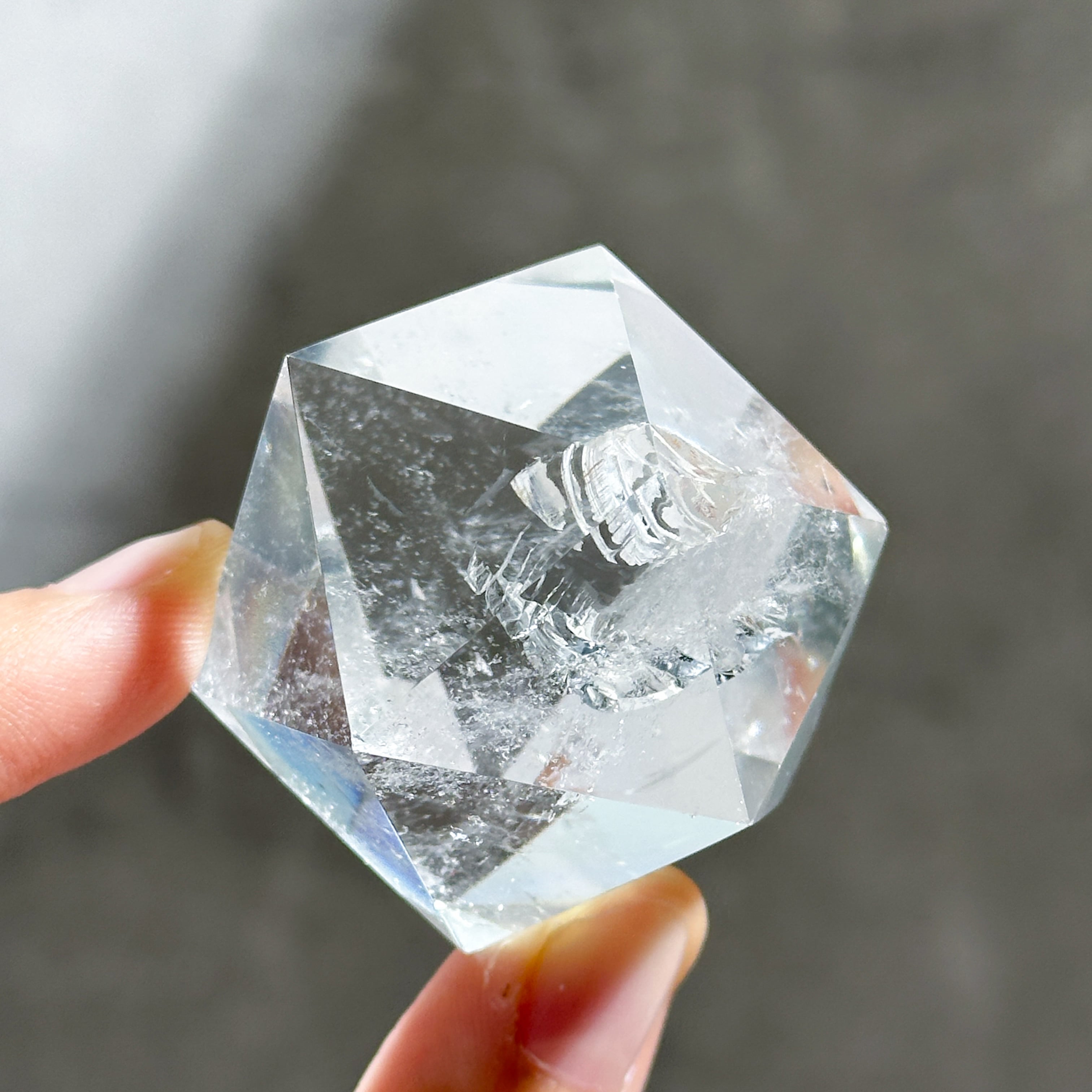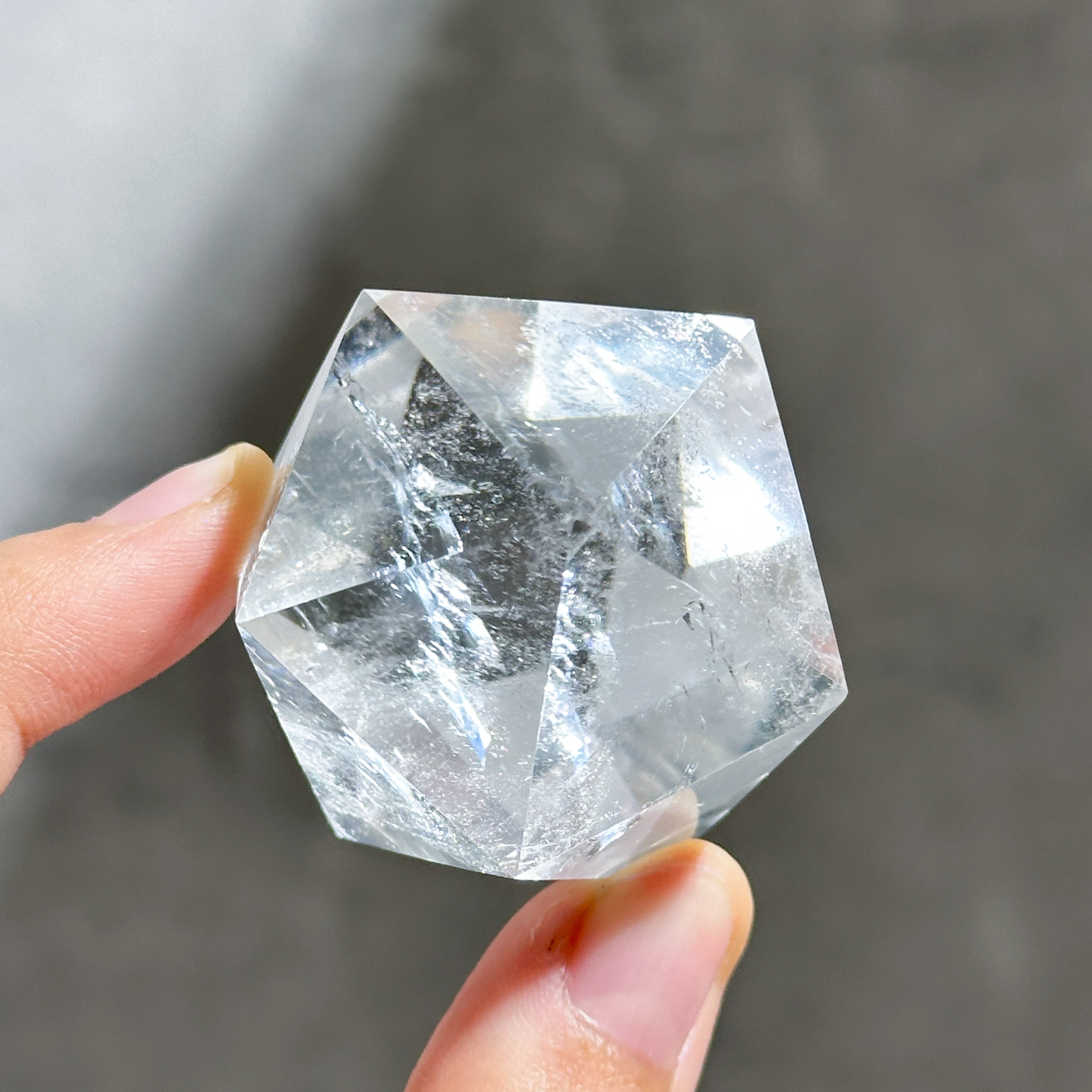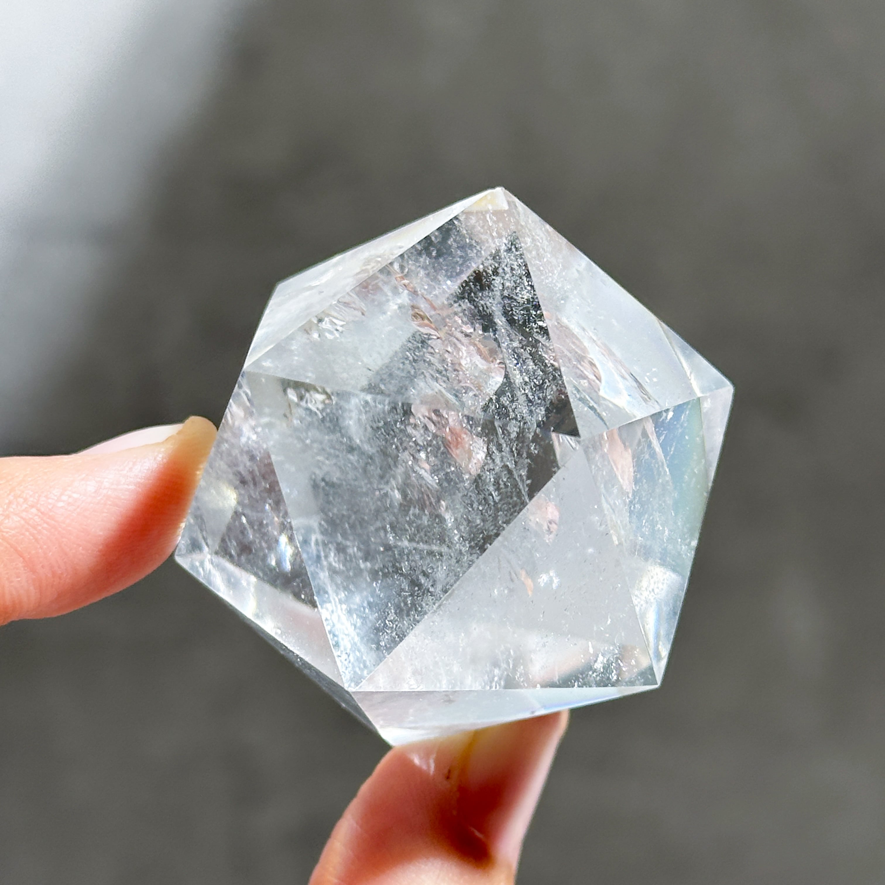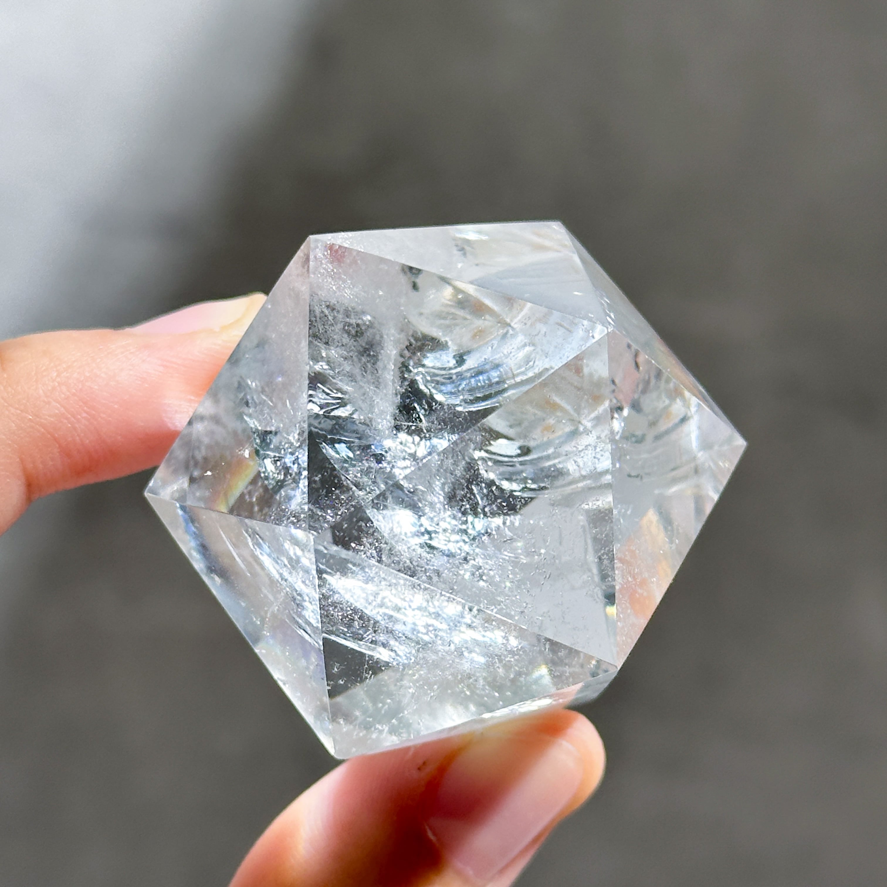 ブラジル・ミナスジェライス産のクリアクォーツを、正二十面体に研磨したものです。