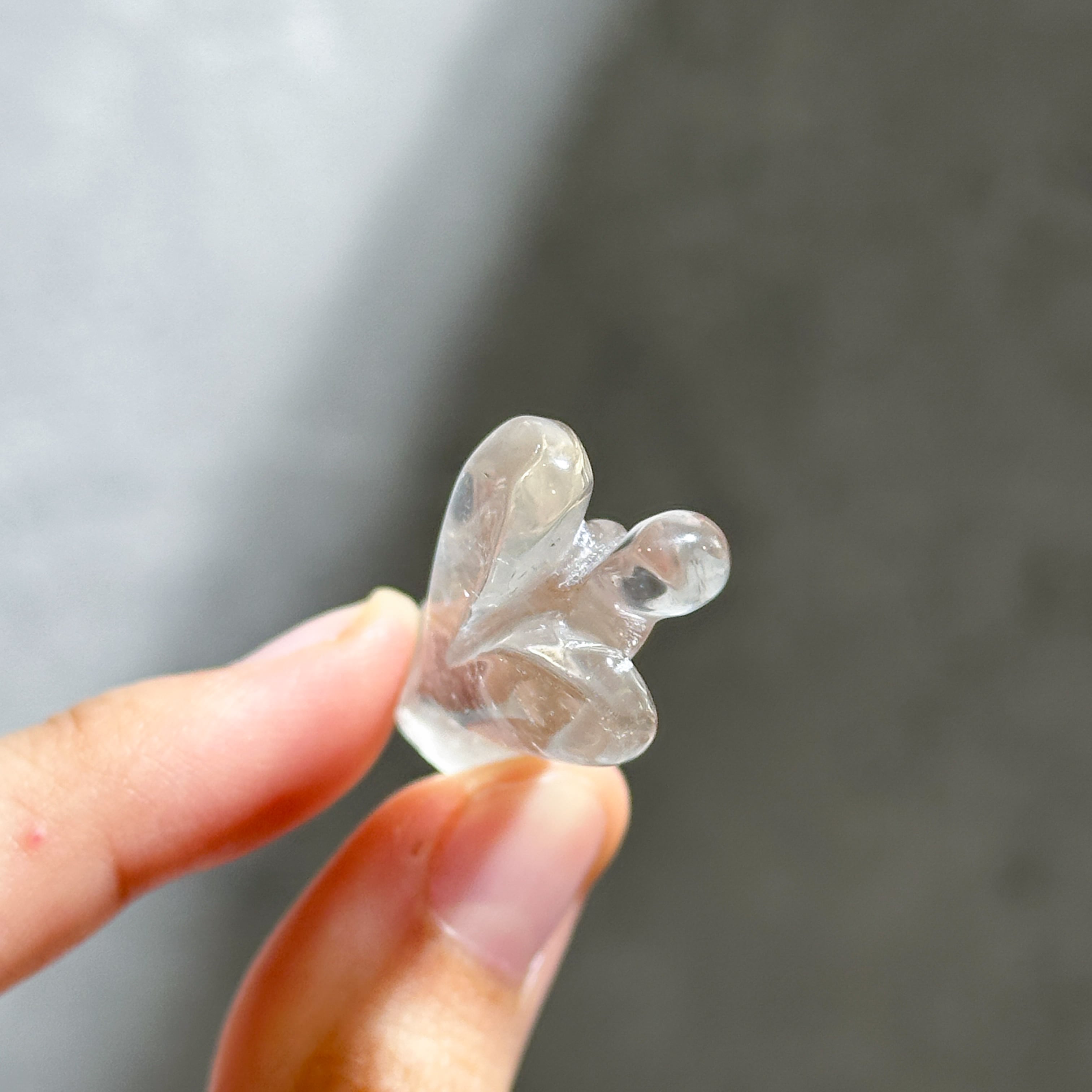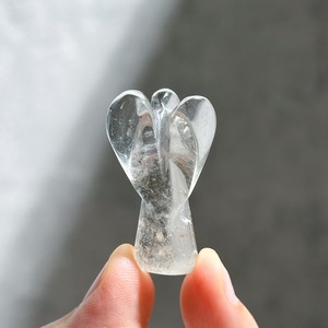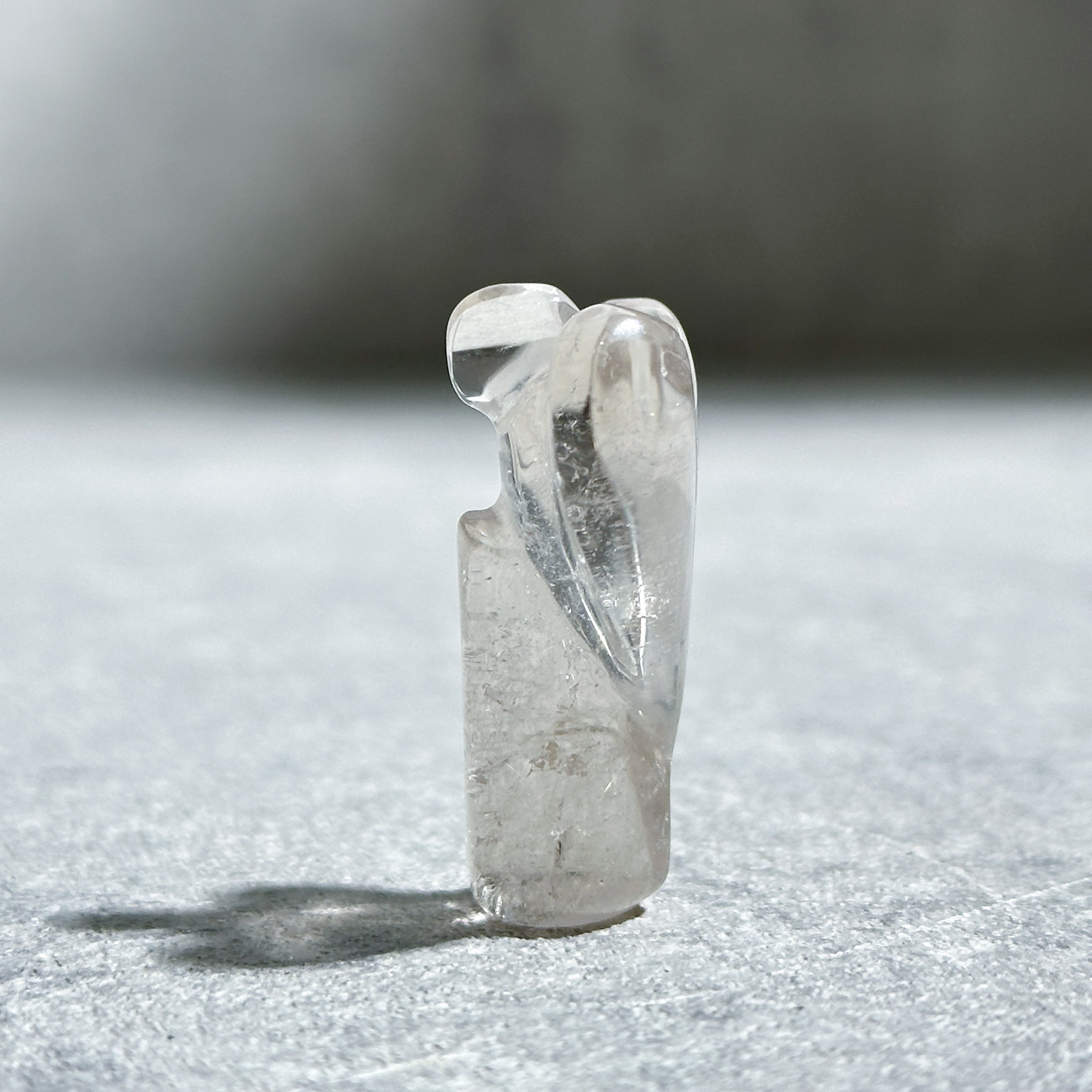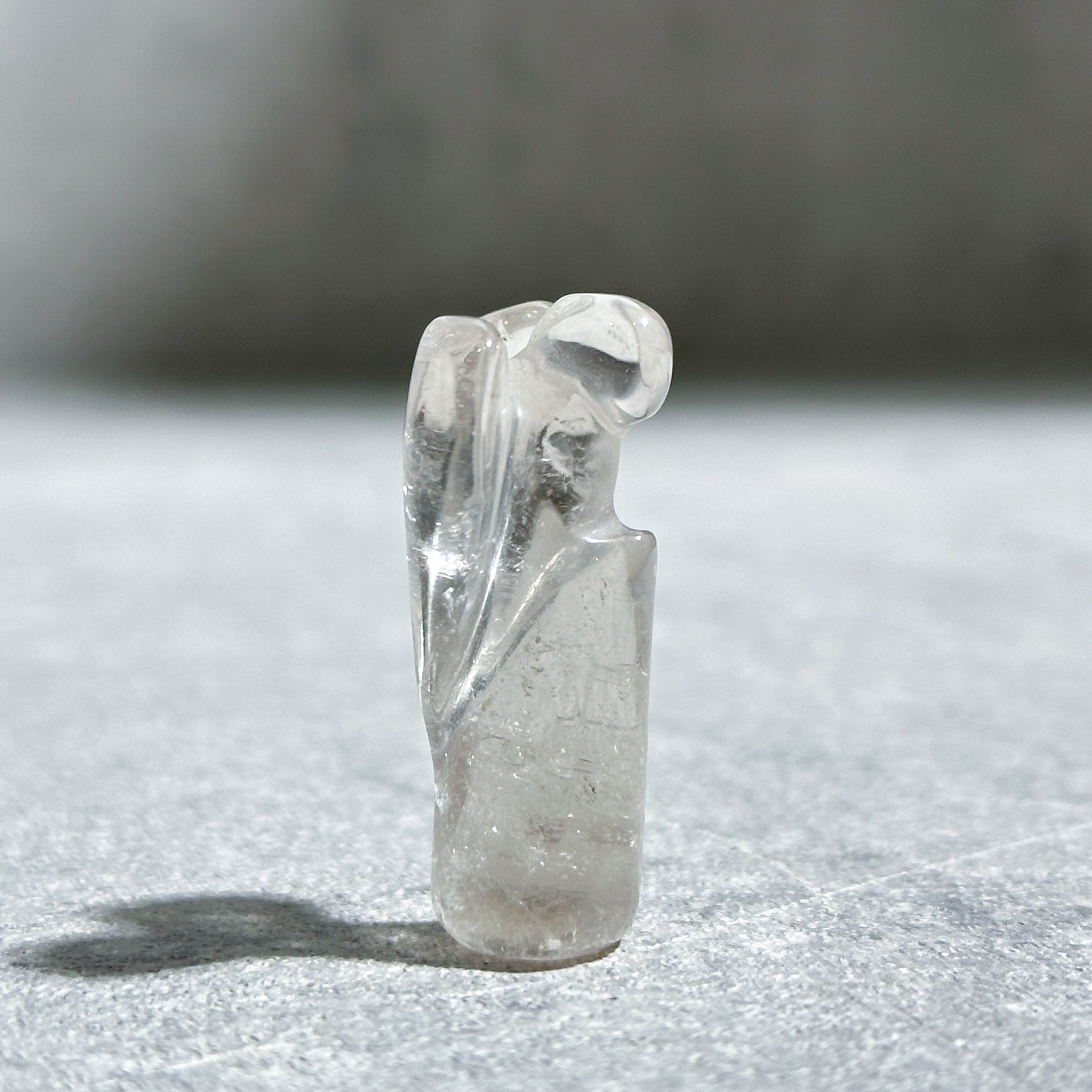 スモーキークォーツを、小さなエンジェルの形に彫刻いたしました。
