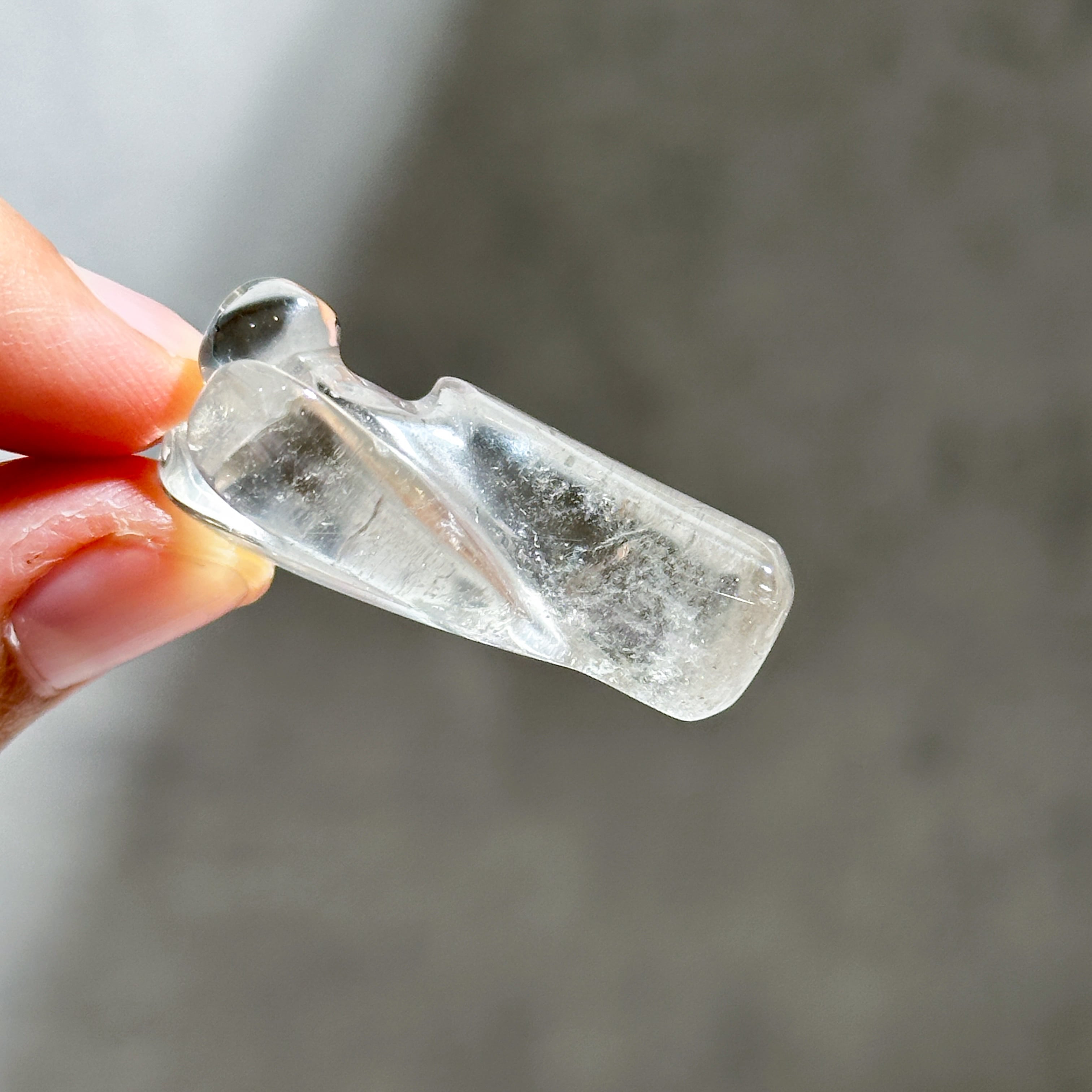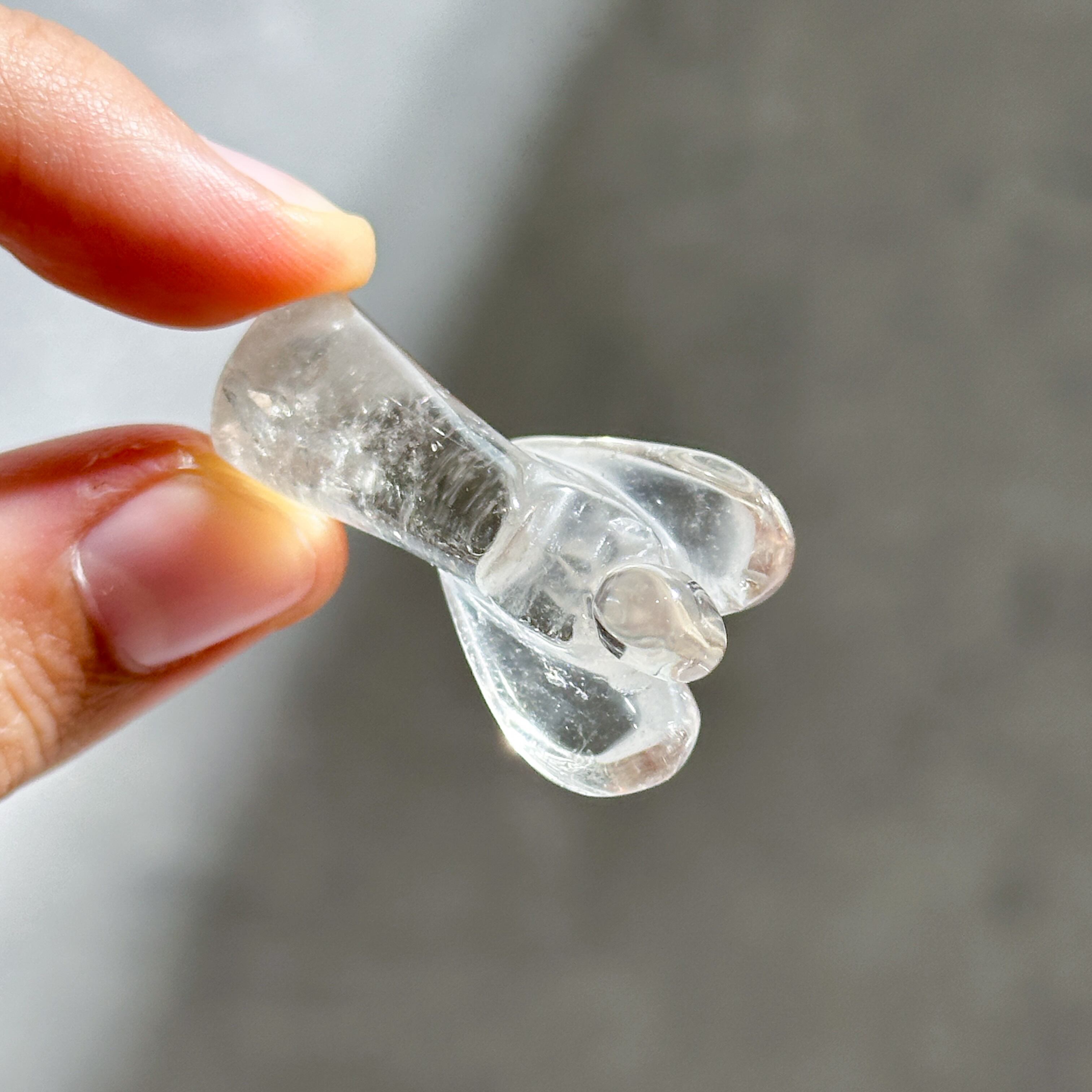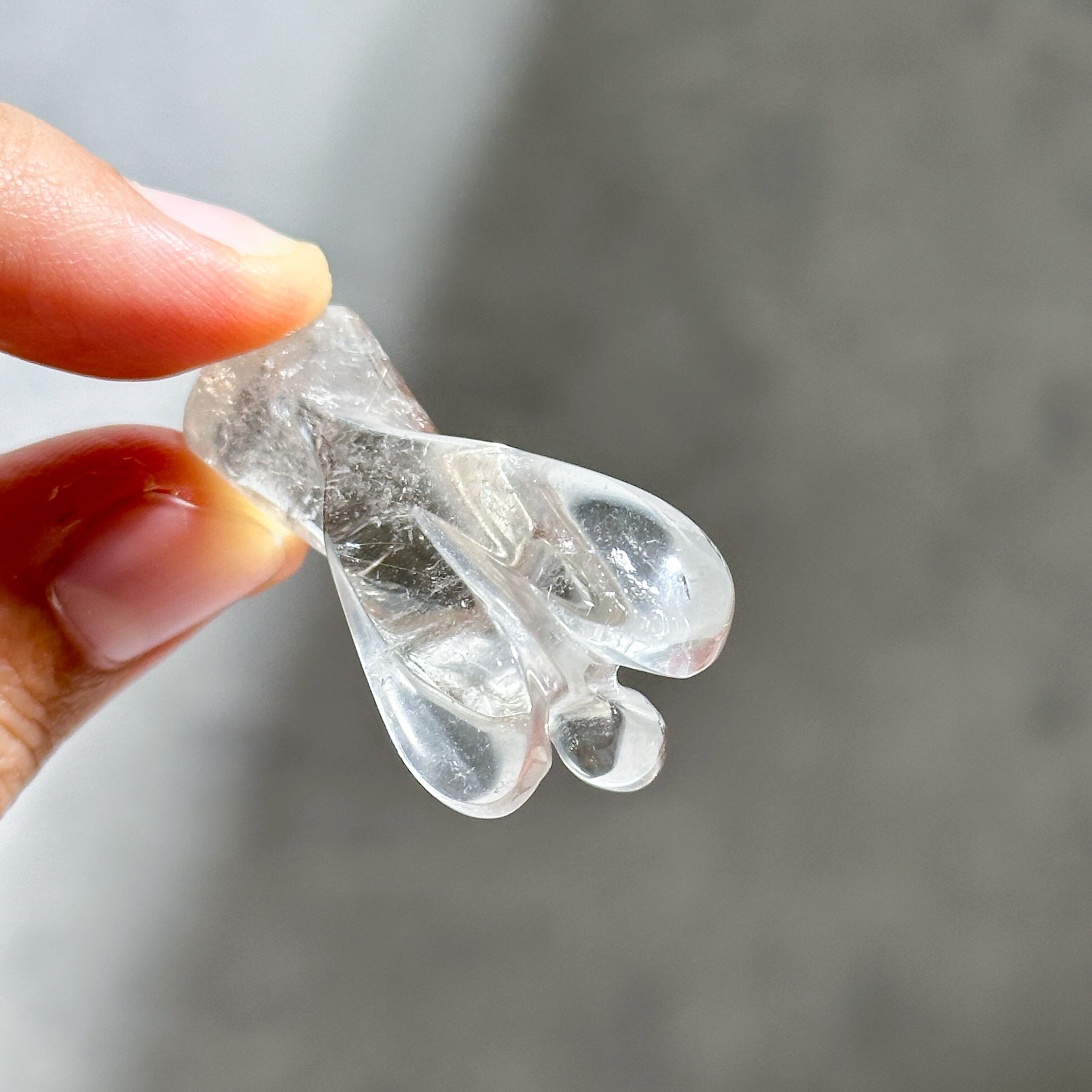 スモーキークォーツを、小さなエンジェルの形に彫刻いたしました。
