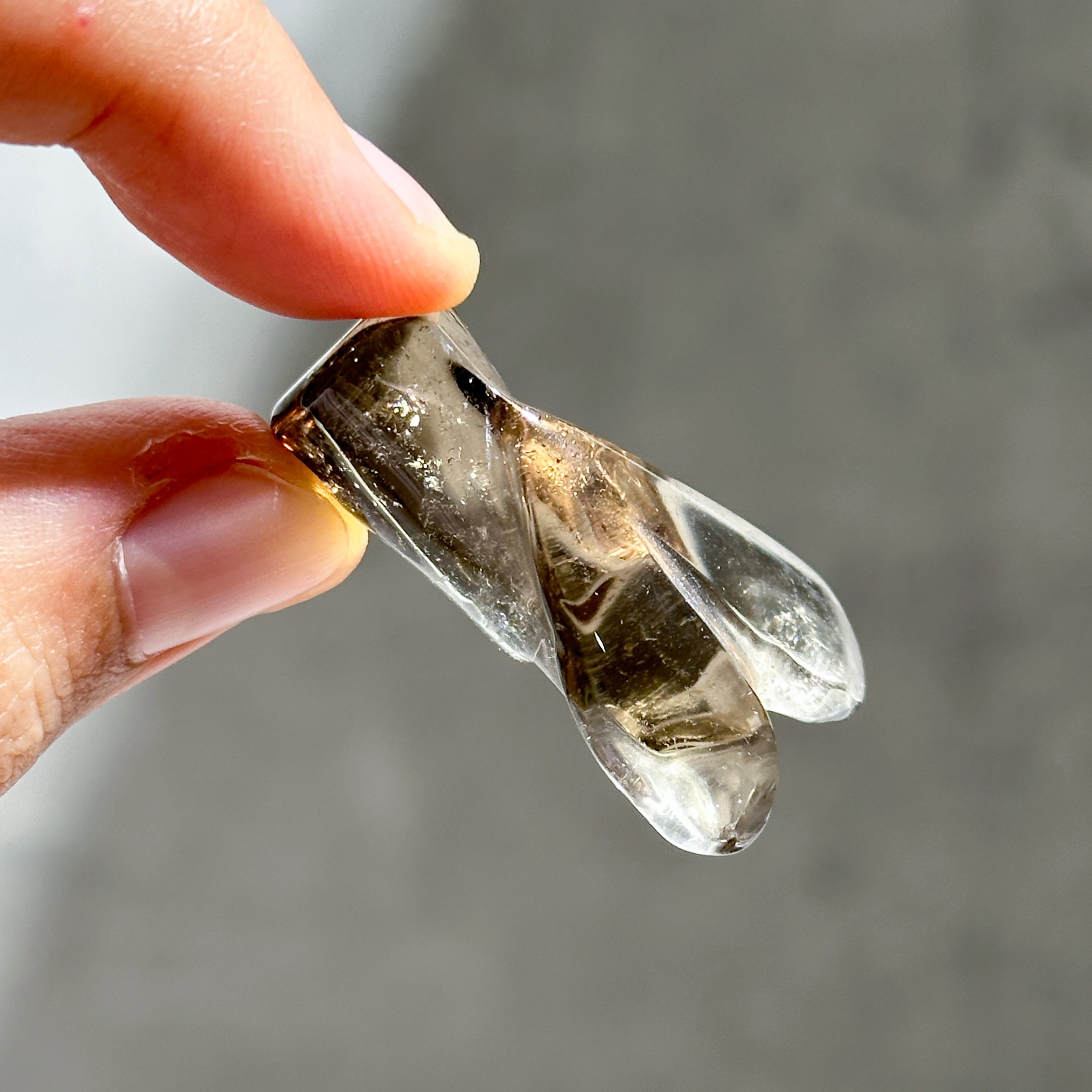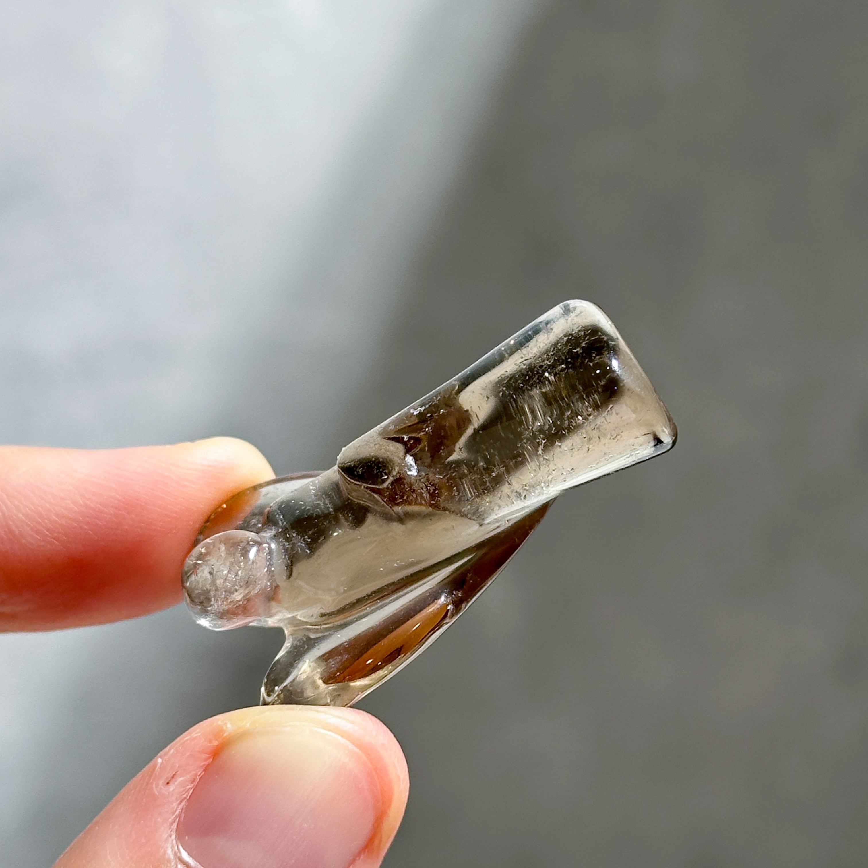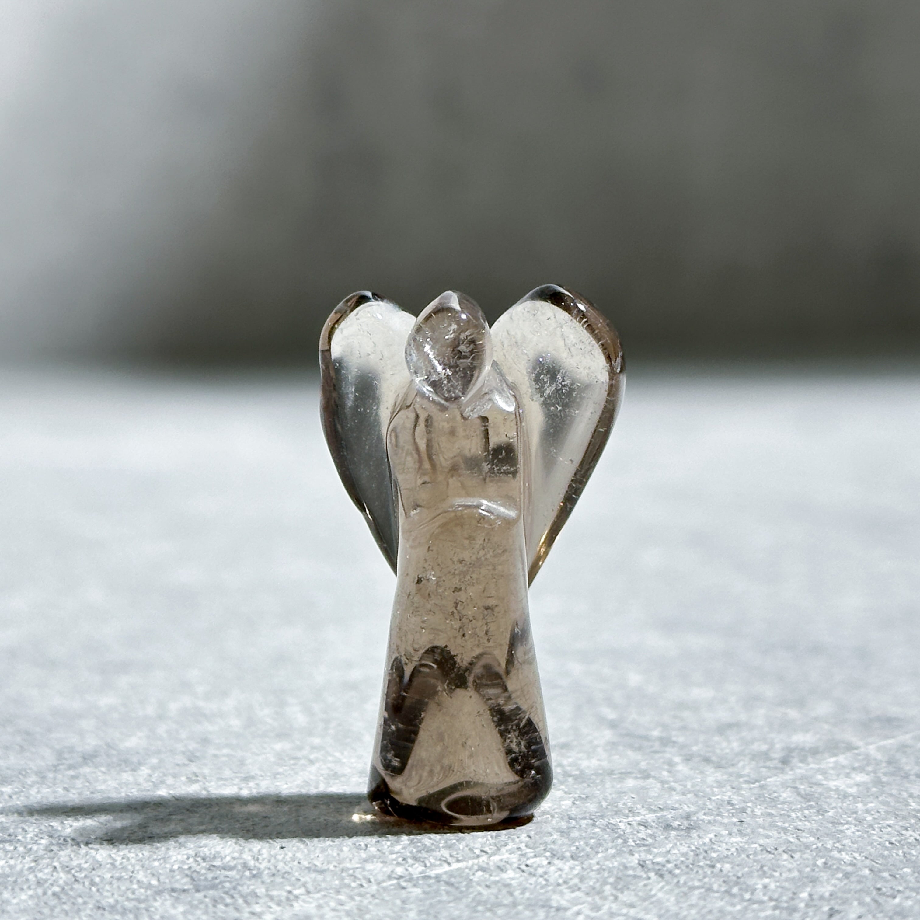 スモーキークォーツを、小さなエンジェルの形に彫刻いたしました。