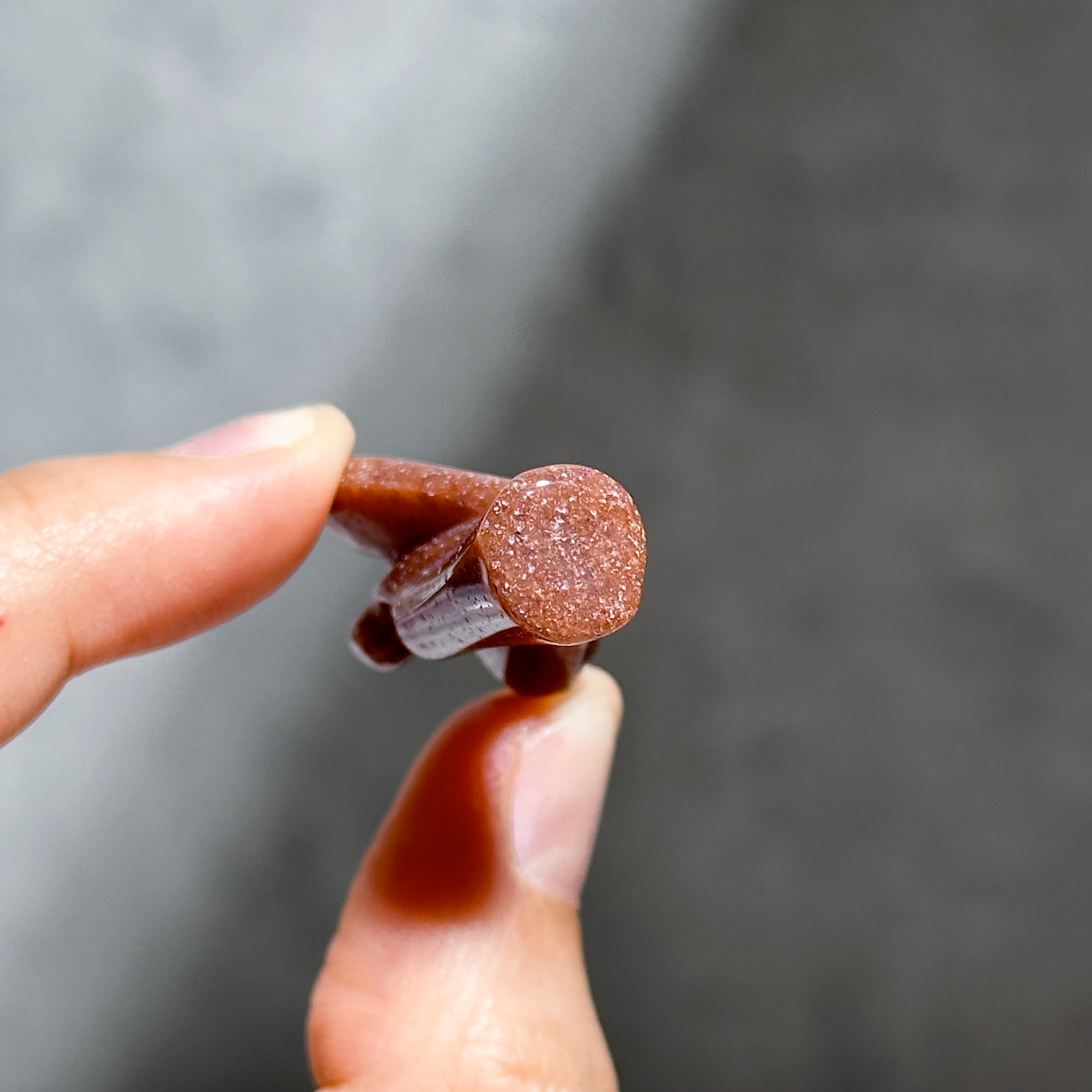 レッドアベンチュリンを、小さなエンジェルの形に彫刻いたしました。