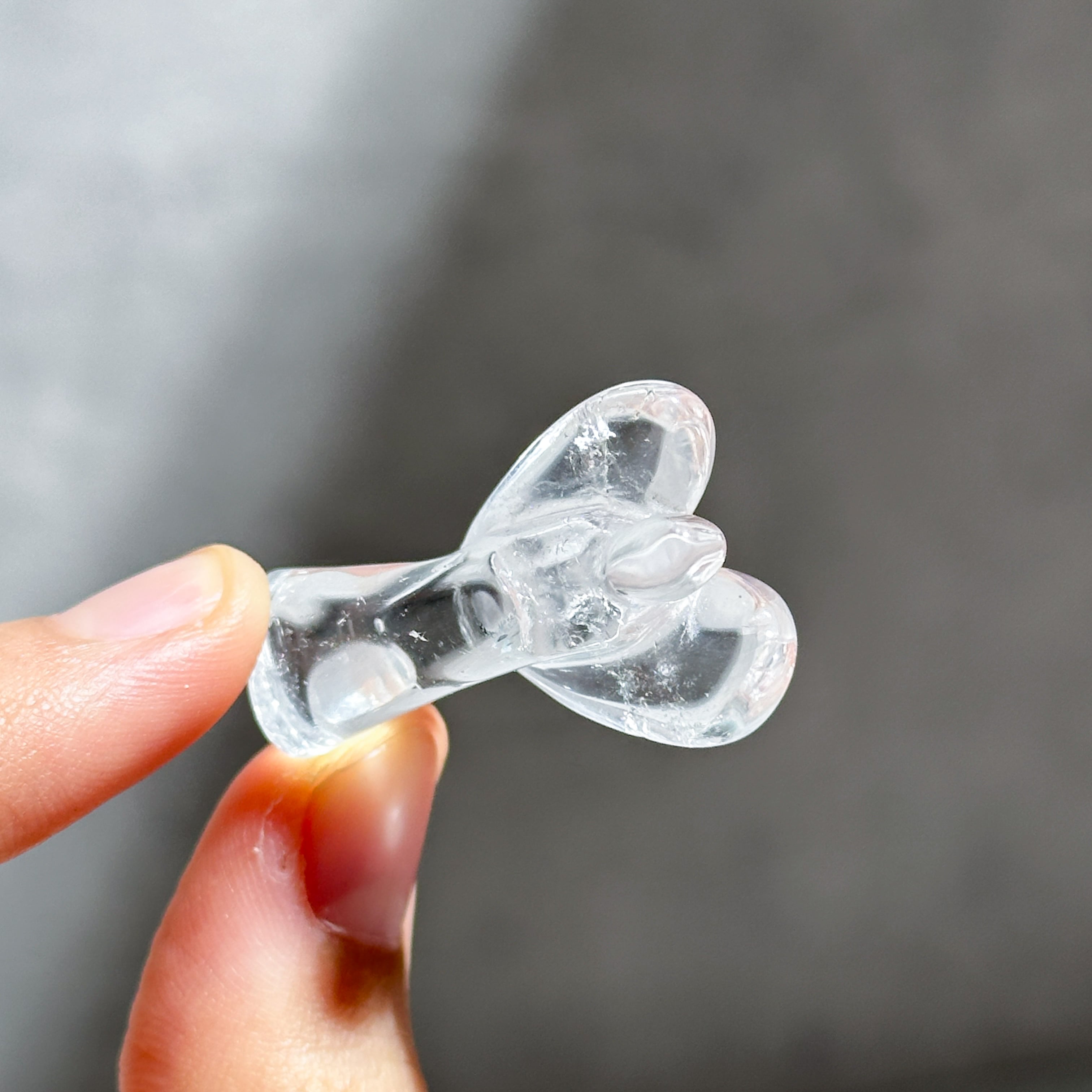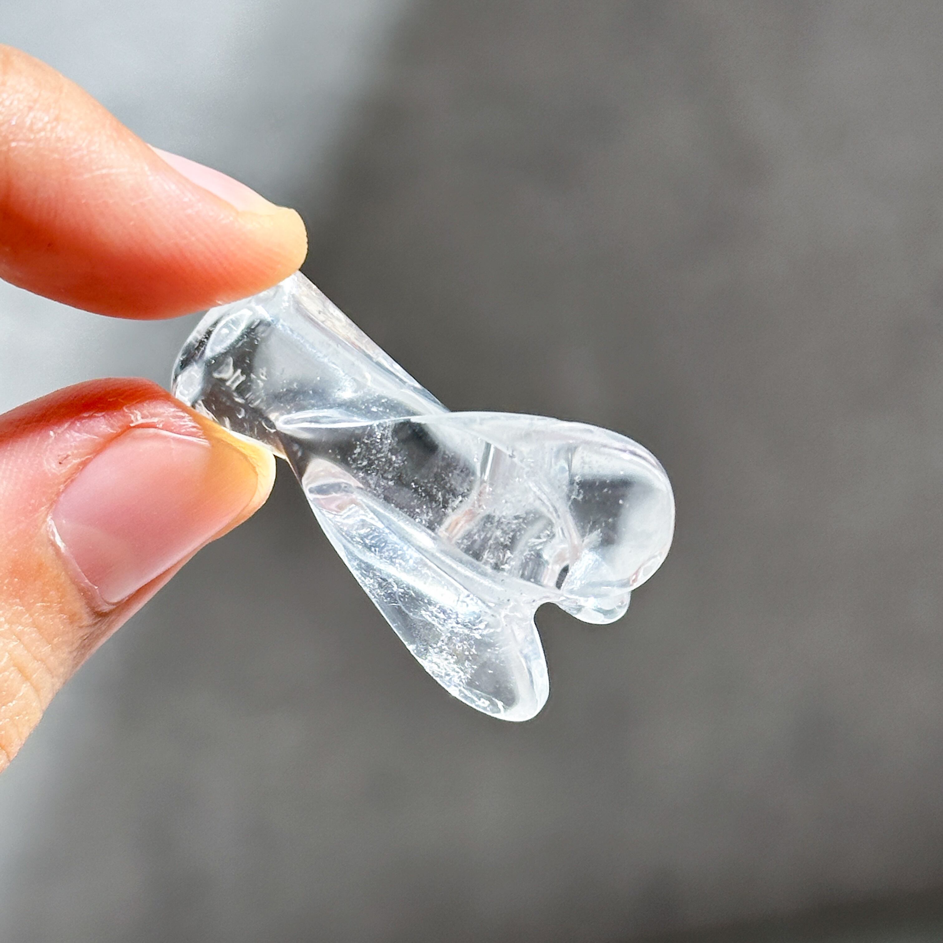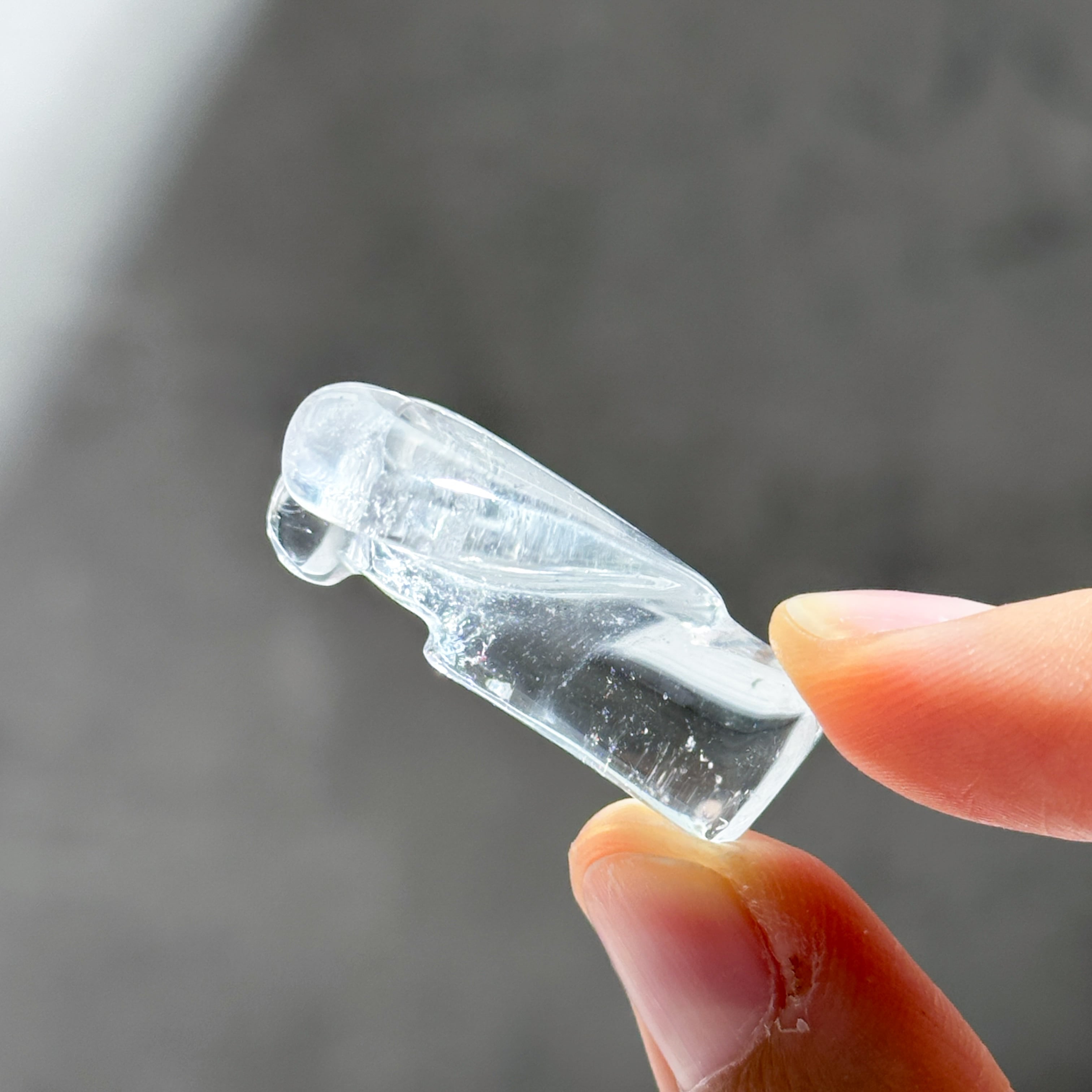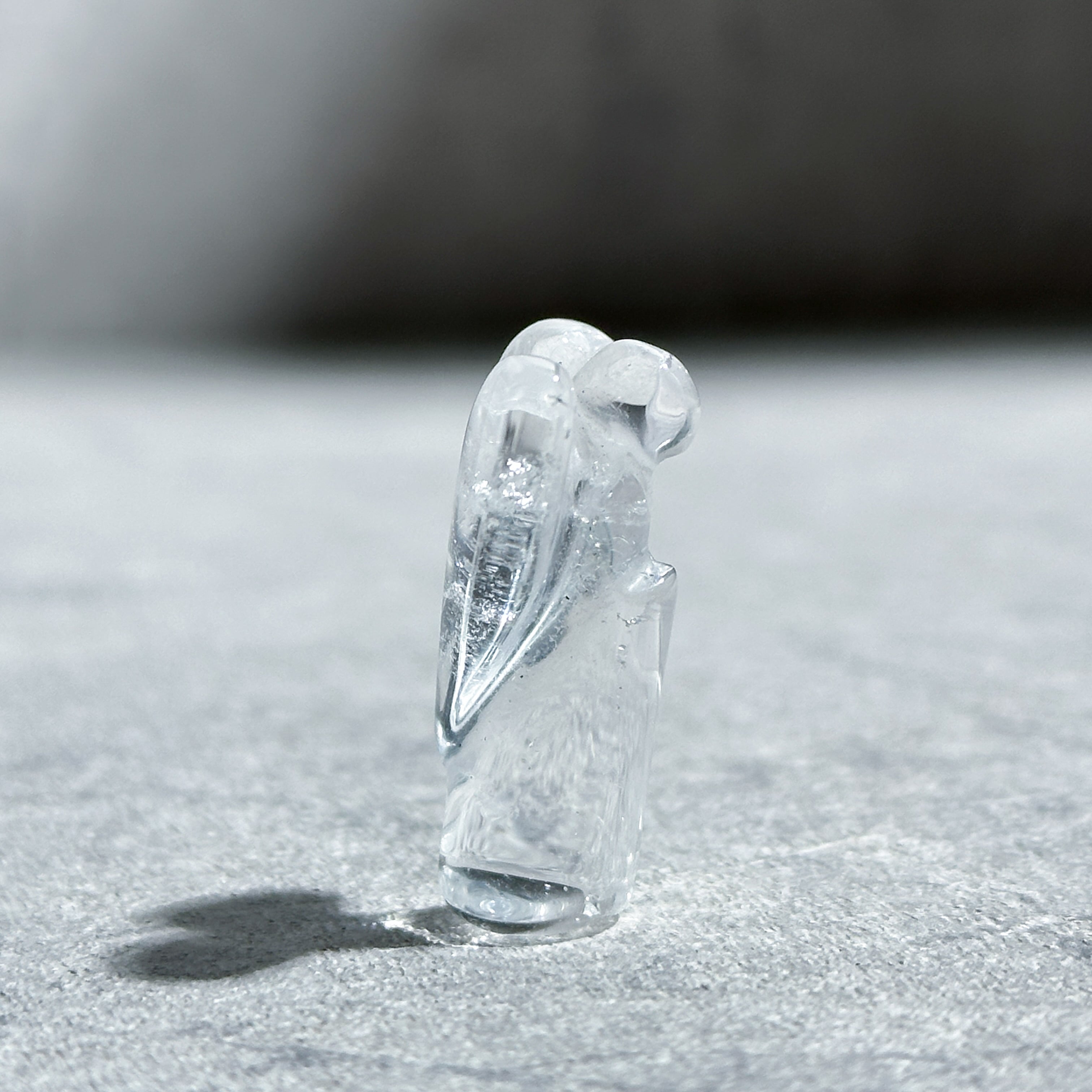 クリアクォーツを、小さなエンジェルの形に彫刻いたしました。