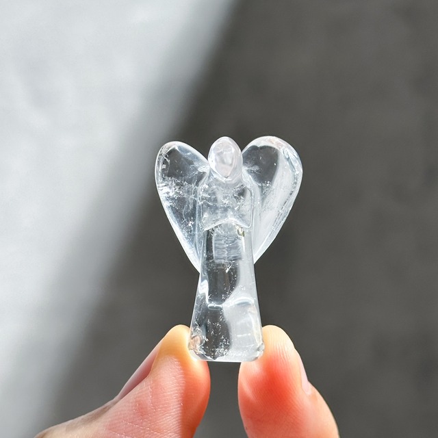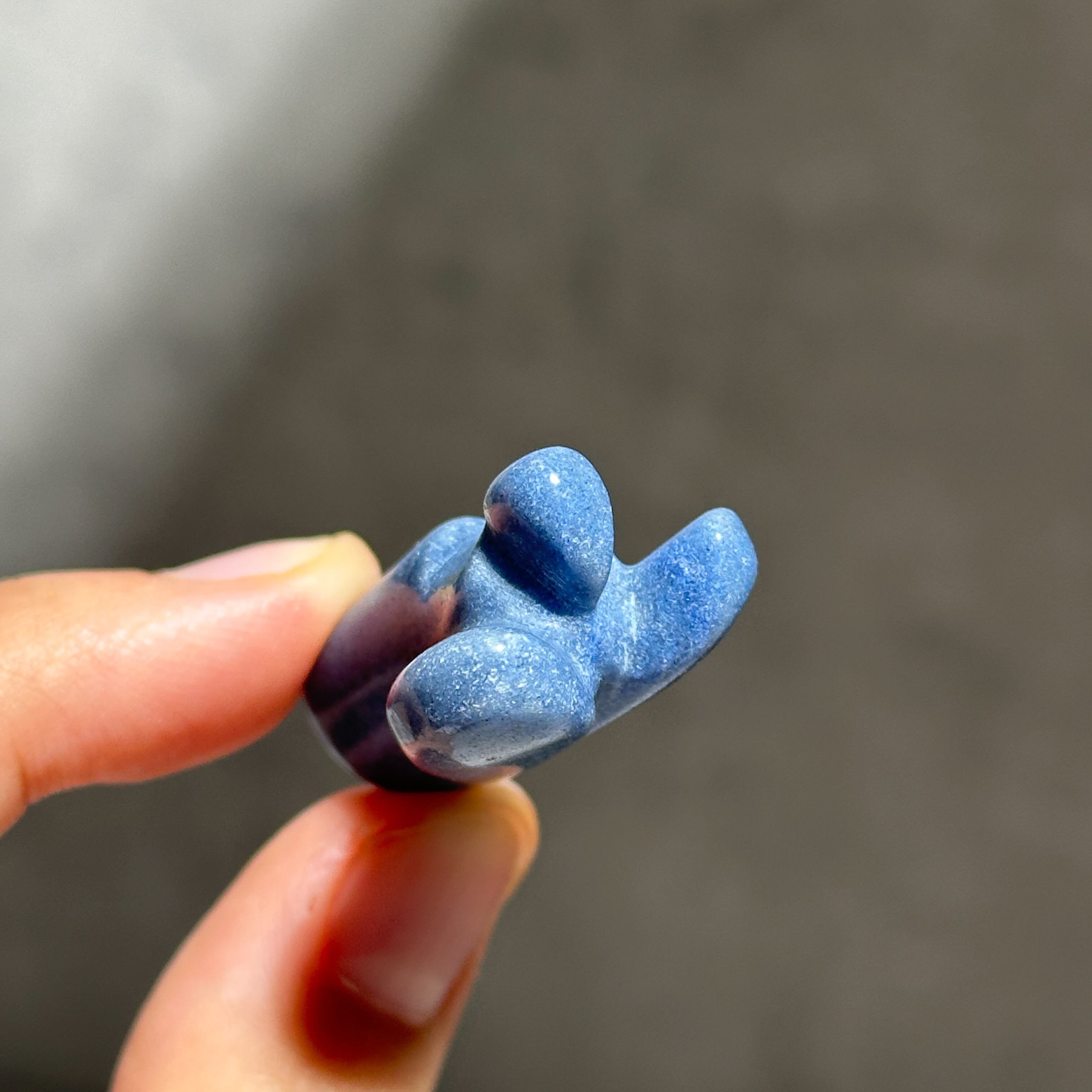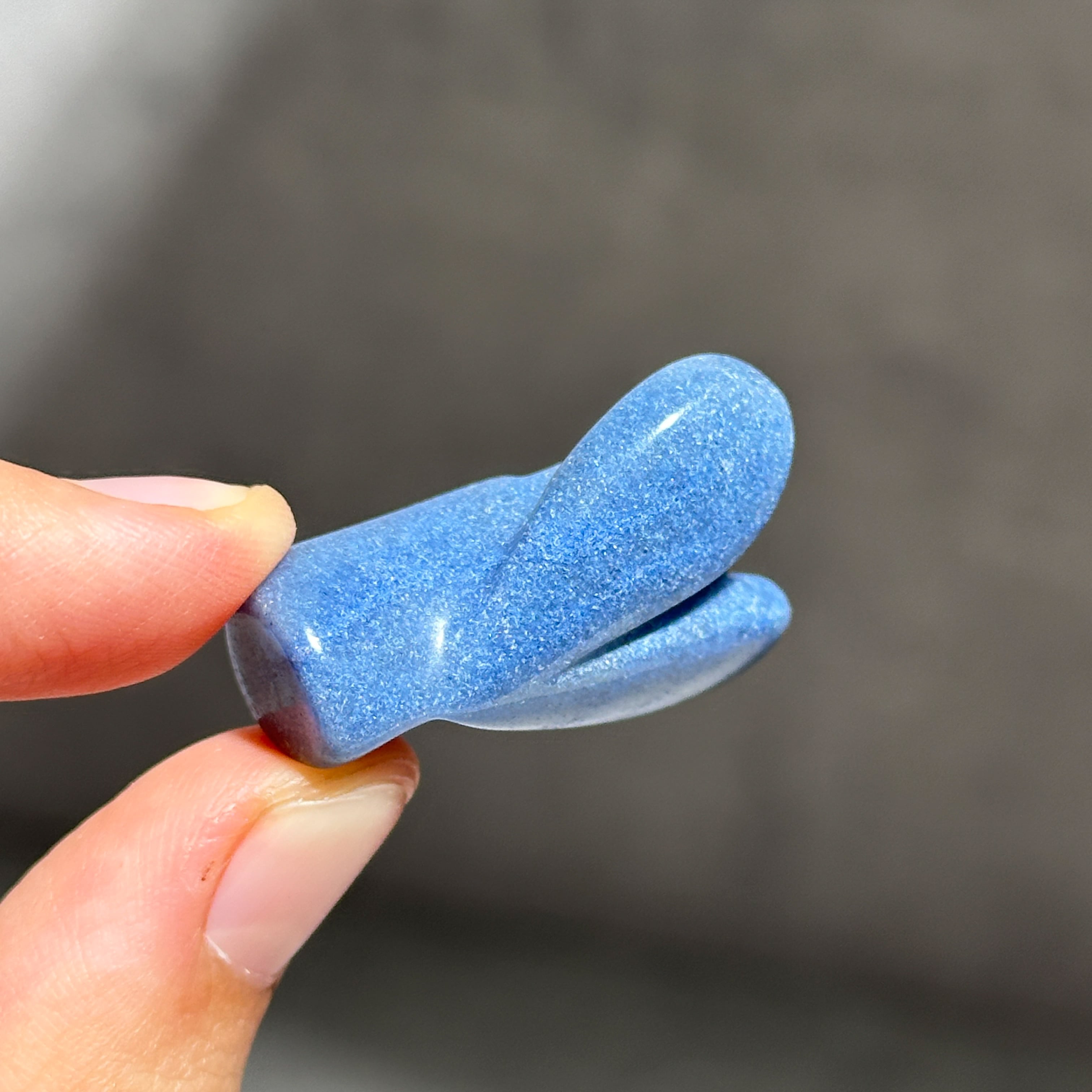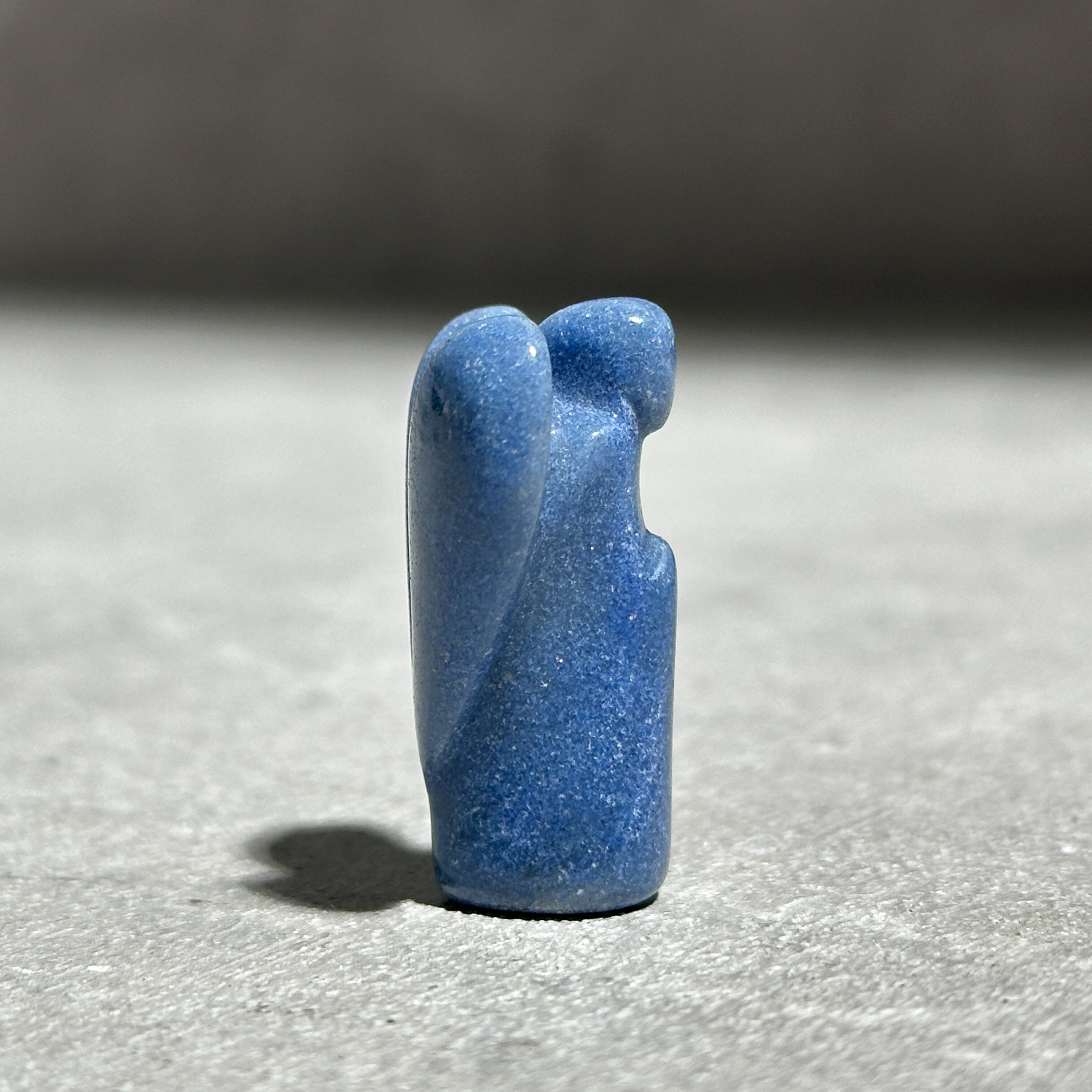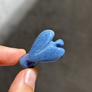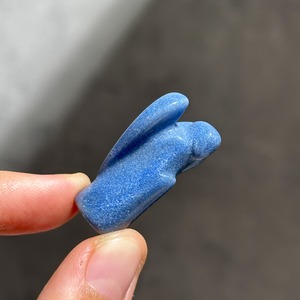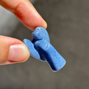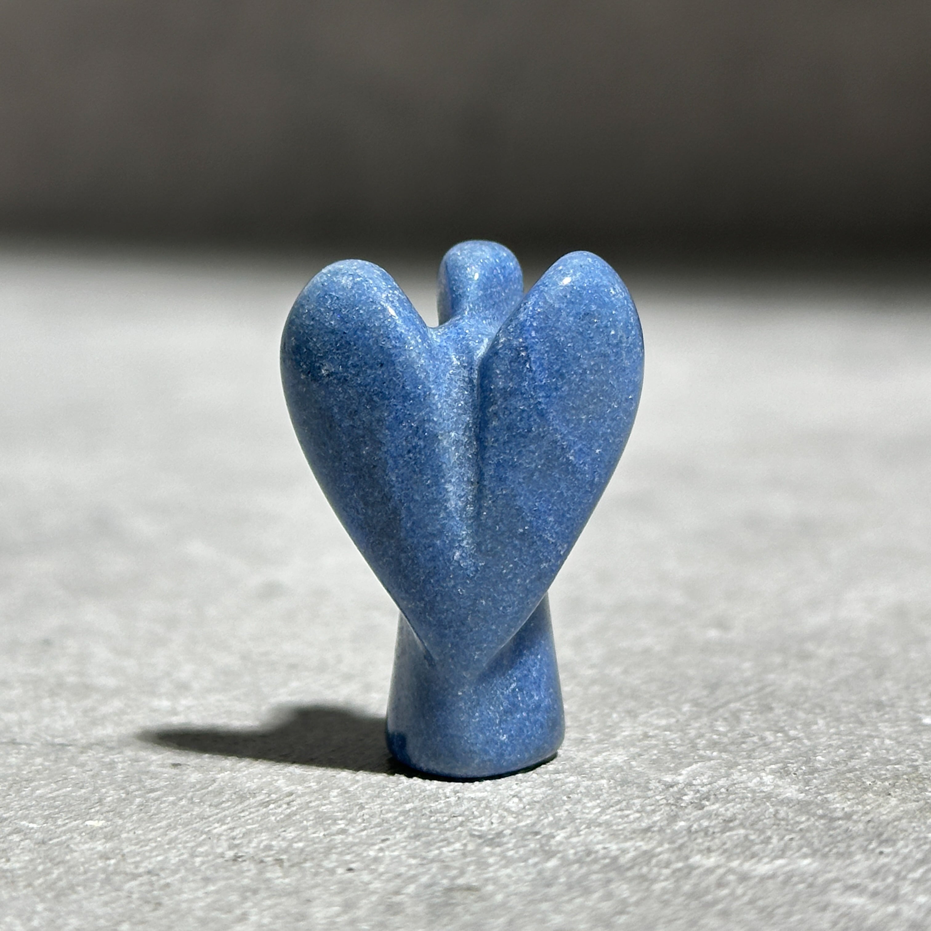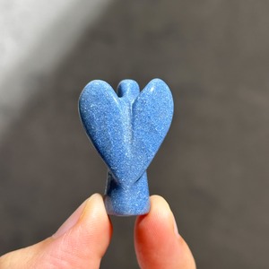 ブルーアベンチュリンを、小さなエンジェルの形に彫刻いたしました。