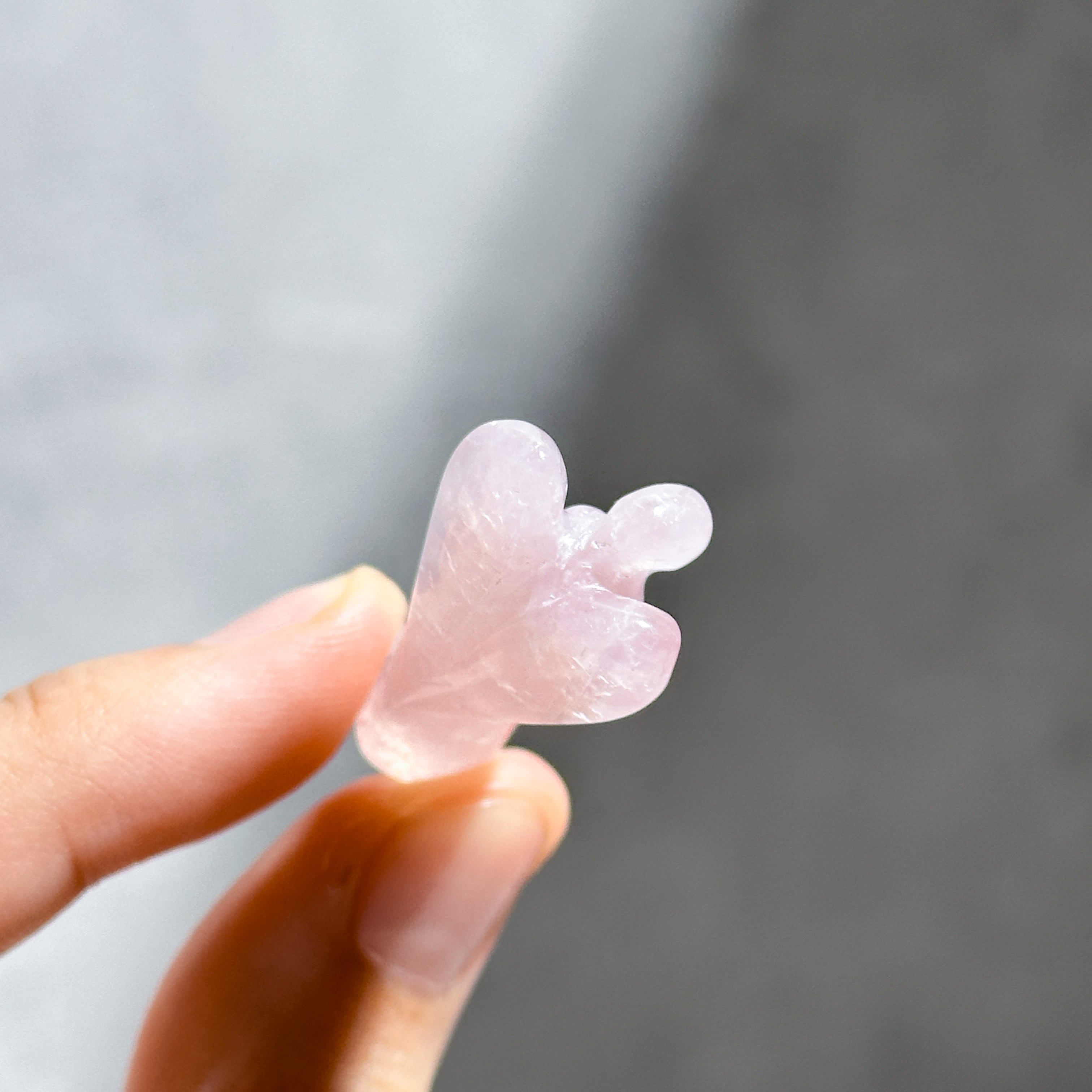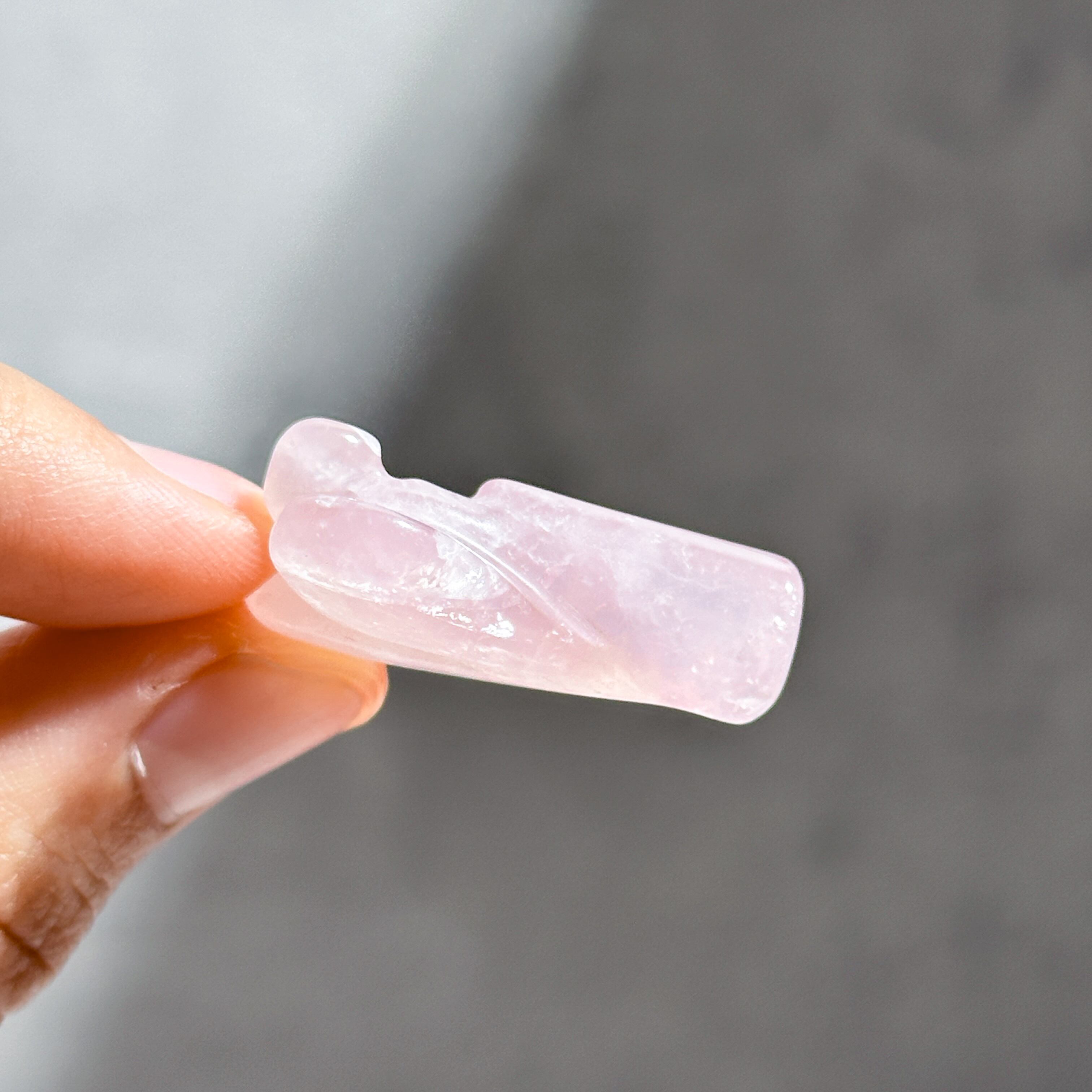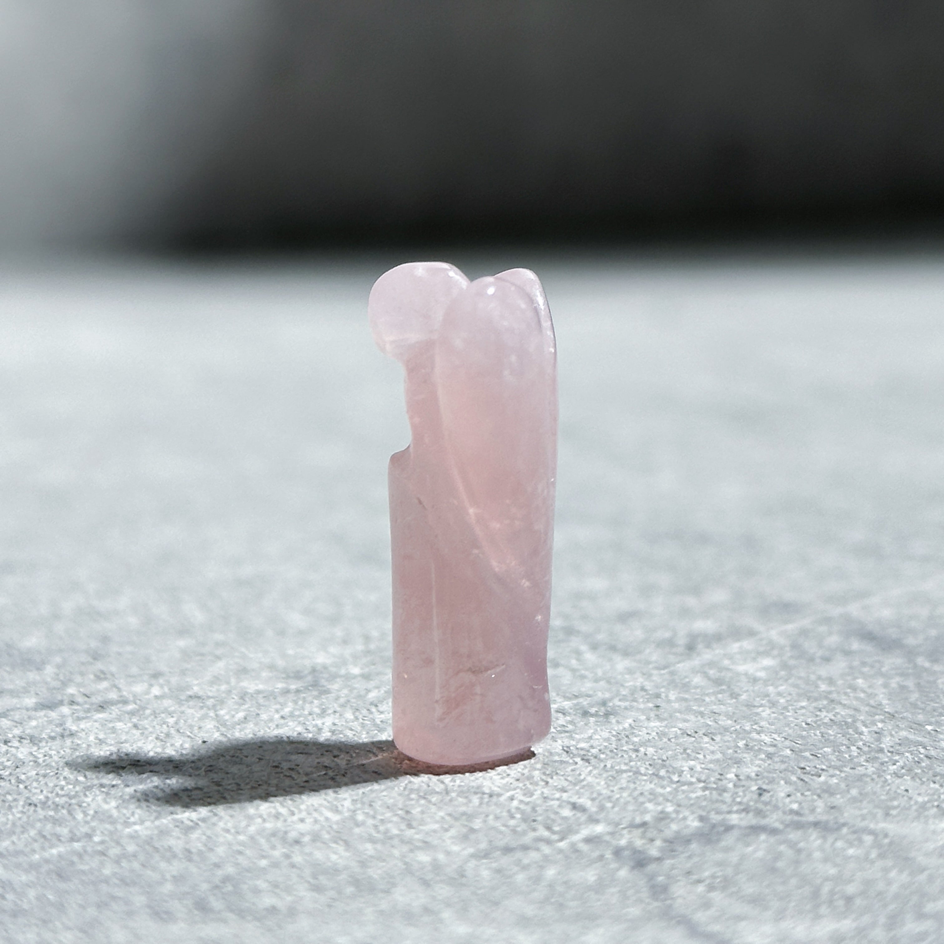 ローズクォーツを、小さなエンジェルの形に彫刻いたしました。
