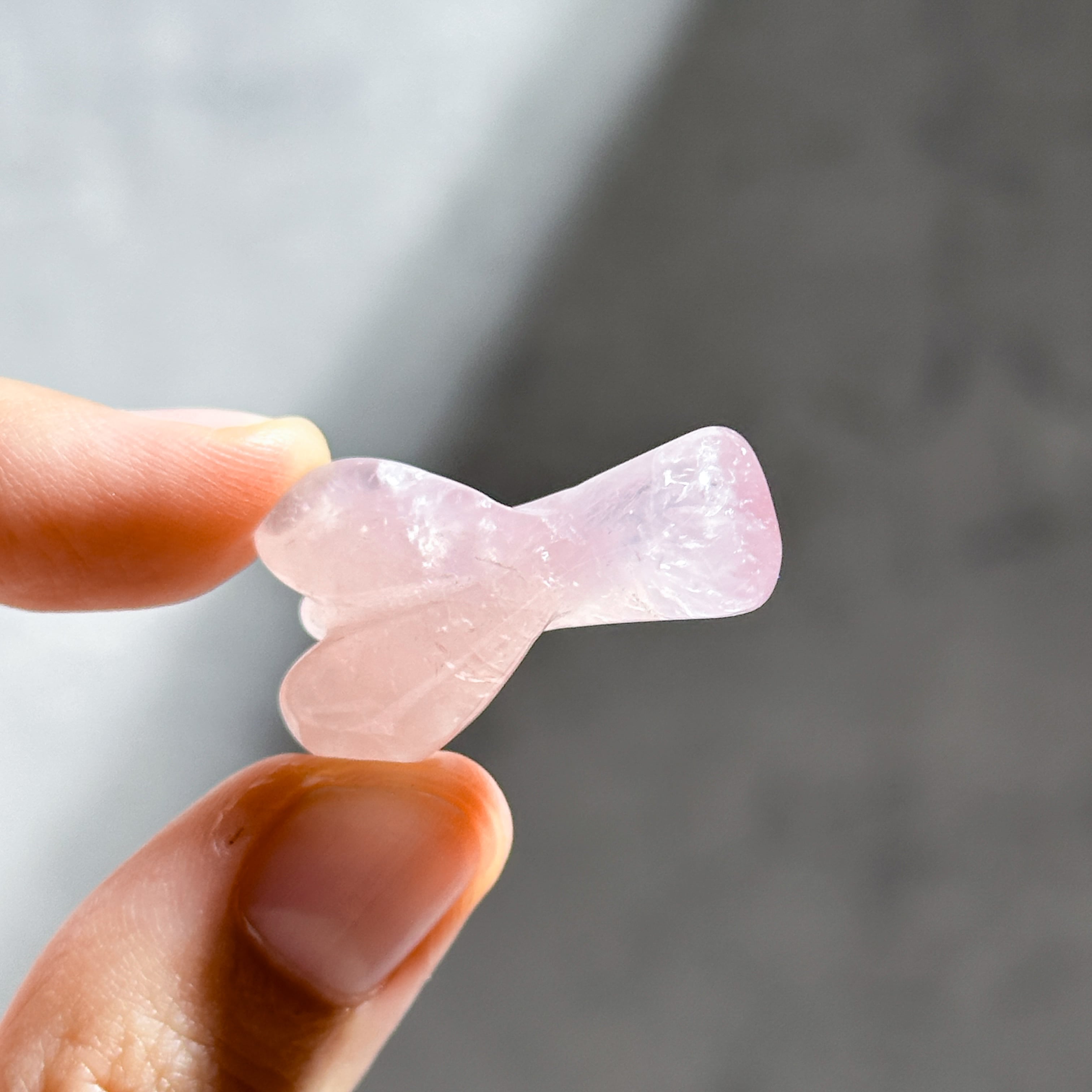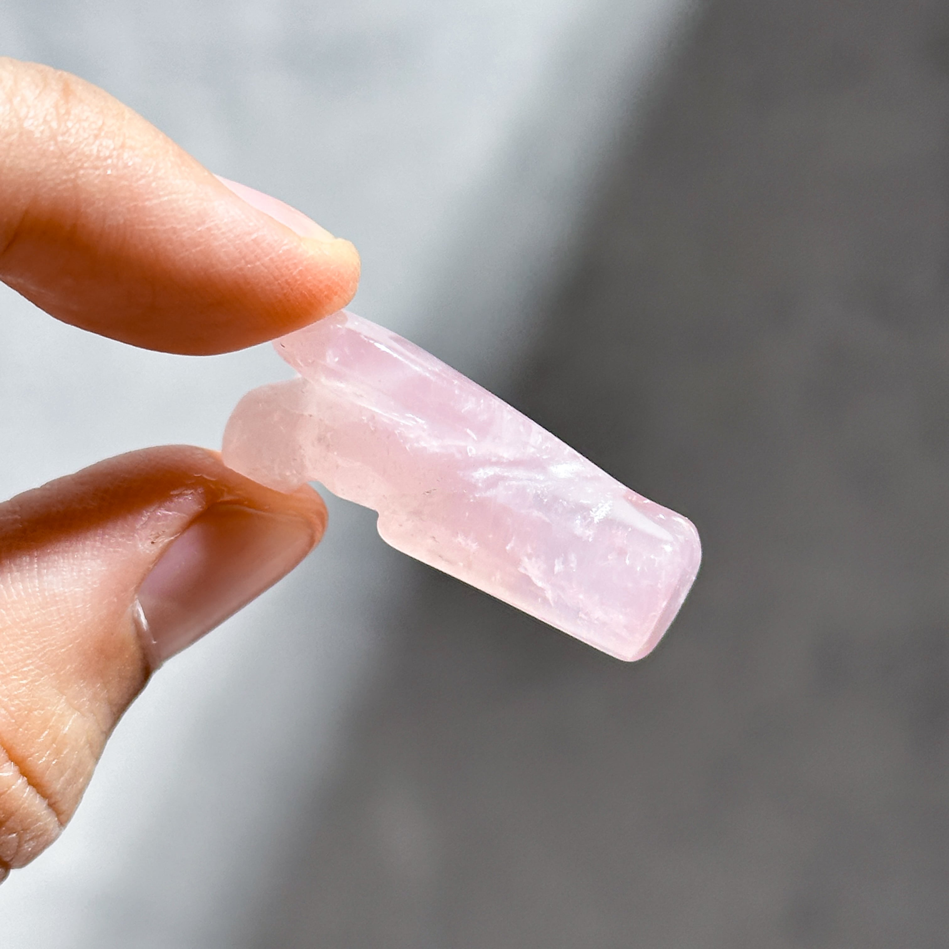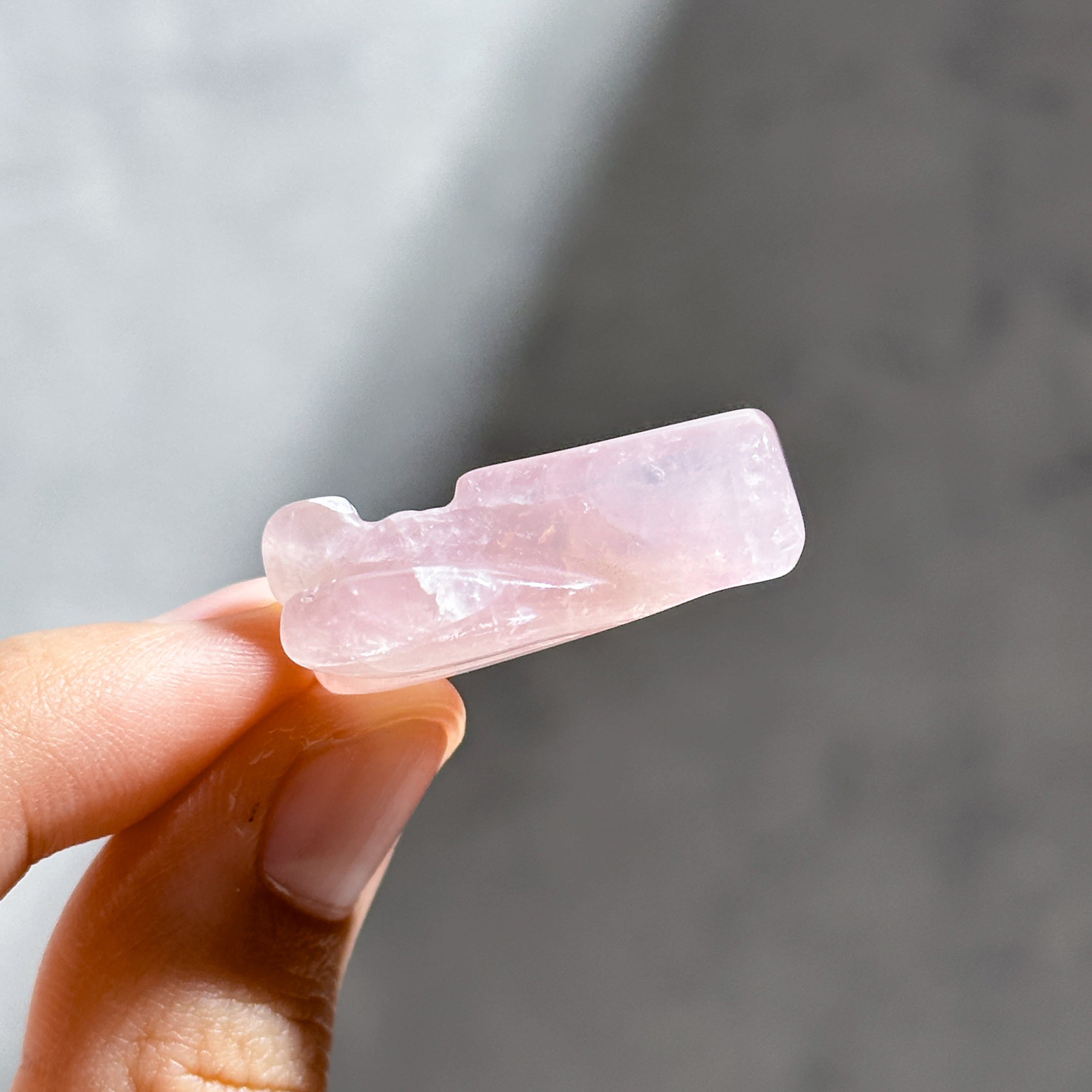 ローズクォーツを、小さなエンジェルの形に彫刻いたしました。