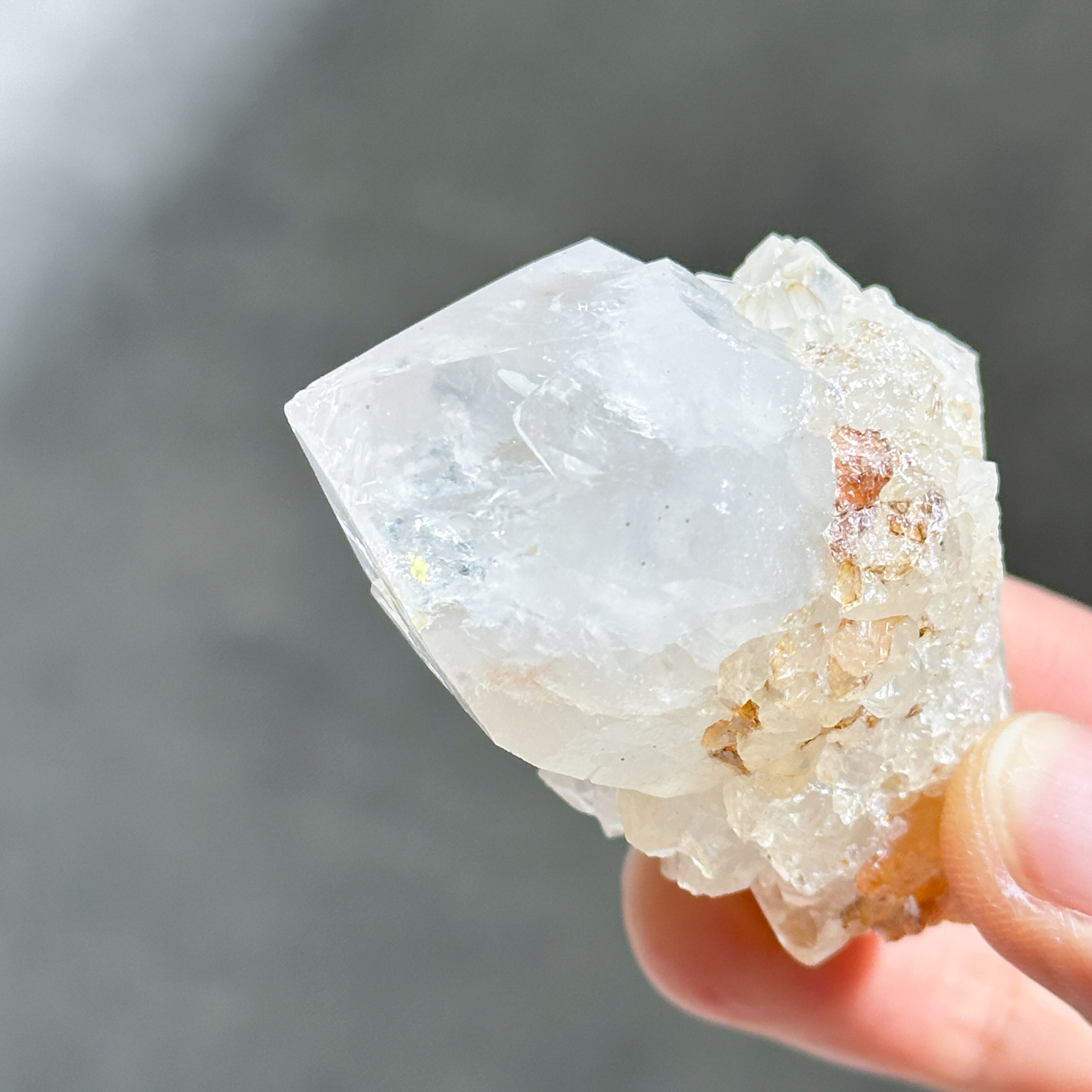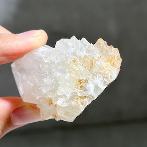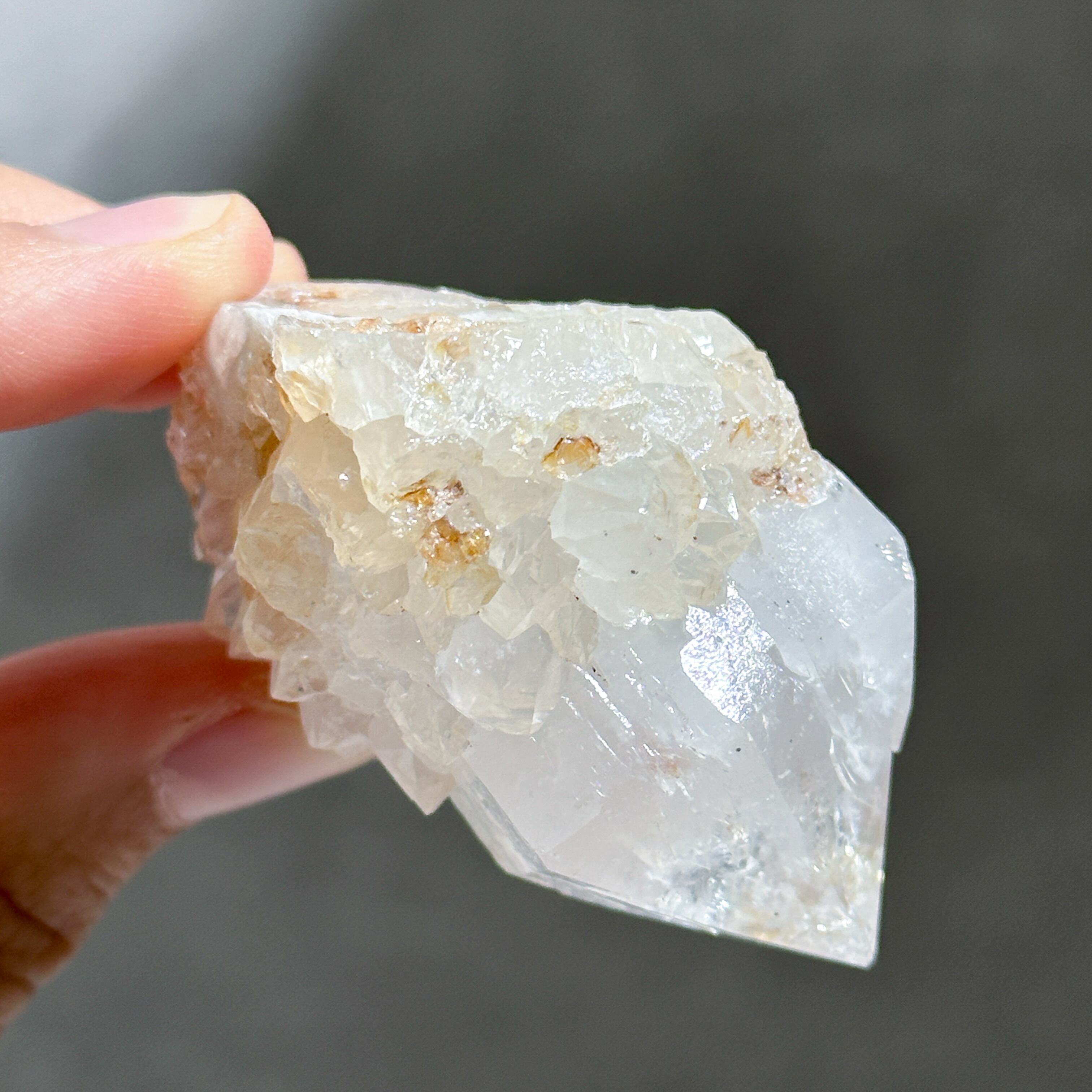 天然石の色は内包される鉱物やその量によって変化するため、ホワイトスピリットクォーツは鉄分などの含有量が少なくこのような淡い色味をしていると考えられます。