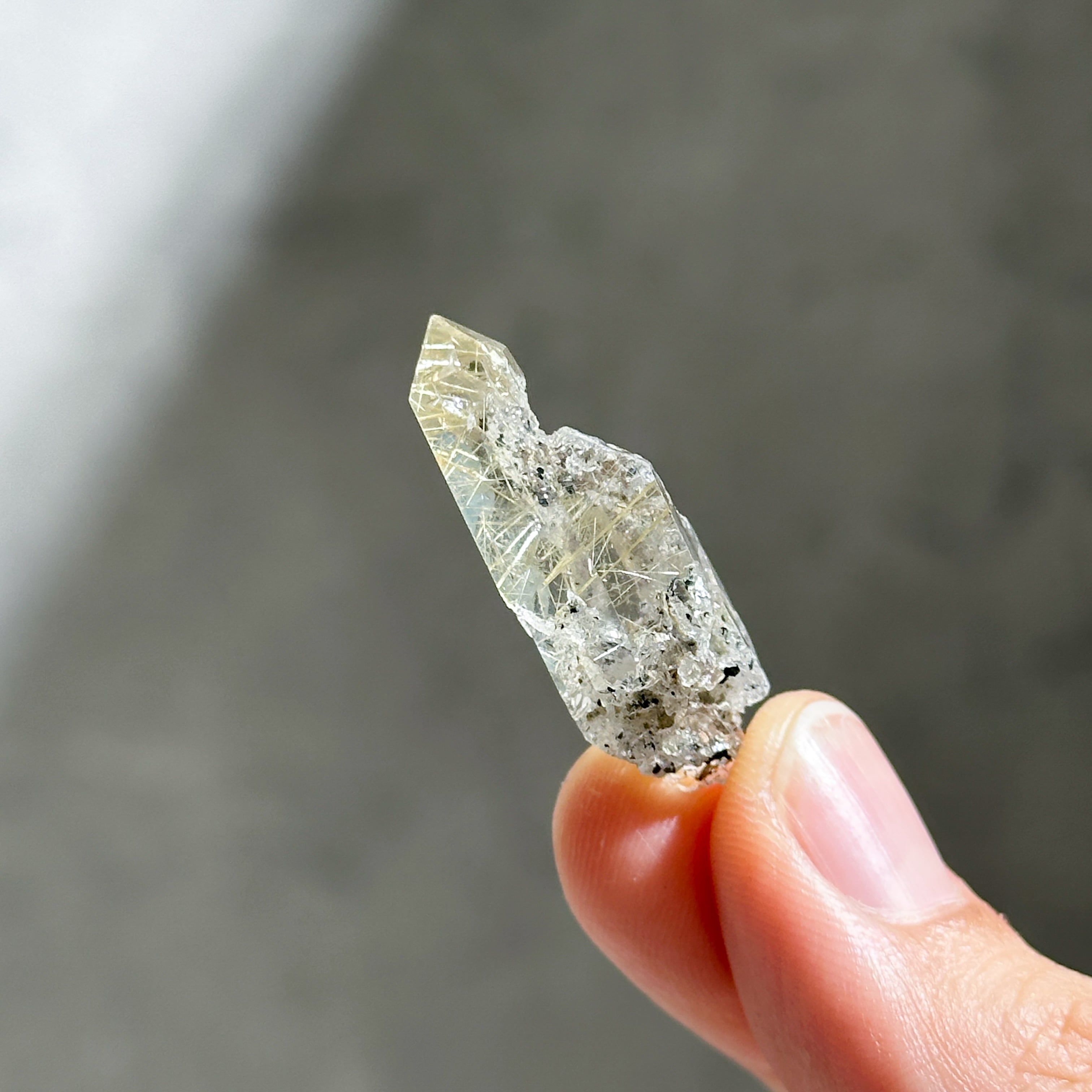 ルチルは針金のような鉱石で、水晶の中に内包する形で見つけられます。