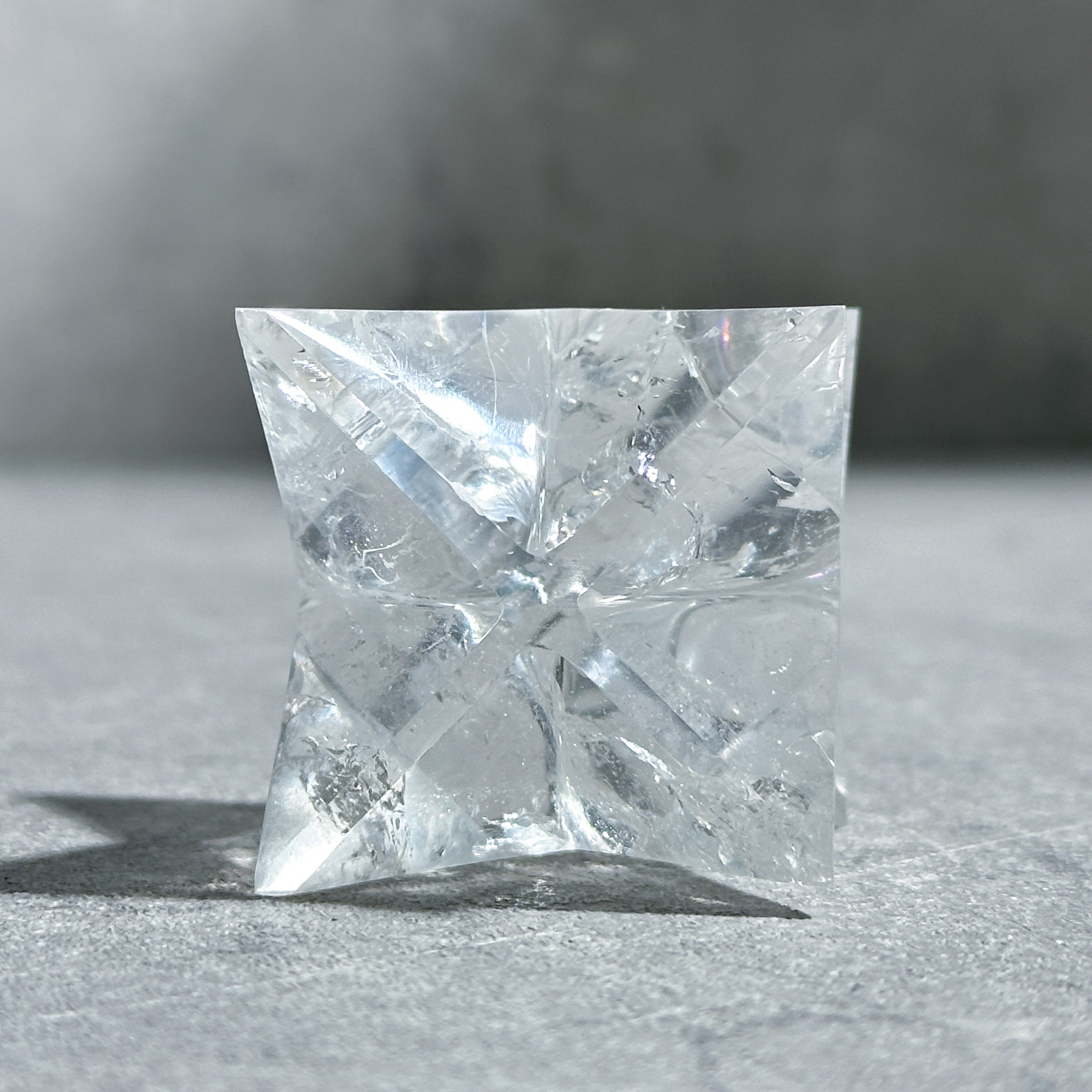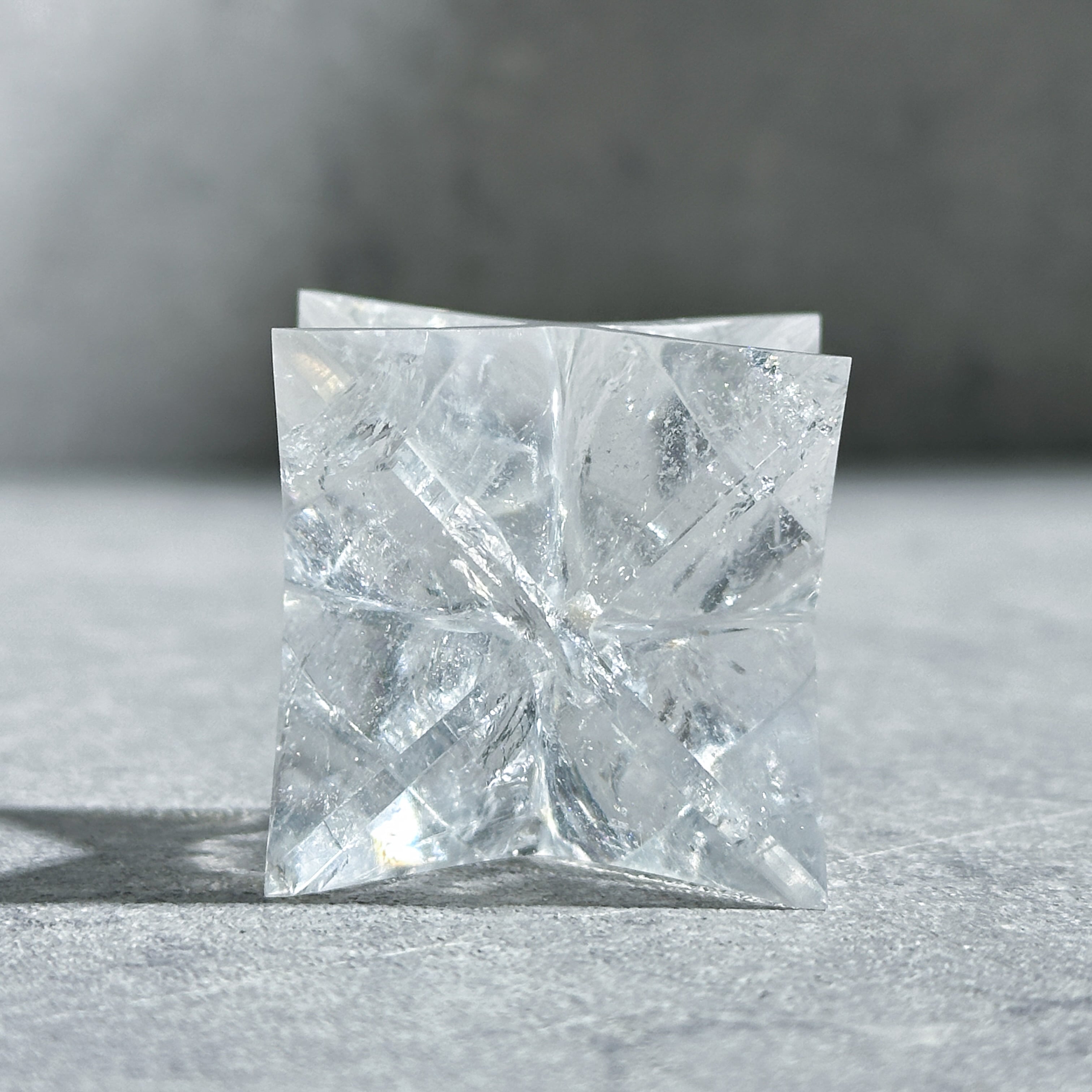 ブラジル・ミナスジェライス産のクリアクォーツを、マカバ型に研磨したものです。