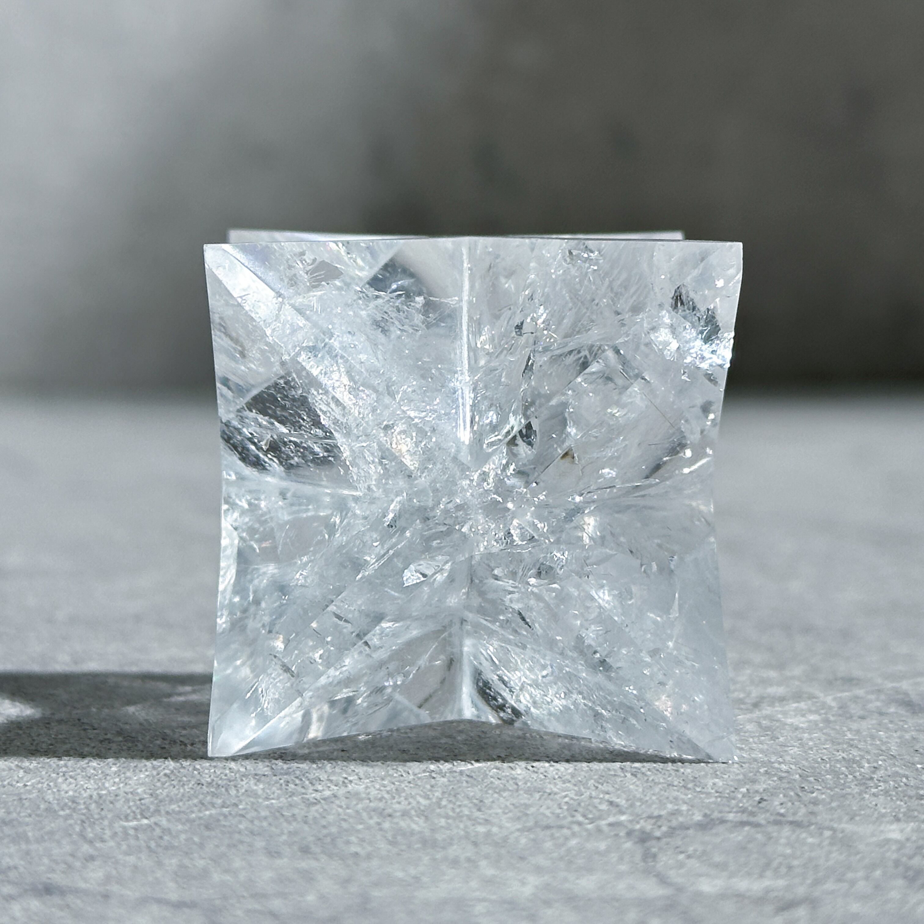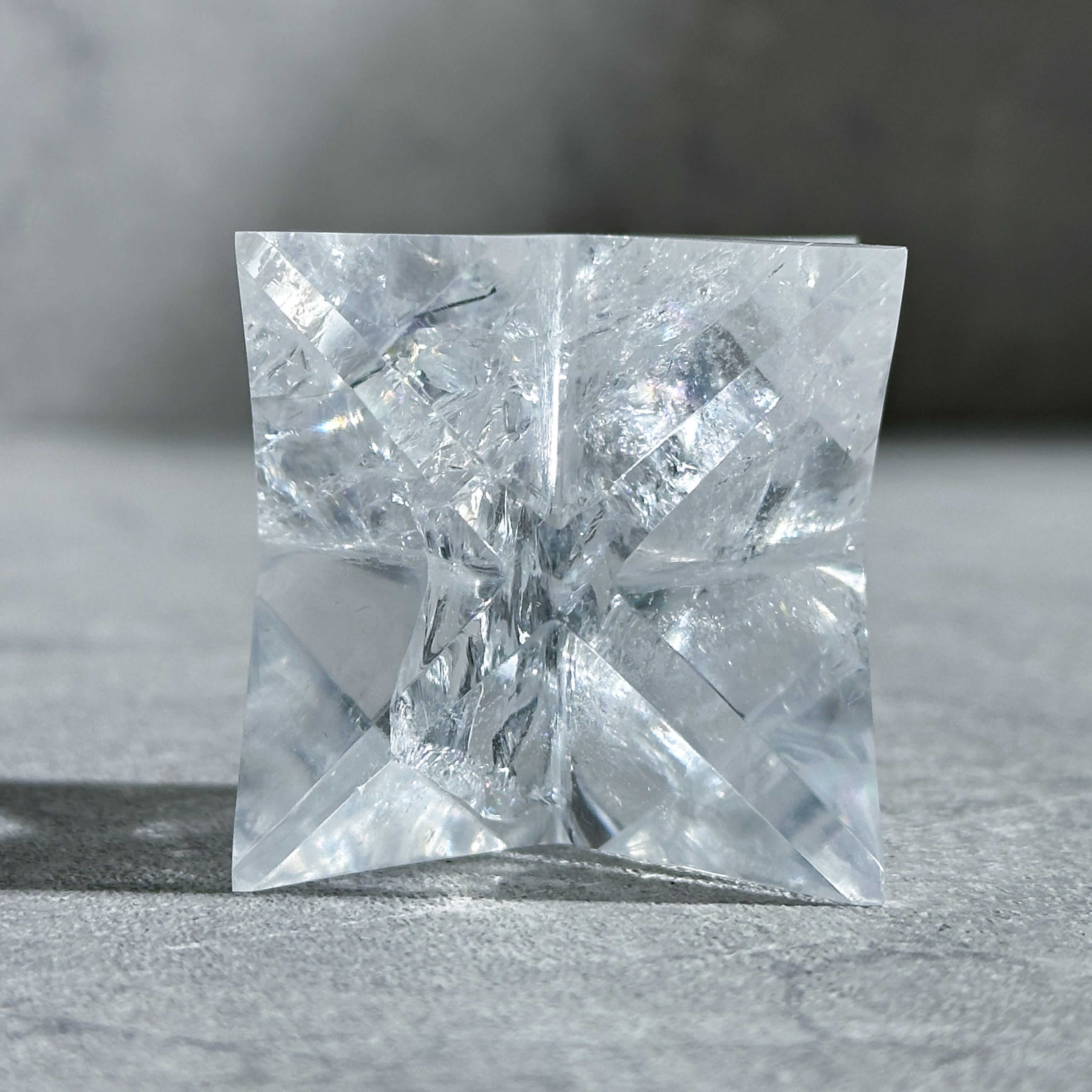 ブラジル・ミナスジェライス産のクリアクォーツを、マカバ型に研磨したものです。