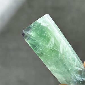 レインボーフローライトは複数のカラー(透明・パープル・ブルー・ピンク・グリーン)が共生し、水面のような曲線の模様を生み出しています。
