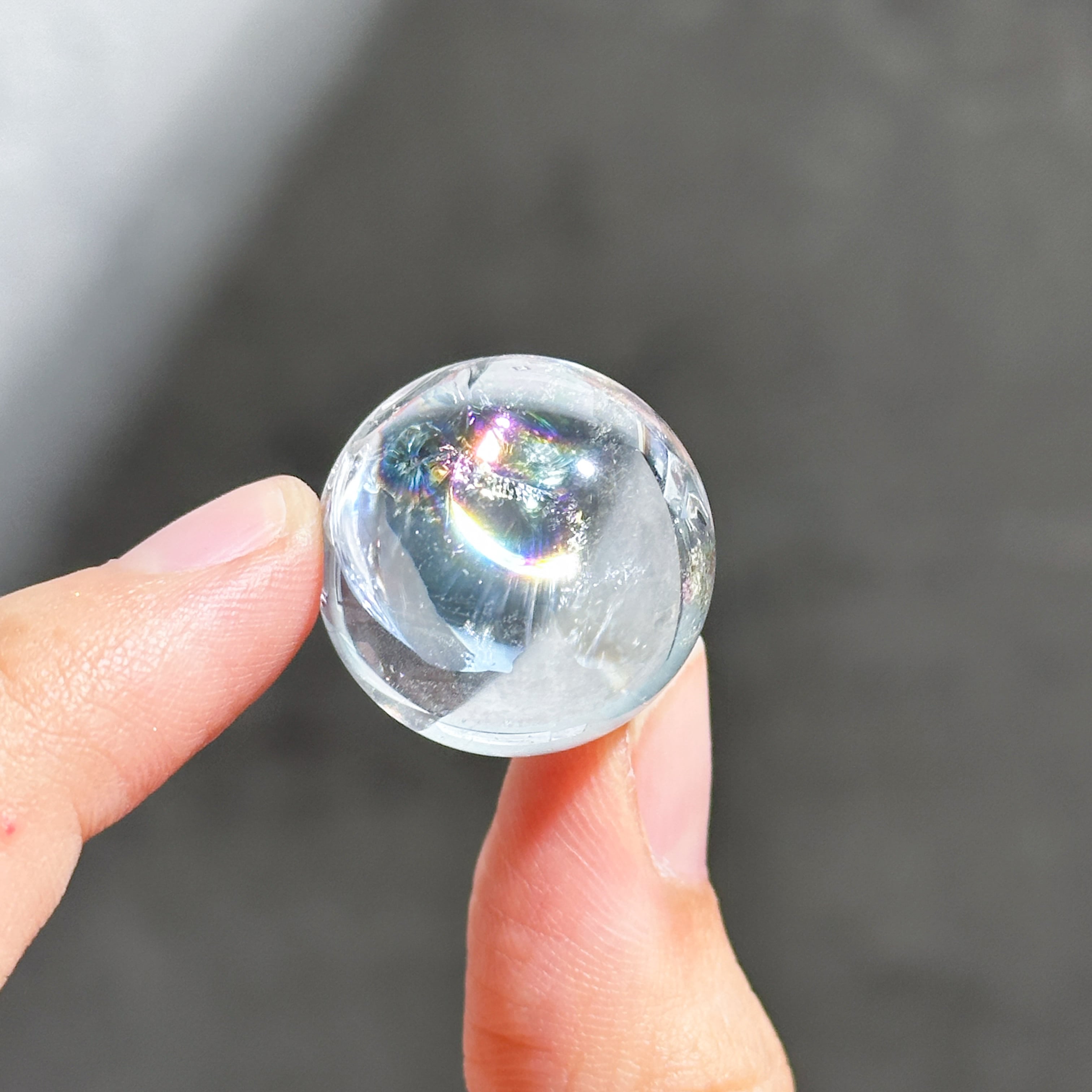七色の輝きが楽しめることに加えて、水晶そのものの魅力である清涼感も十分に感じられそうです。