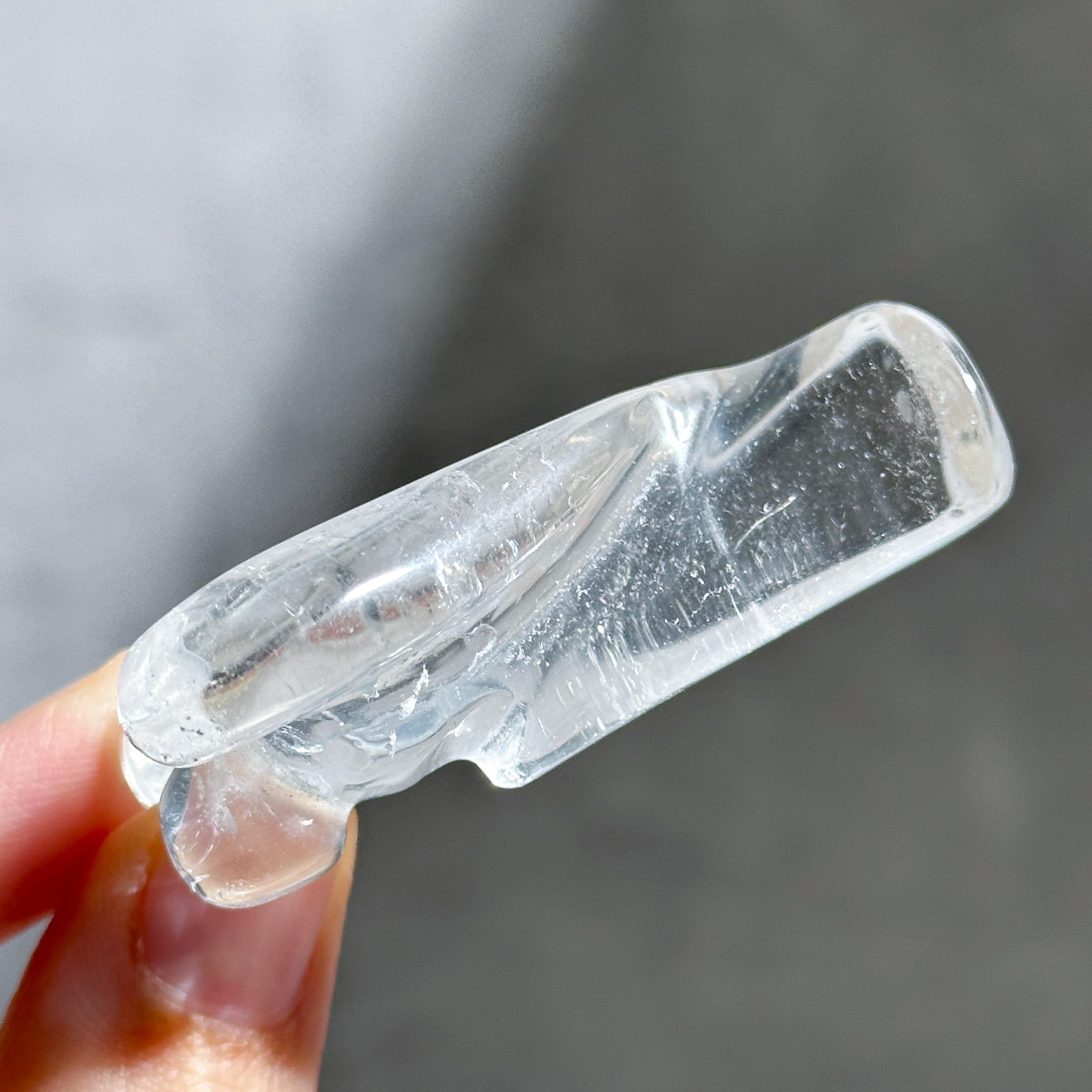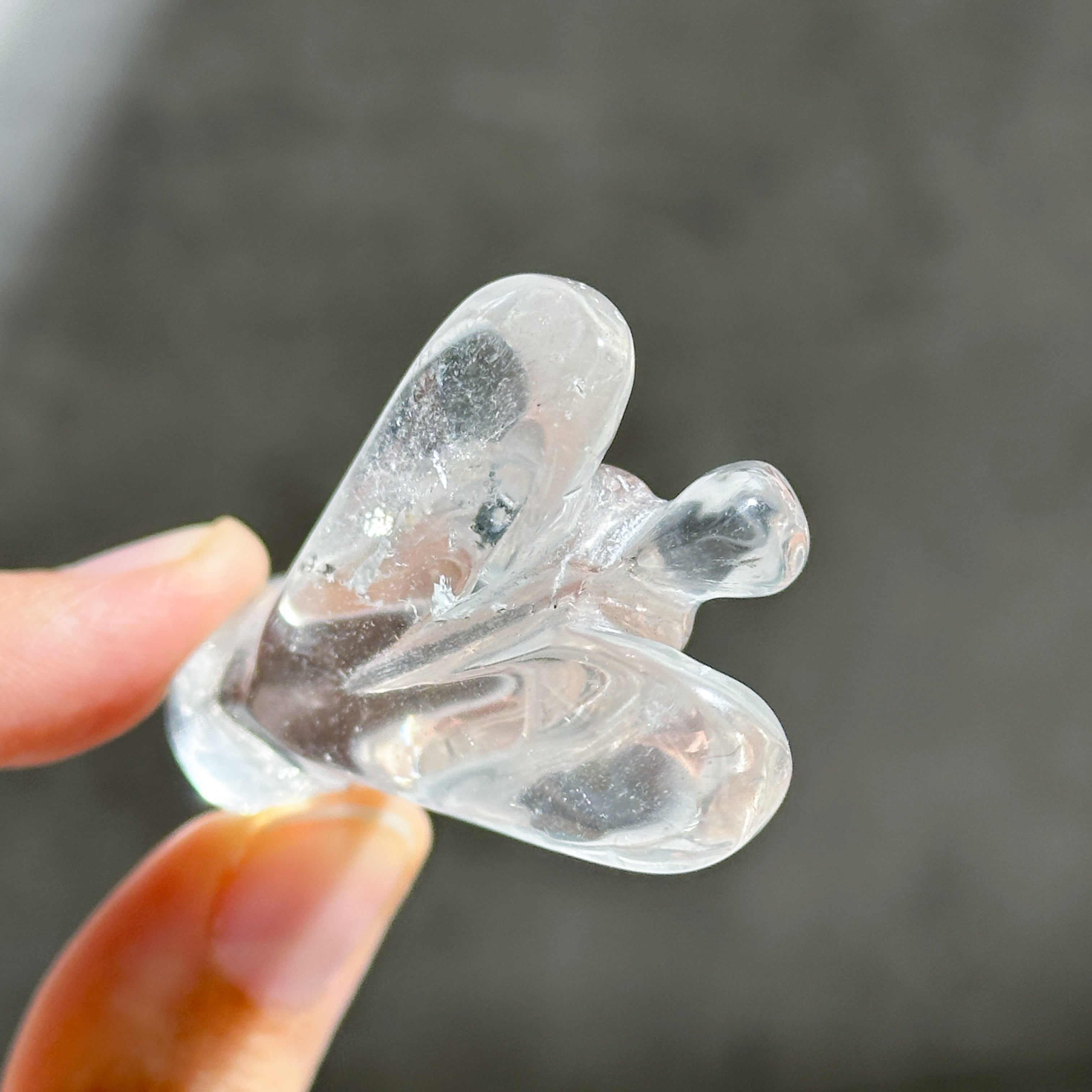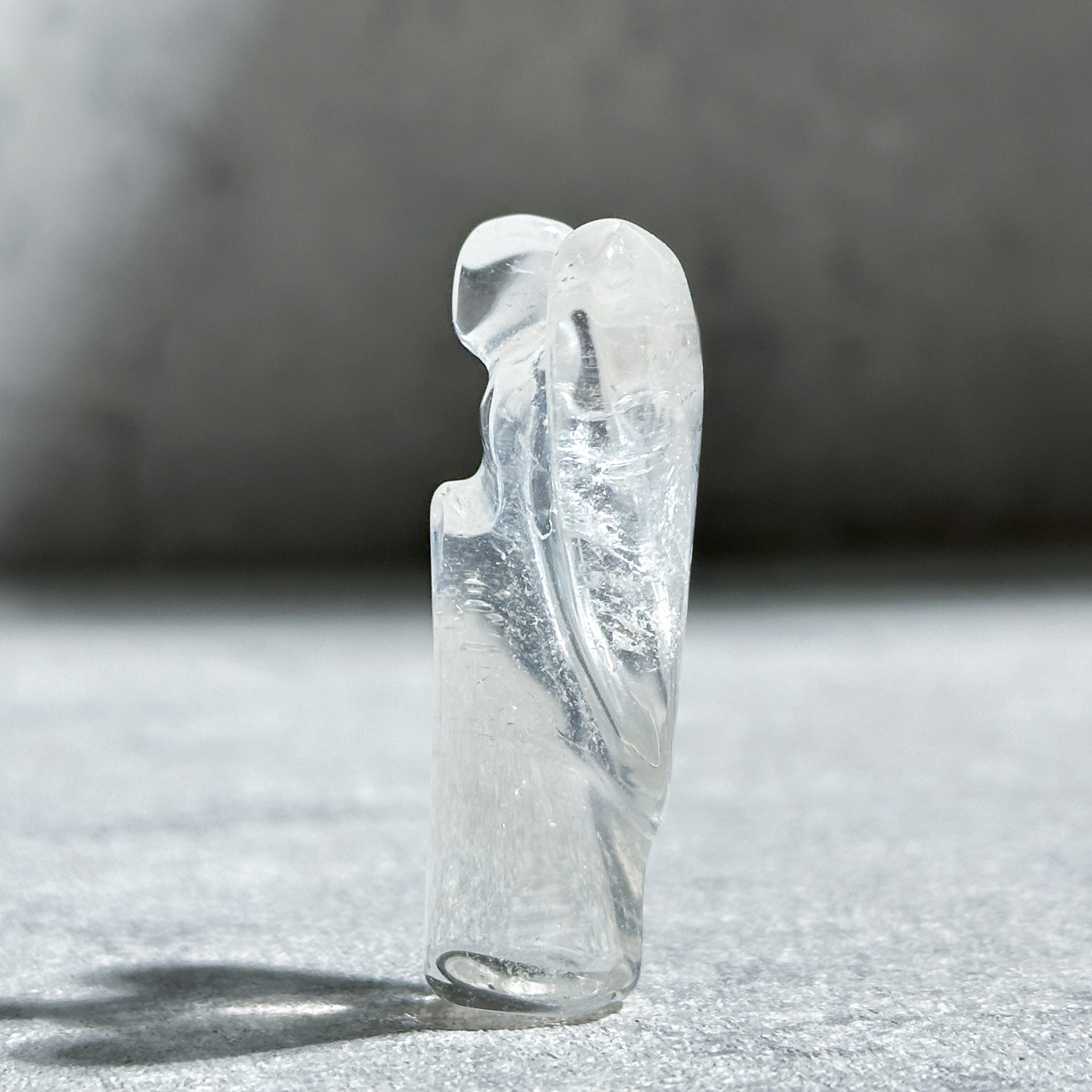クリアクォーツを、小さなエンジェルの形に彫刻いたしました。