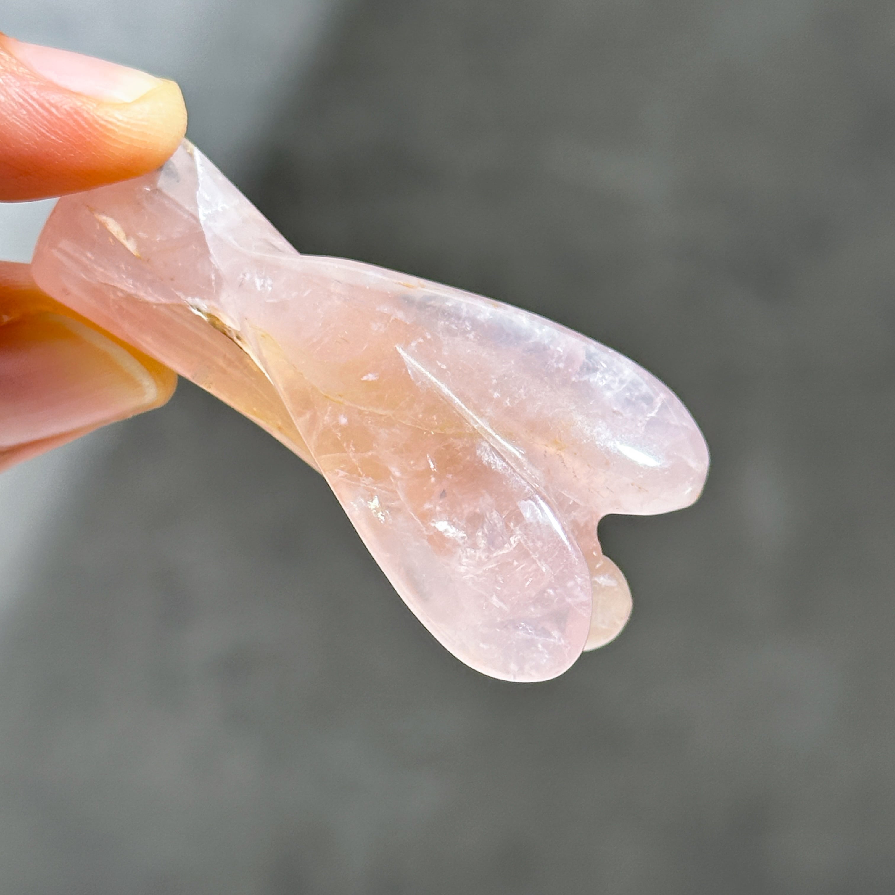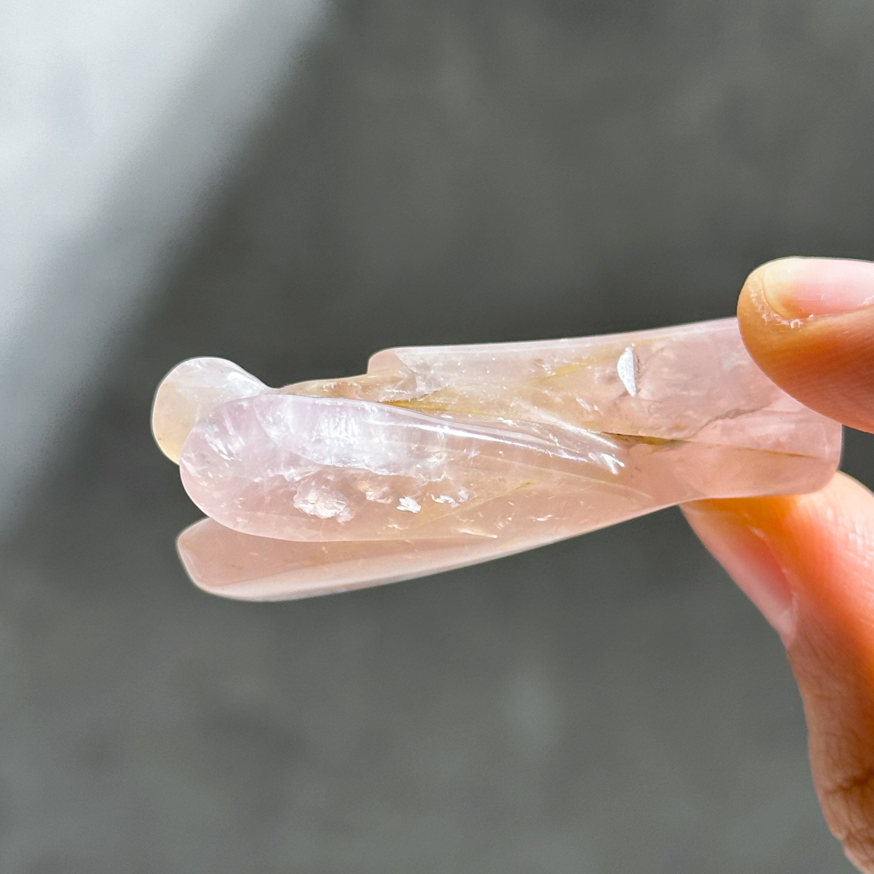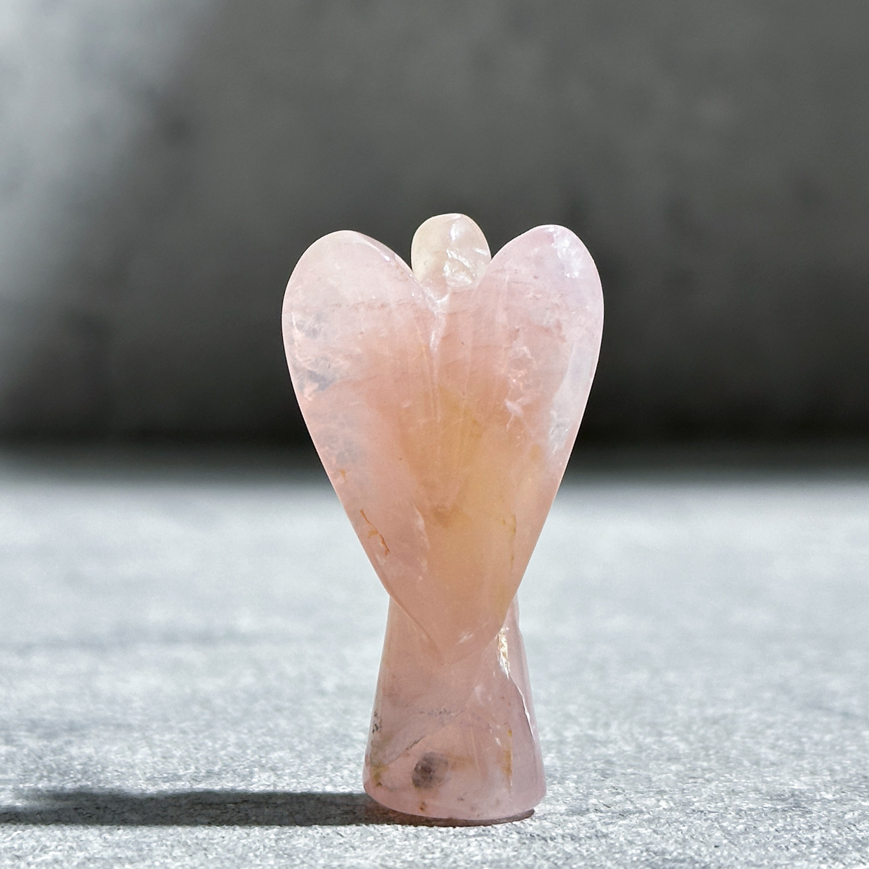 ゴールデンヒーラー×ローズクォーツを、小さなエンジェルの形に彫刻いたしました。