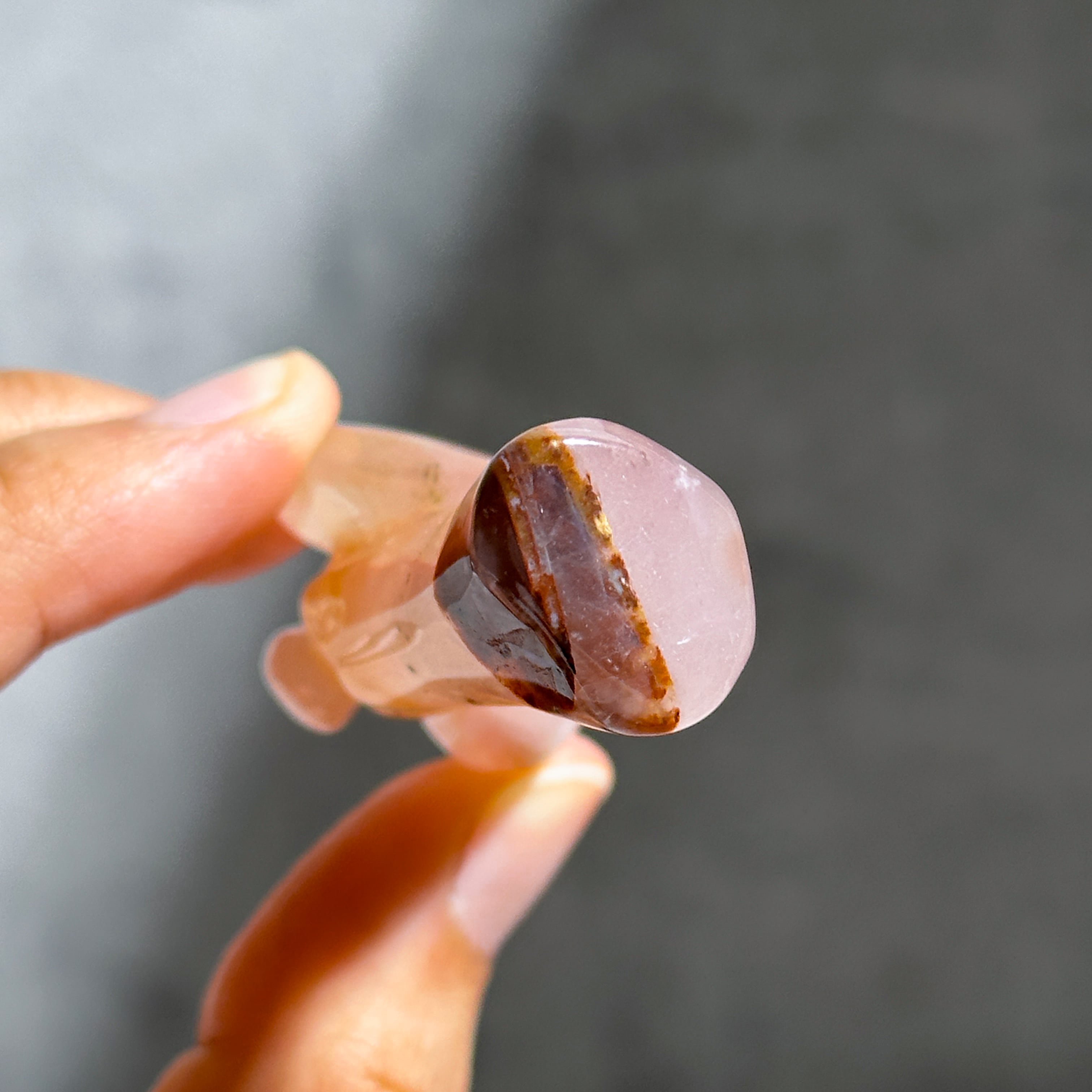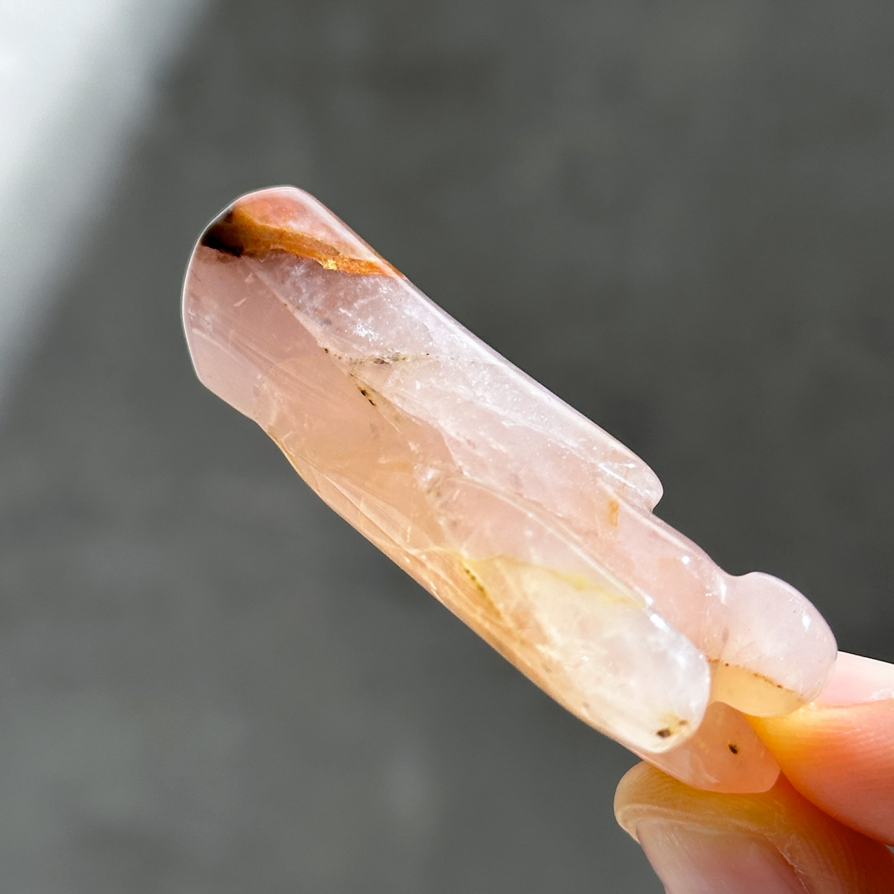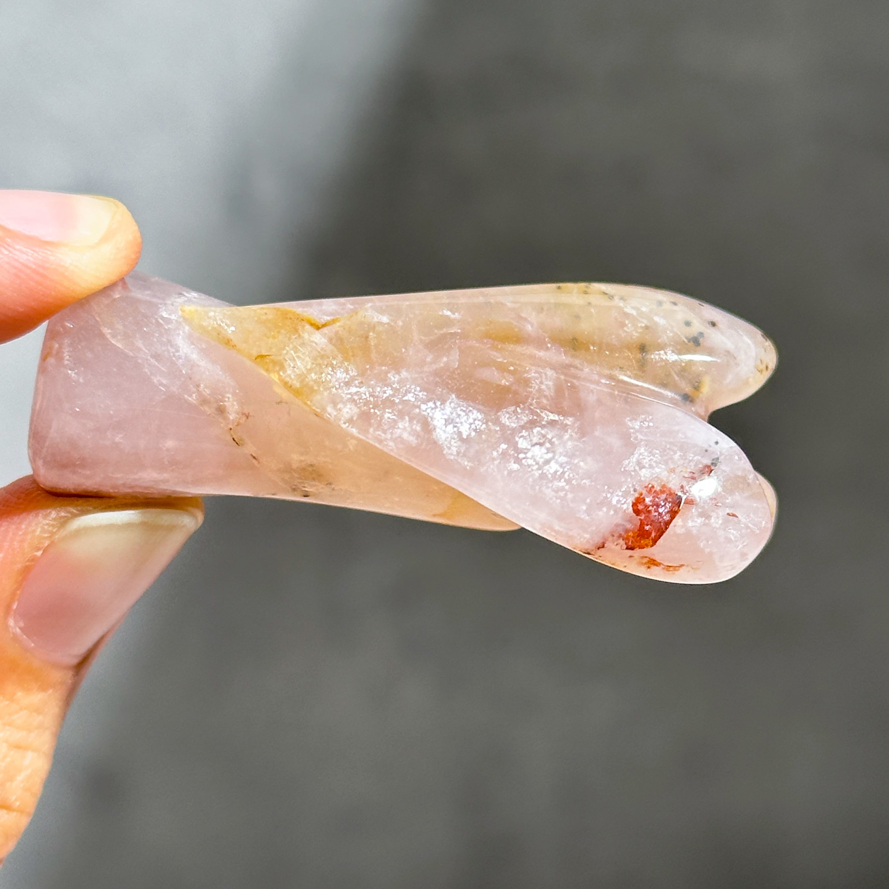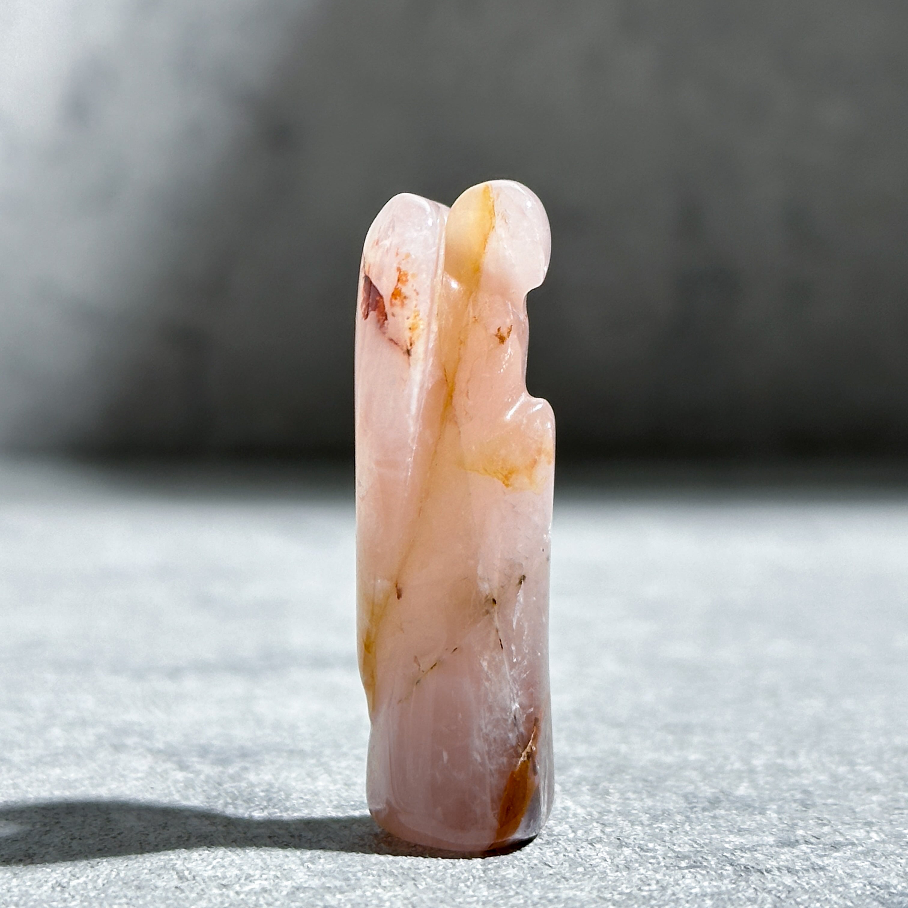 ゴールデンヒーラー×ローズクォーツを、小さなエンジェルの形に彫刻いたしました。