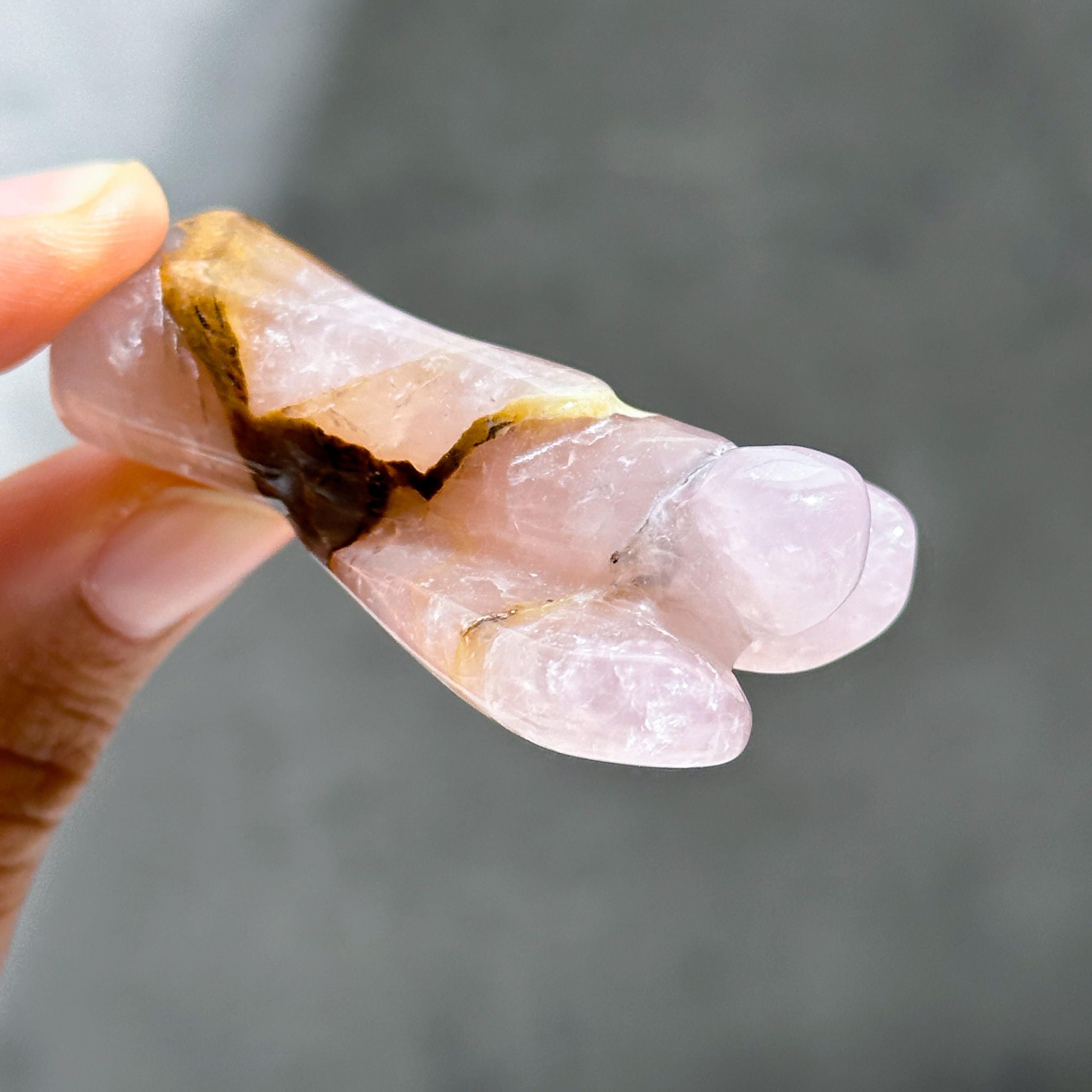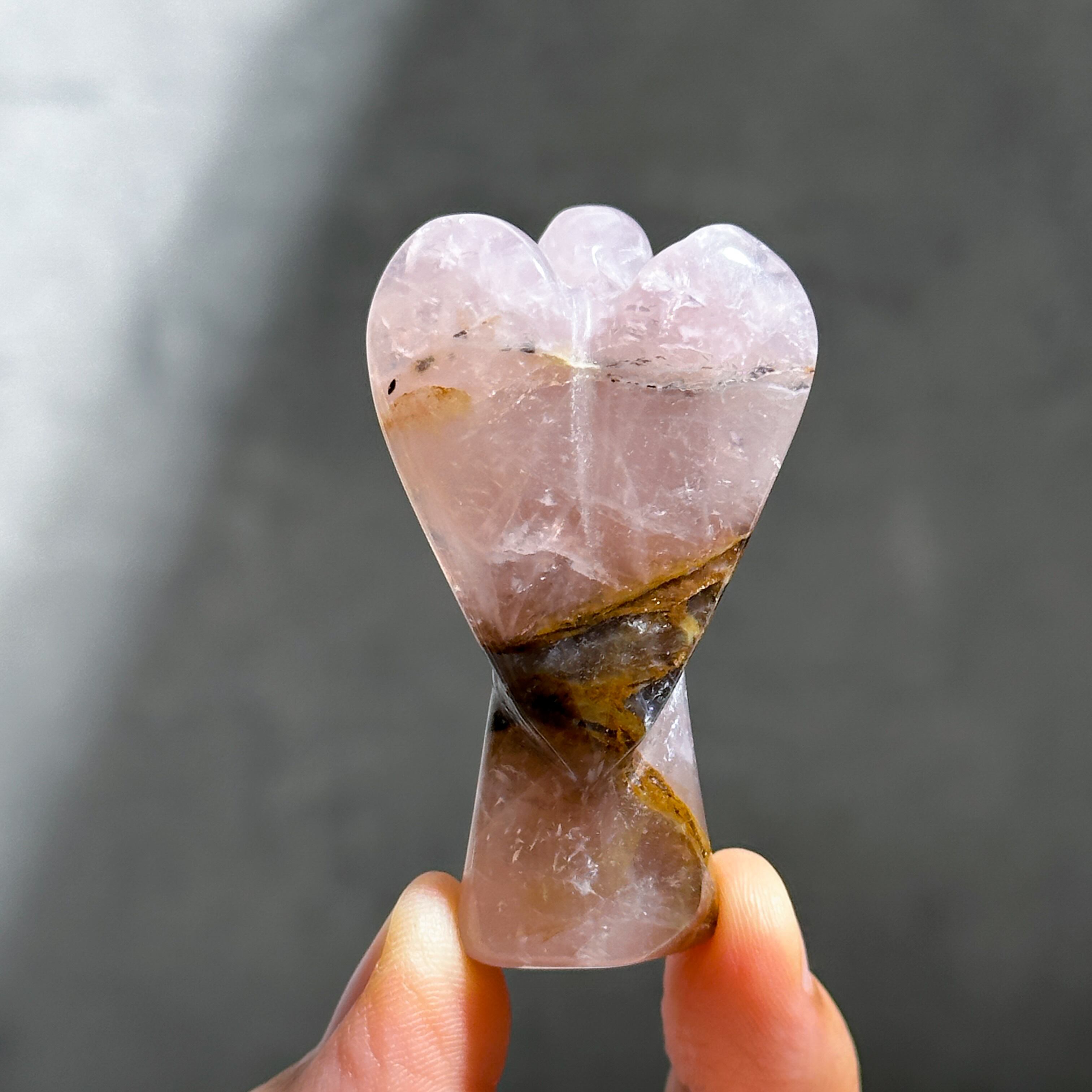 ゴールデンヒーラー×ローズクォーツを、小さなエンジェルの形に彫刻いたしました。