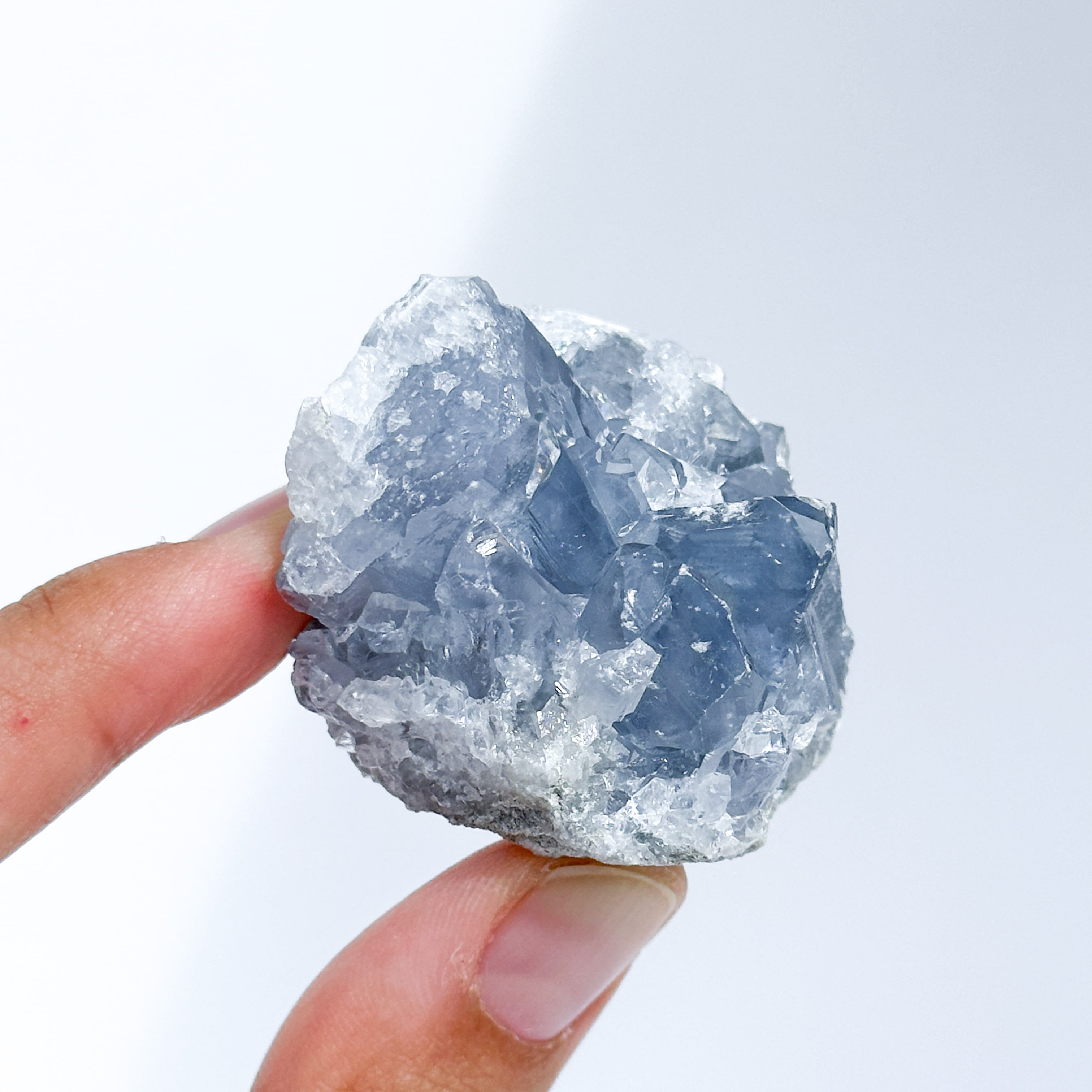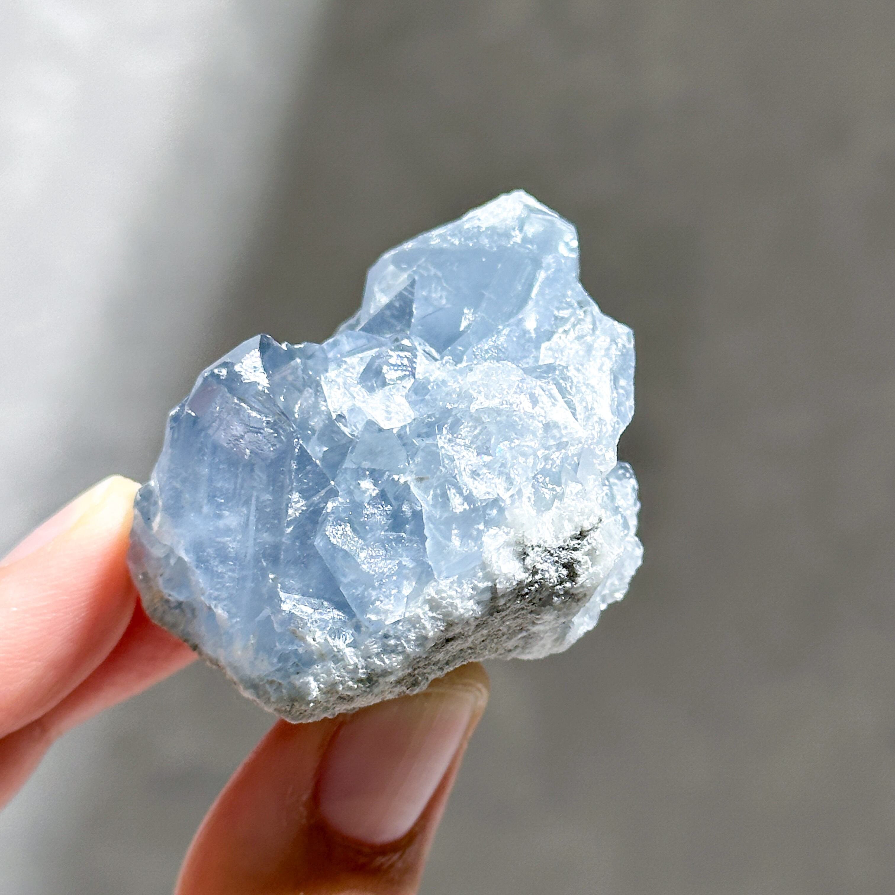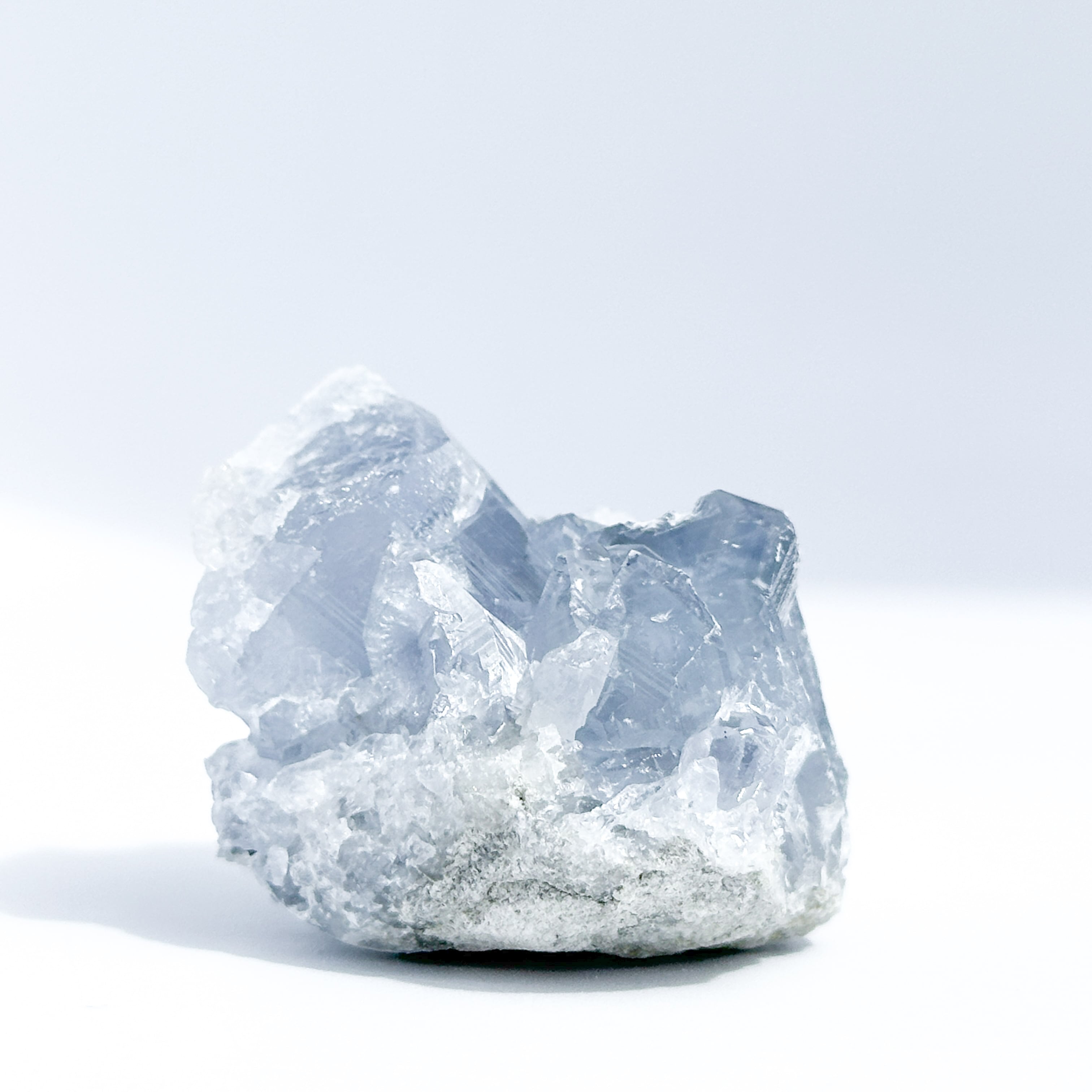 幾多あるブルーの天然石の中でも、晴れた空の穏やかさに最も近い印象があるのがセレスタイト。柔らかい色味、優しい輝きから、エンジェルを連想する人も多いようです。