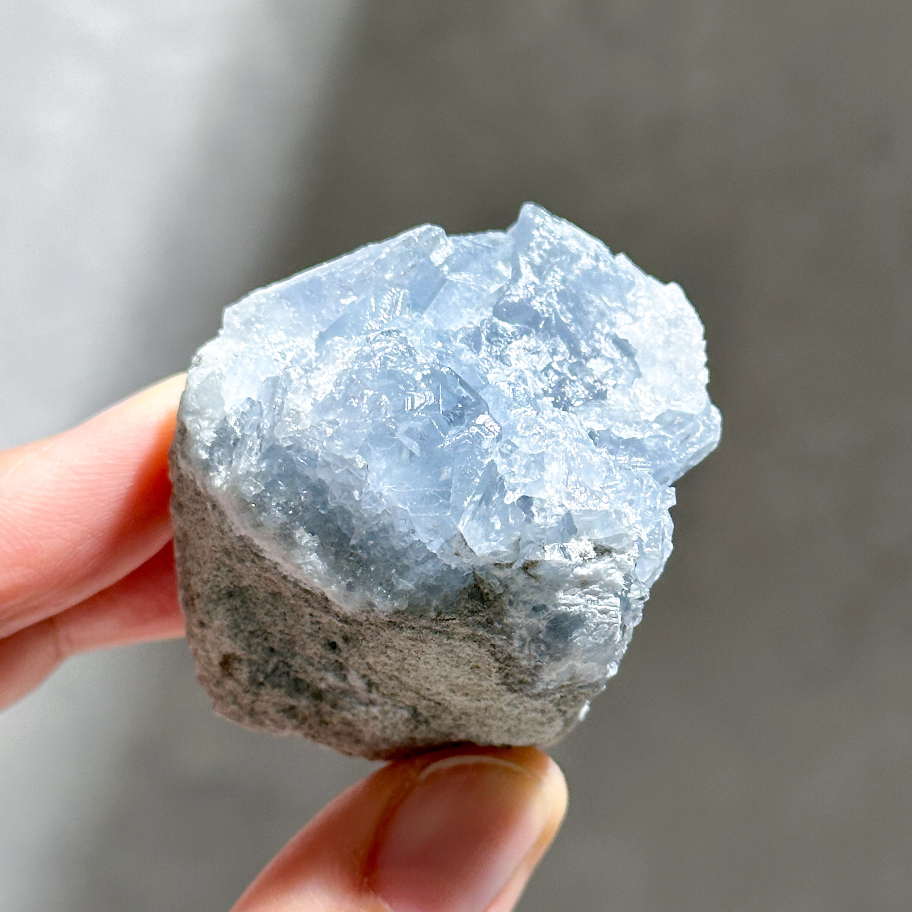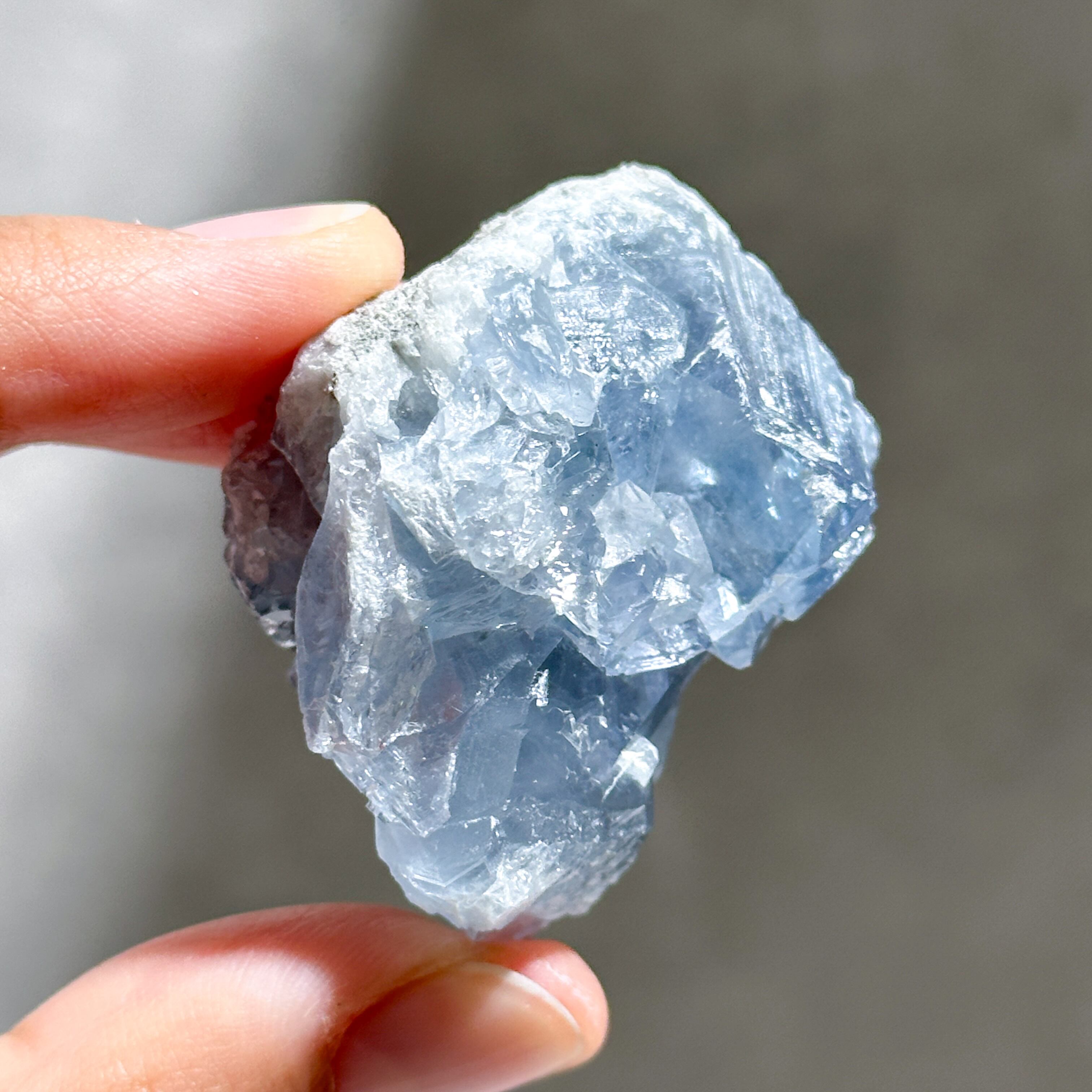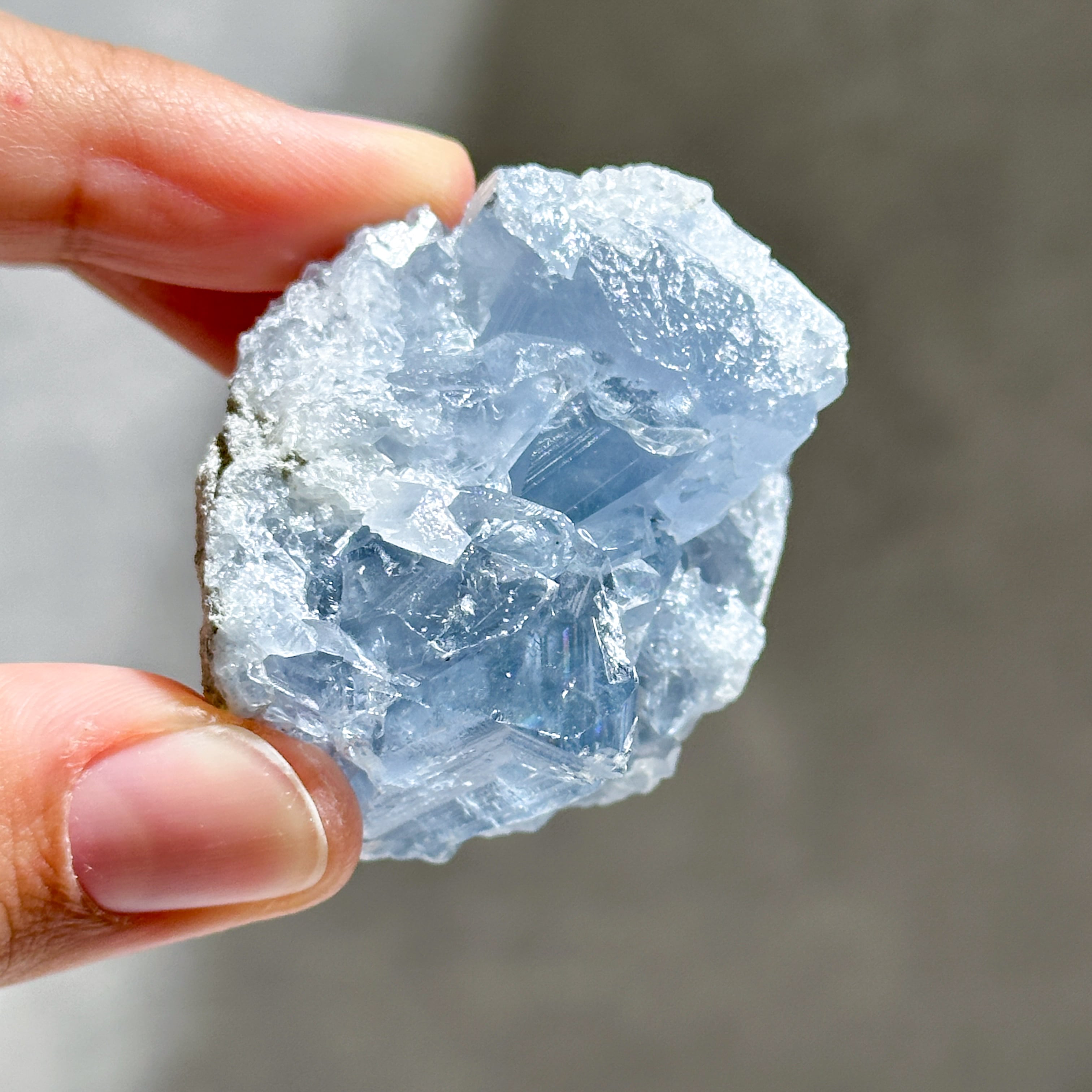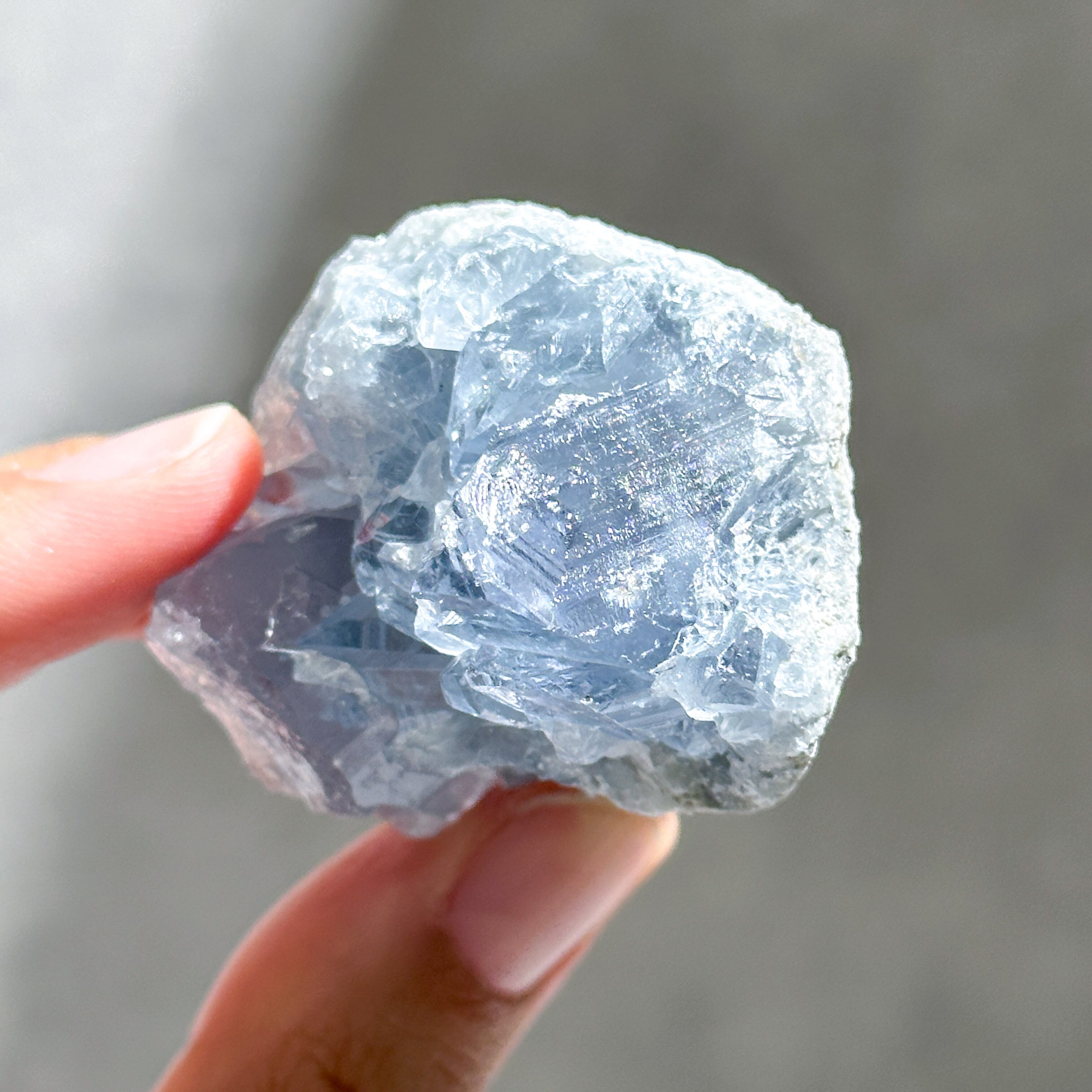 幾多あるブルーの天然石の中でも、晴れた空の穏やかさに最も近い印象があるのがセレスタイト。柔らかい色味、優しい輝きから、エンジェルを連想する人も多いようです。