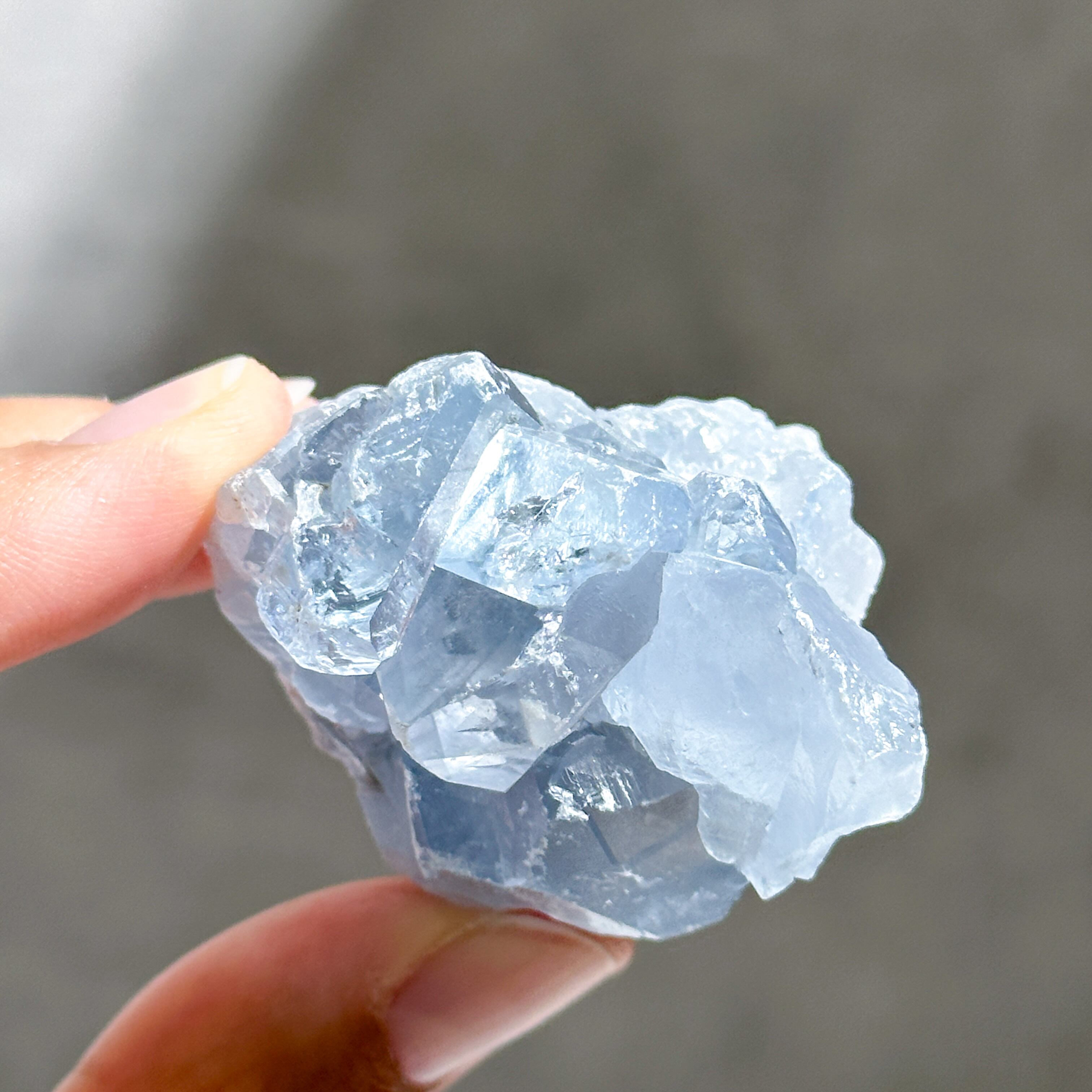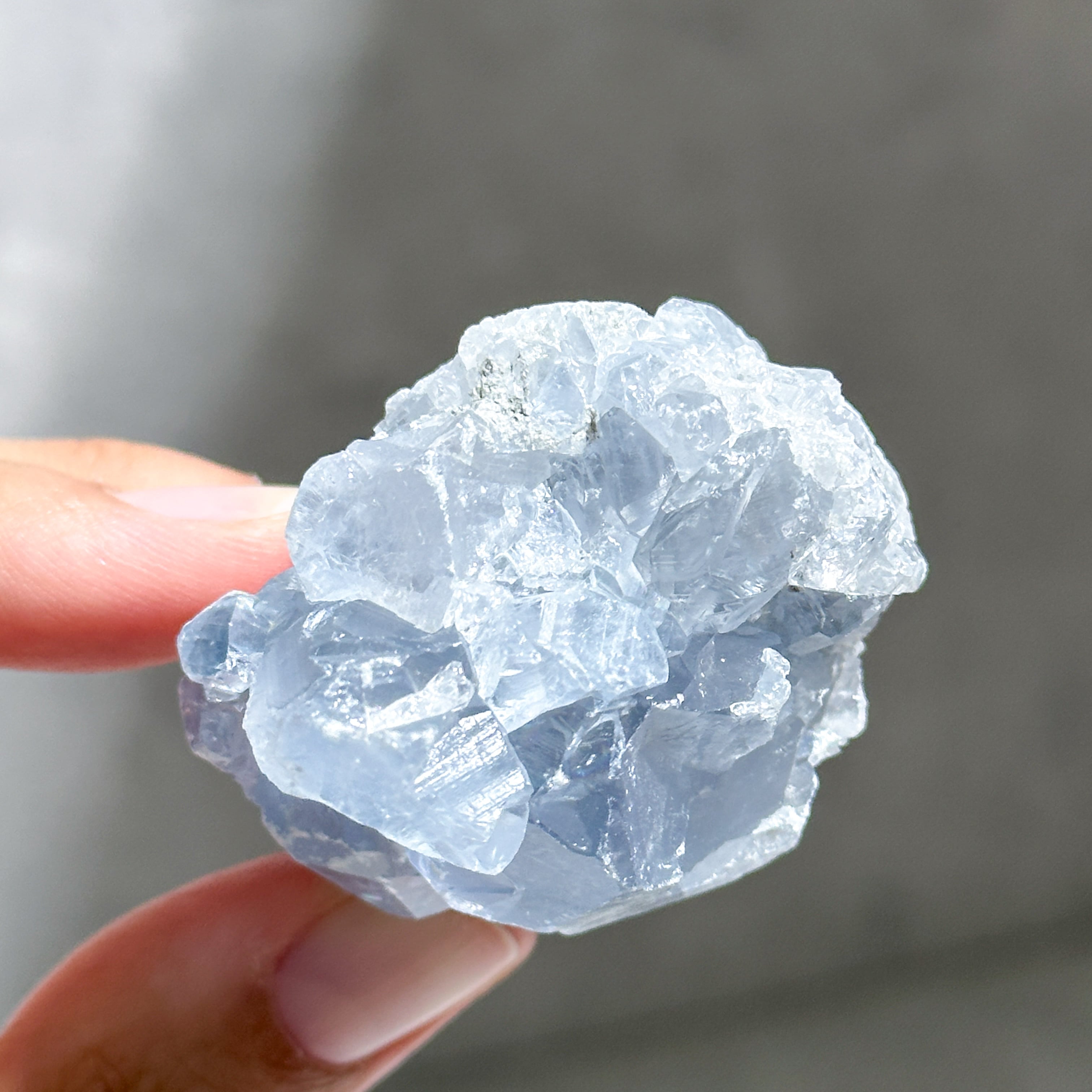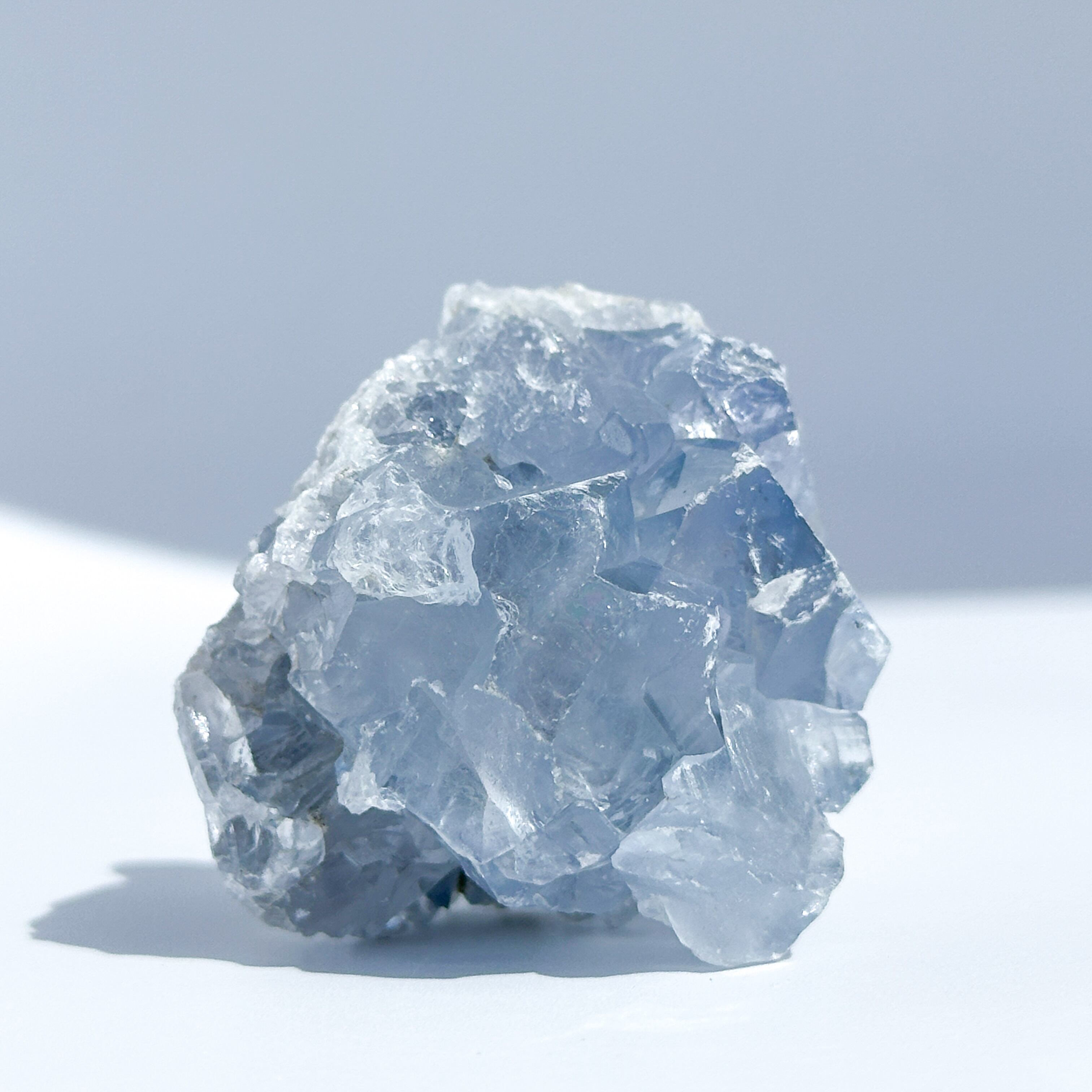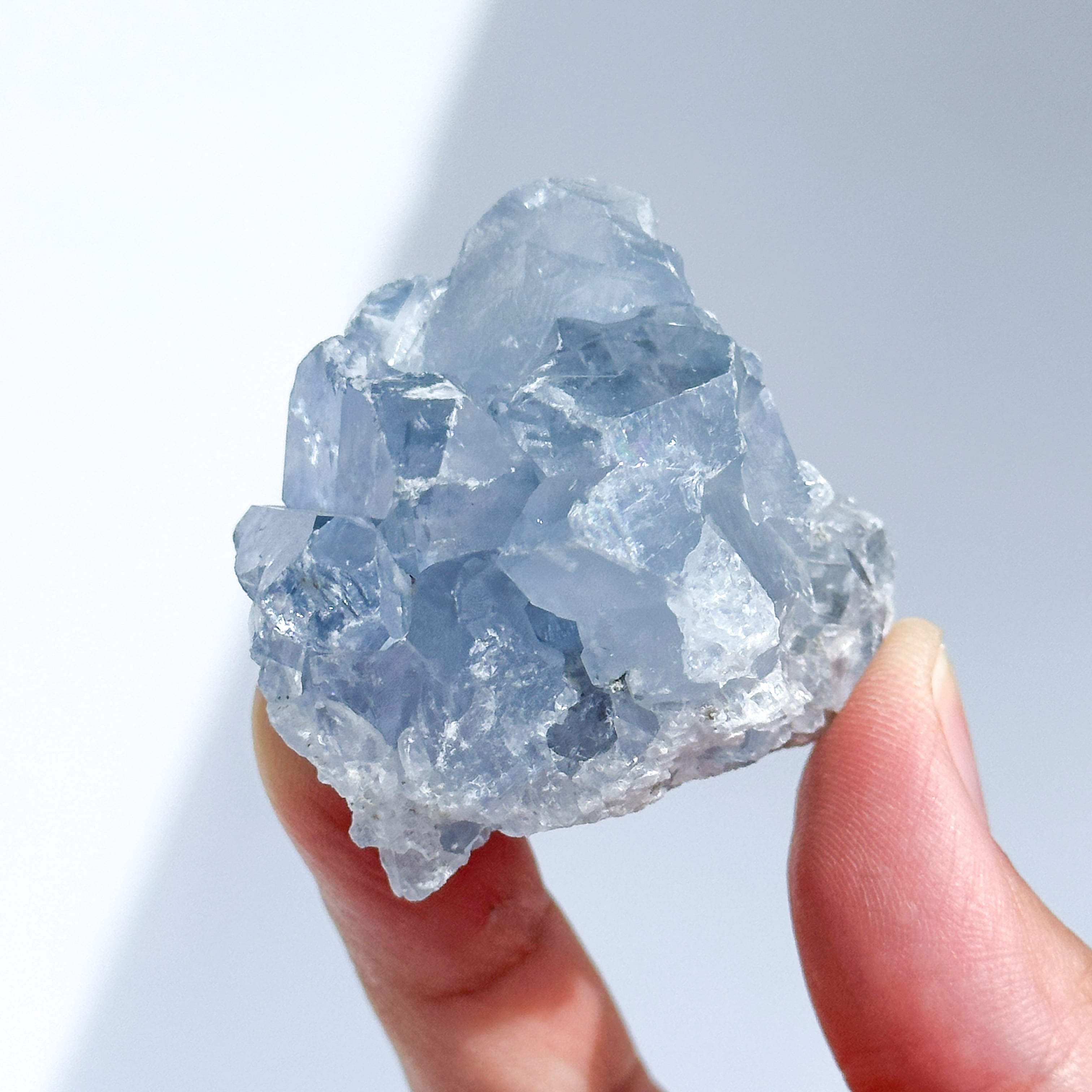 幾多あるブルーの天然石の中でも、晴れた空の穏やかさに最も近い印象があるのがセレスタイト。柔らかい色味、優しい輝きから、エンジェルを連想する人も多いようです。