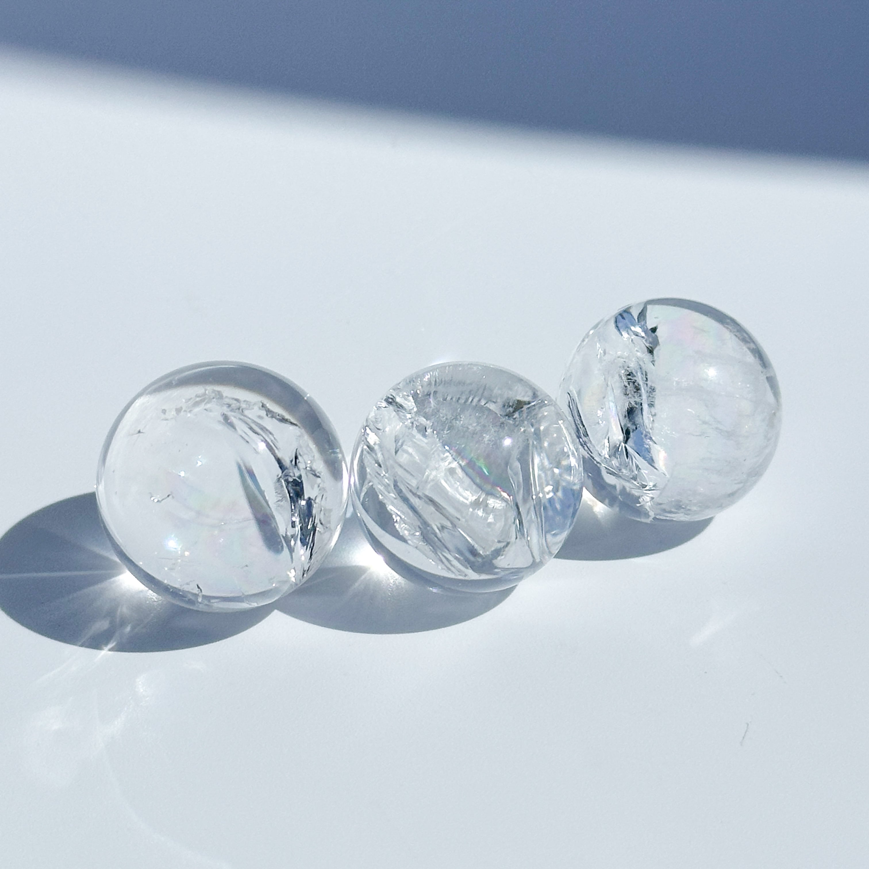 クリア(クラック)クォーツ スフィア 3個set 05◇ Clear Quartz ◇ 天然石・鉱物・パワーストーン