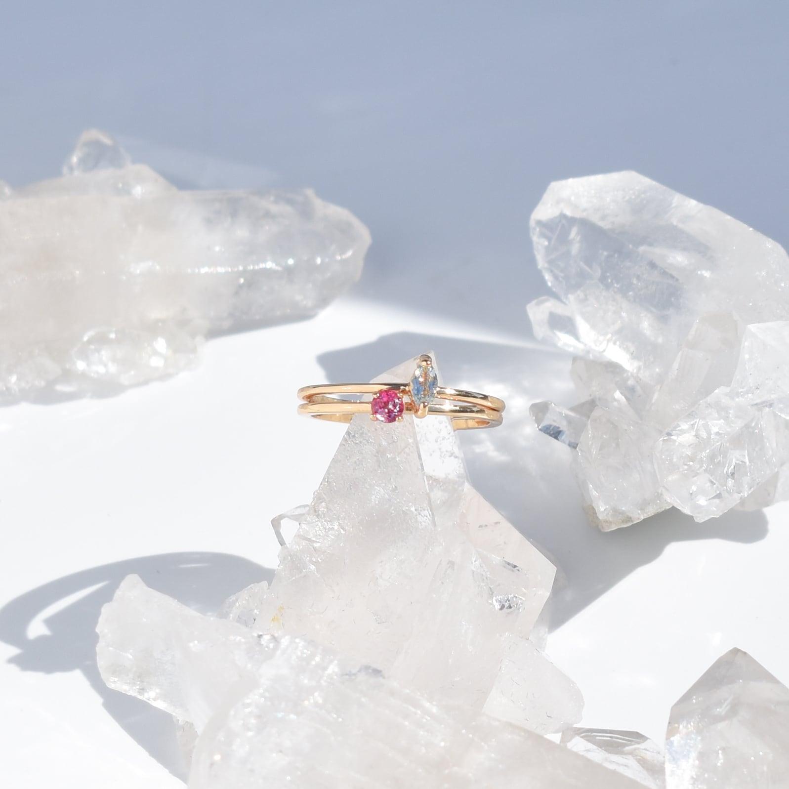 透明感のある輝きが、指先に静かな存在感を添えるリング。